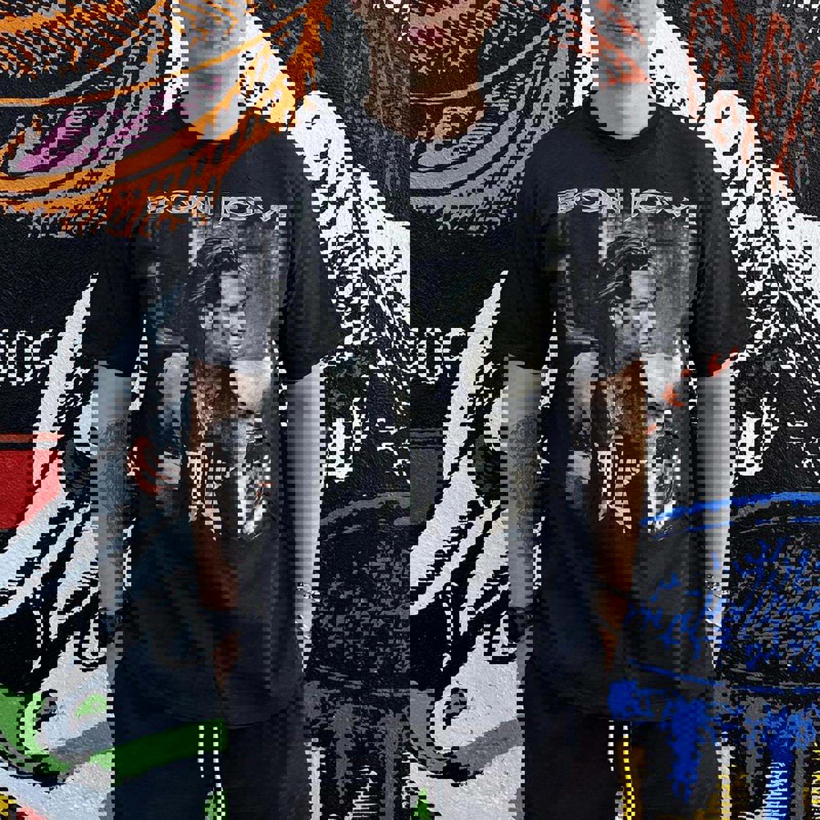 feel free to send us any questions, free shipping on orders $100+, Mon - fri 12pm shipping, International shipping available, Thankyou for shopping with Squid Ink Vintage #bonjovi #artisttee #bandtee #vintage