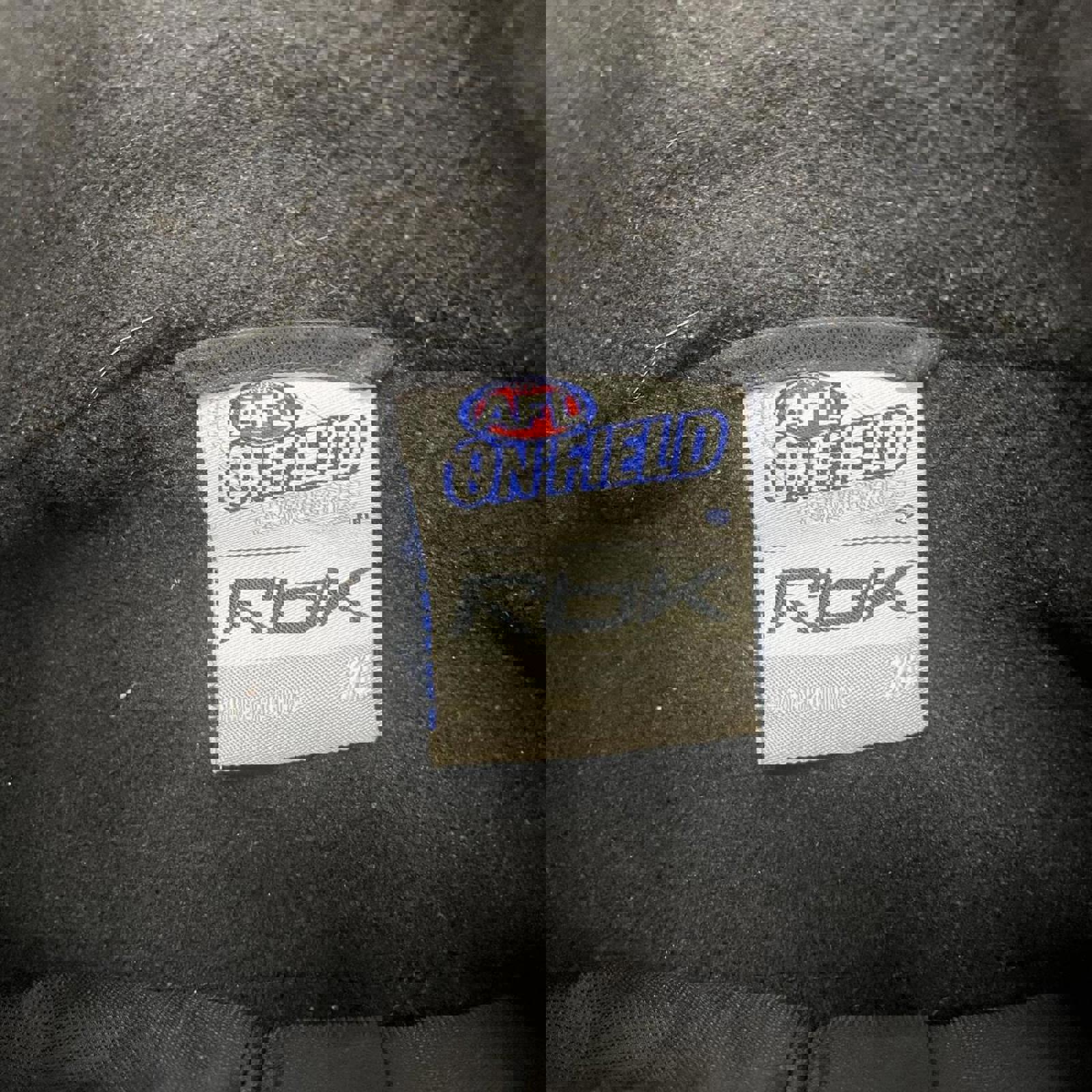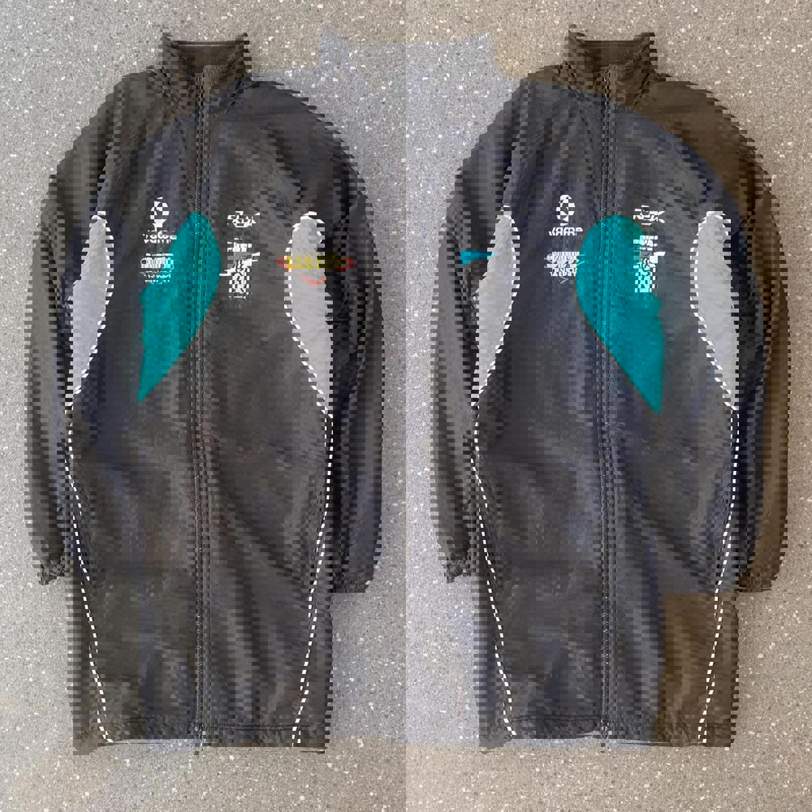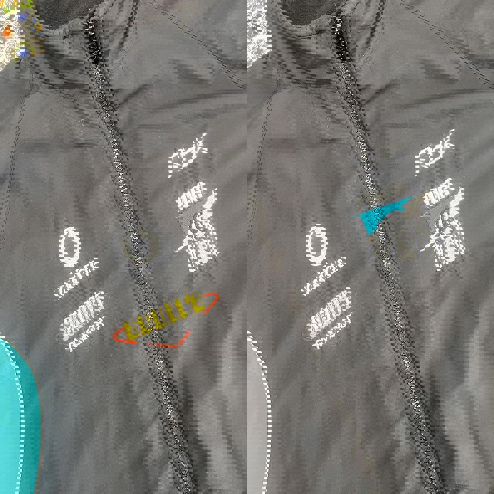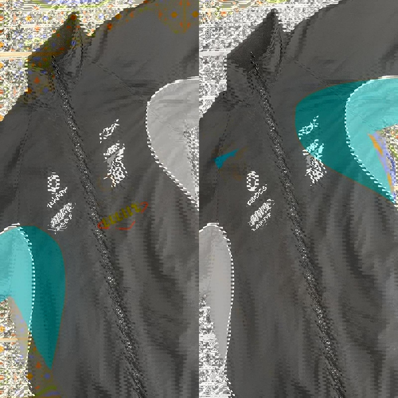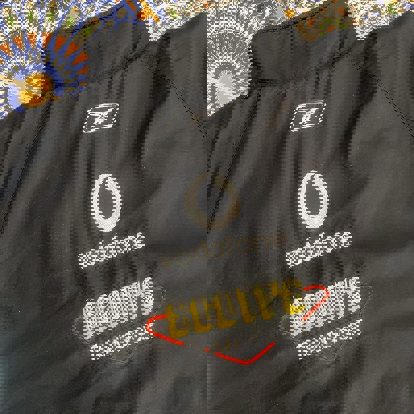 Black and teal power Reebok jacket with all embroidered Vodafone, Scott’s transport, Reebok and club logo