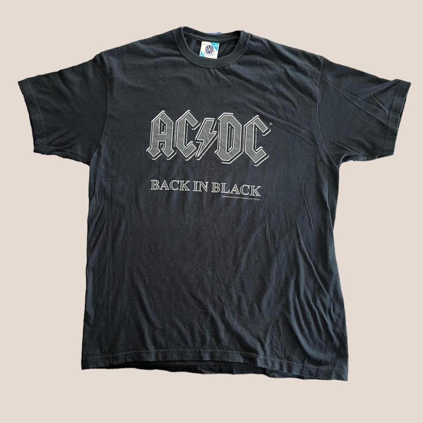 Contemporary black tee with grey AC/DC back in black spell-out logo dated 2004 starworld tag
