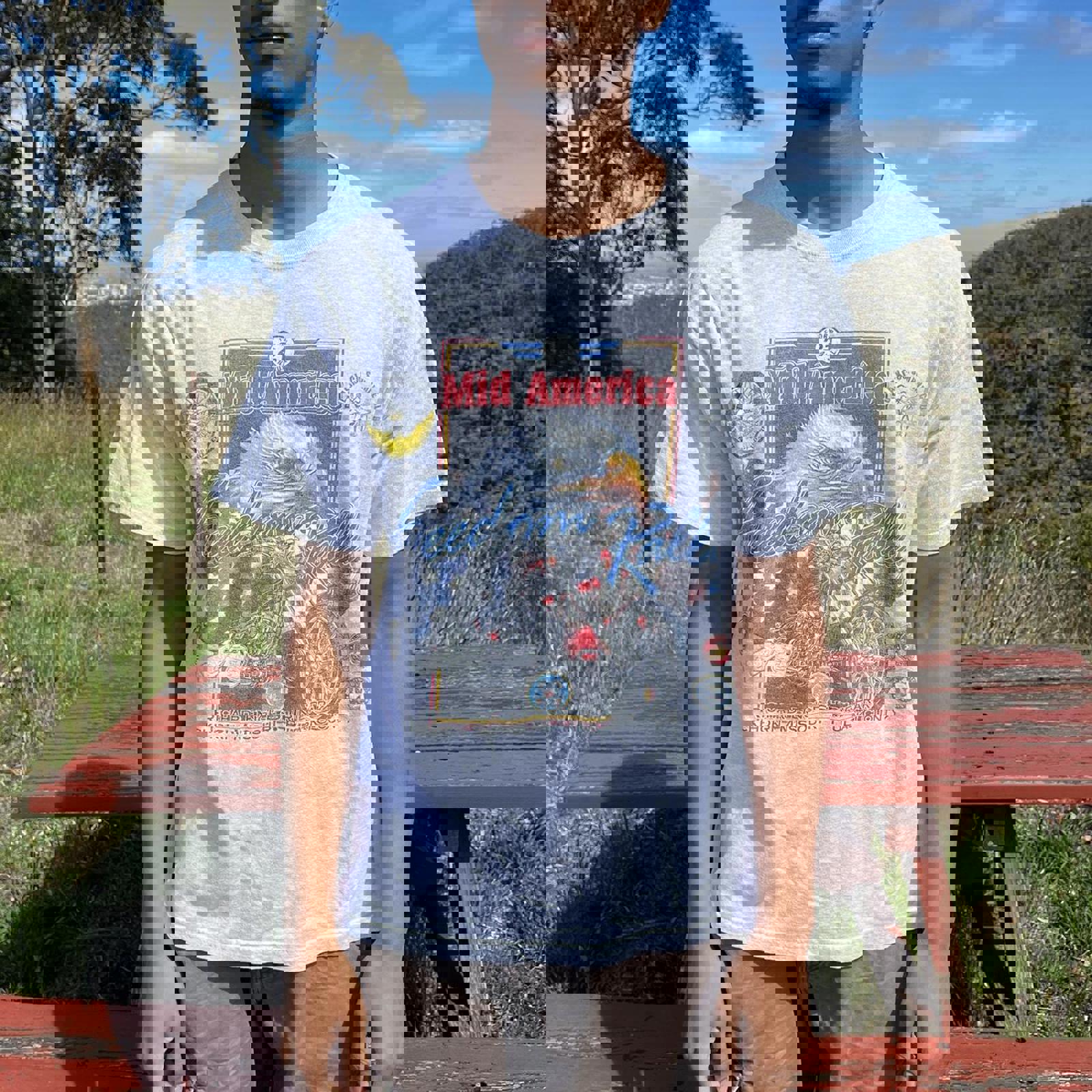 grey Gildan ultra cotton tee with sick eagle and motorbike graphic on front and sponsor logos on back
