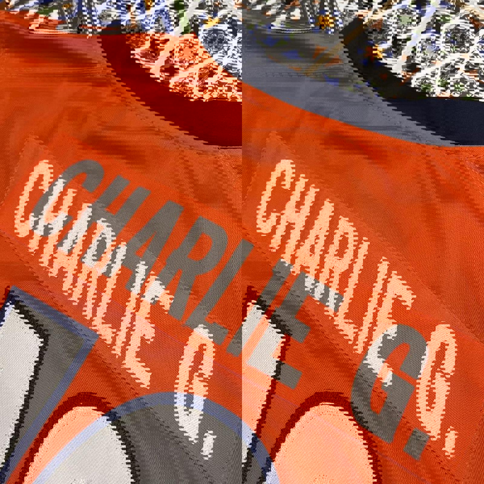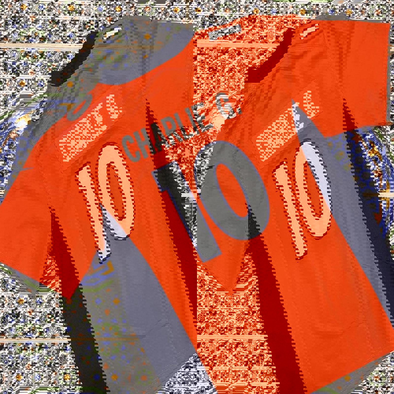 Orange and navy Denver broncos Nike Emmanuel Sanders number 10 jersey however has the name Charlie g instead