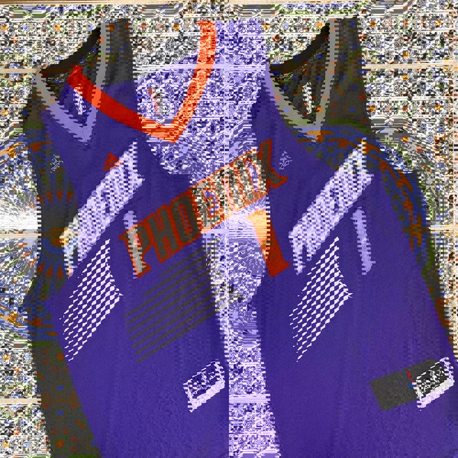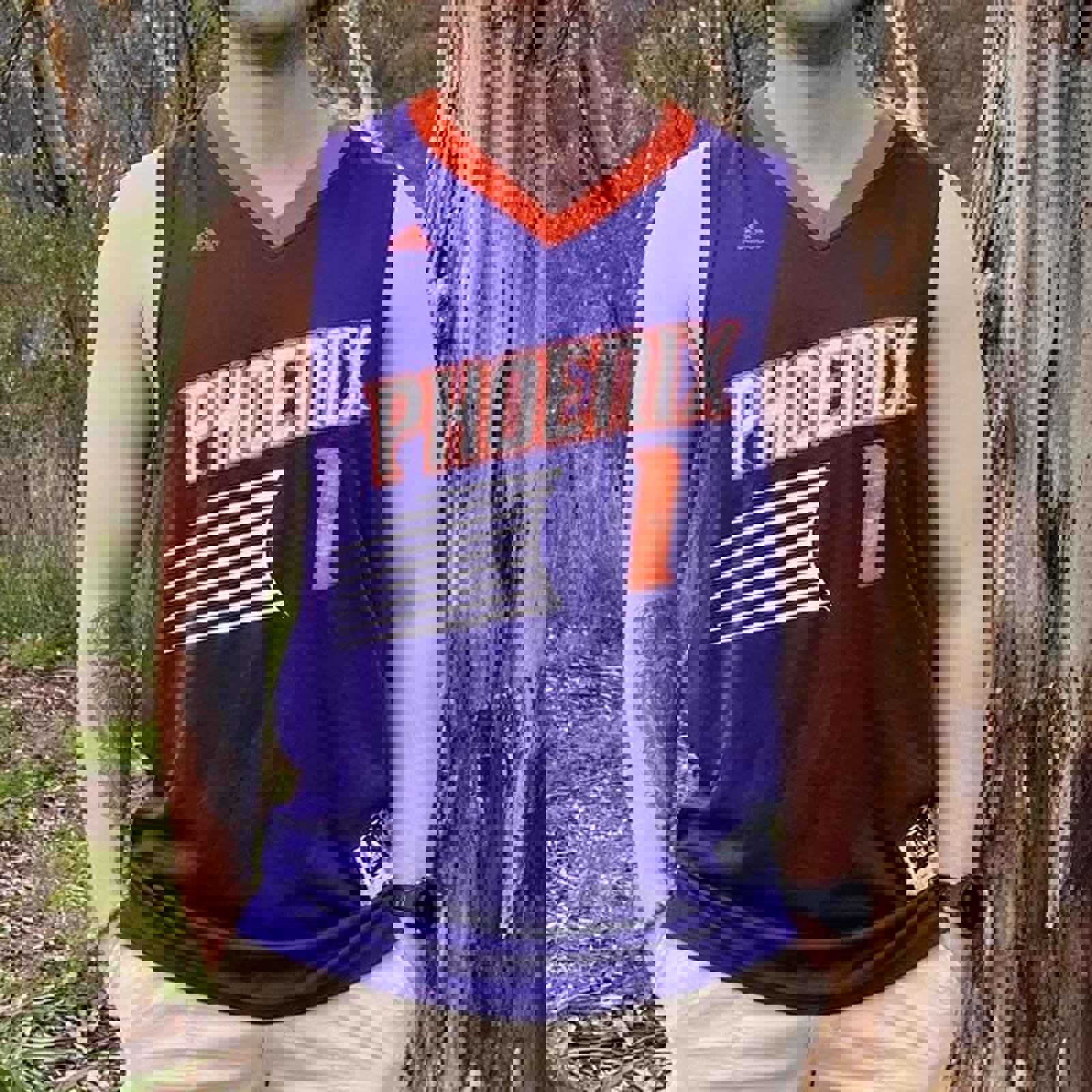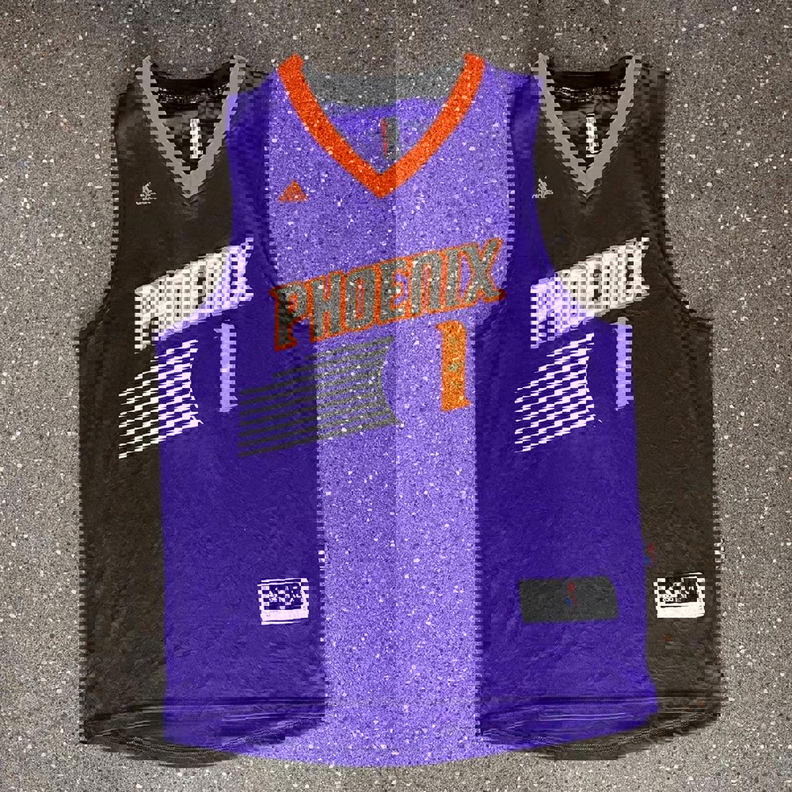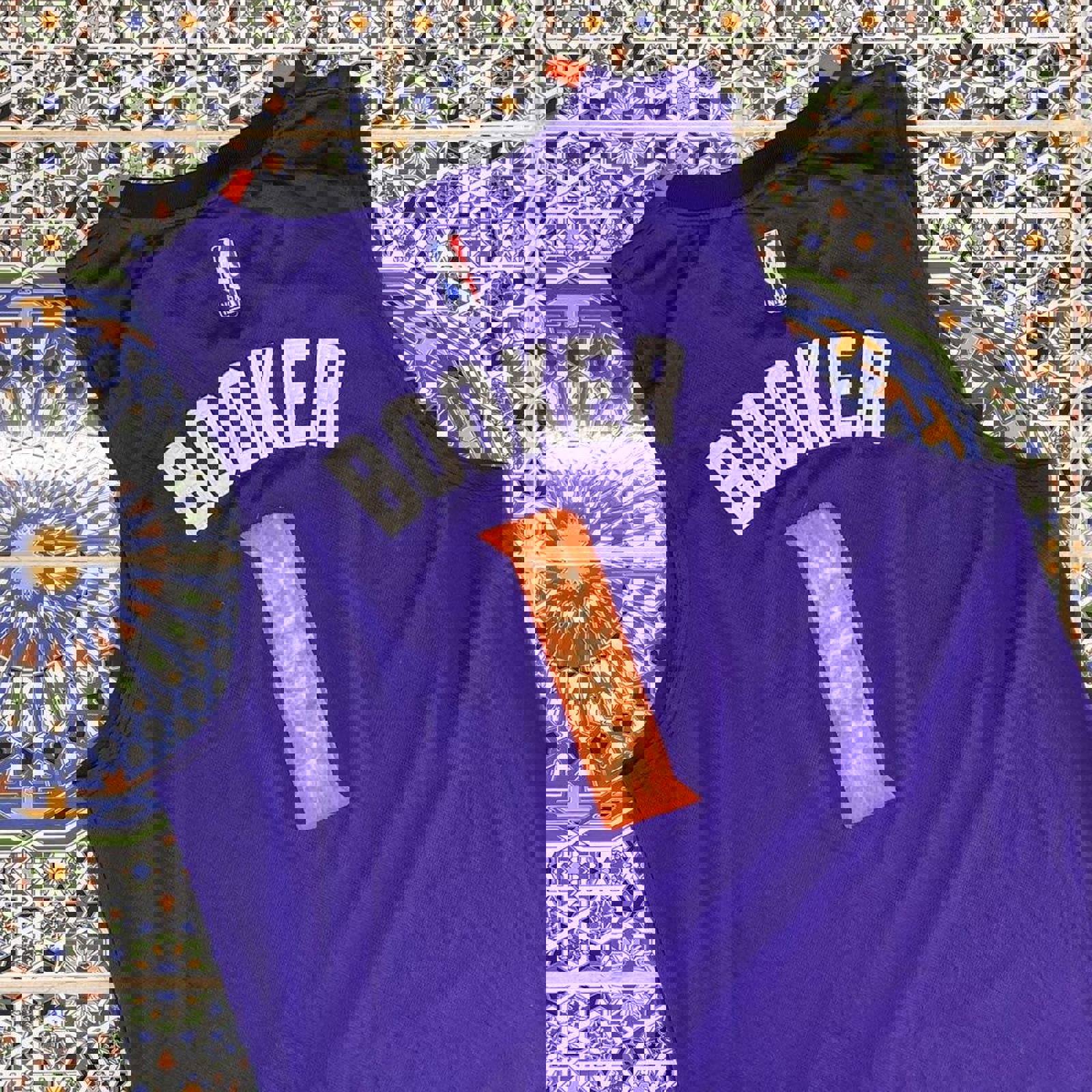 purple and orange away adidas phoenix suns jersey with devin booker from his rookie and second season on the back