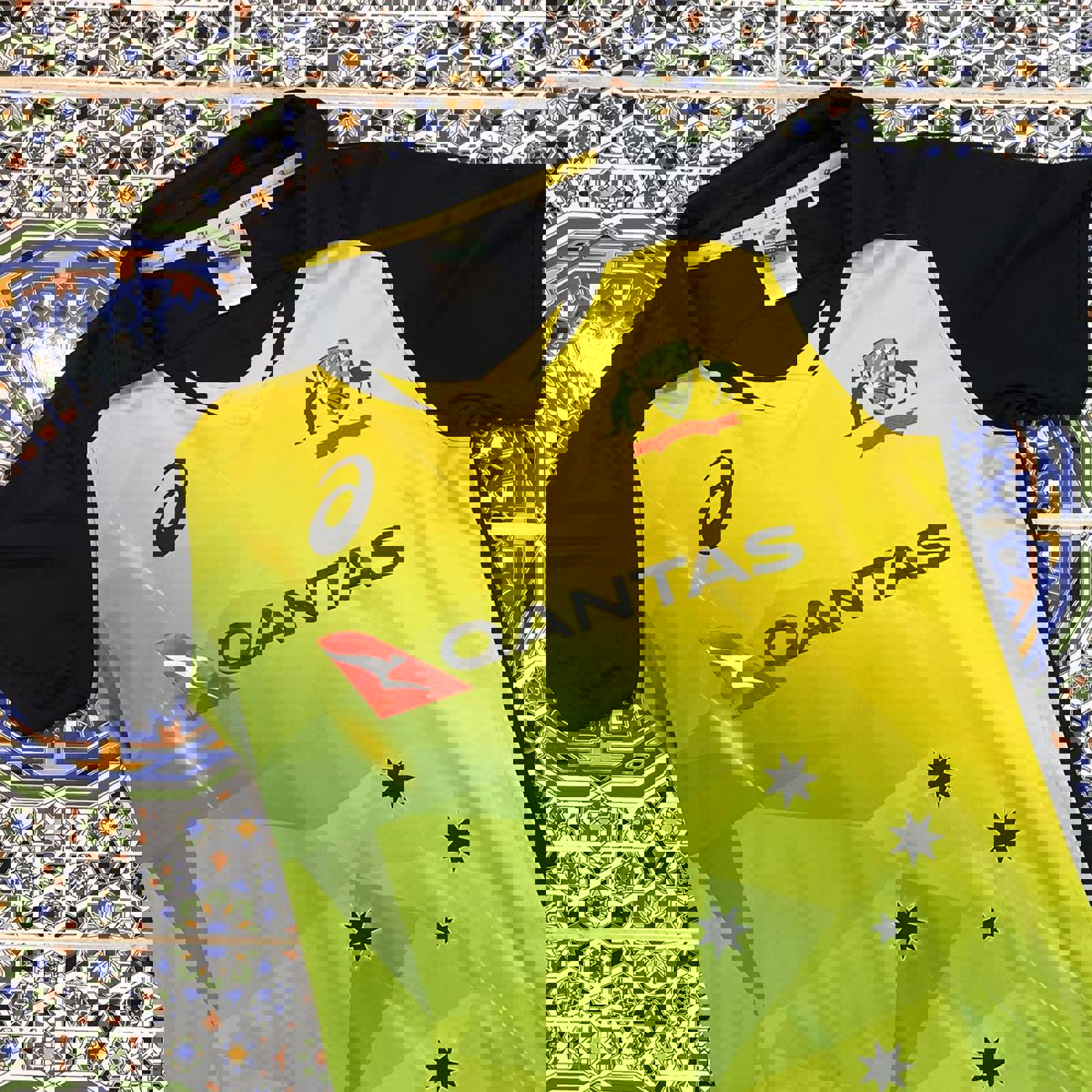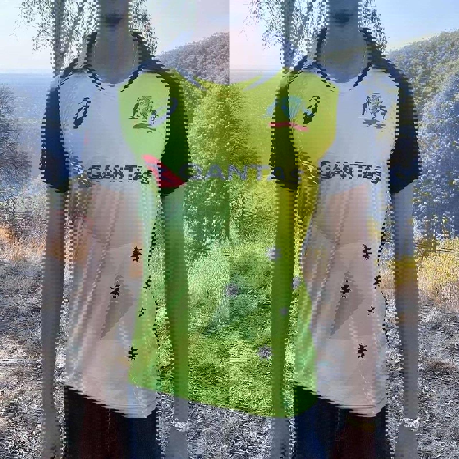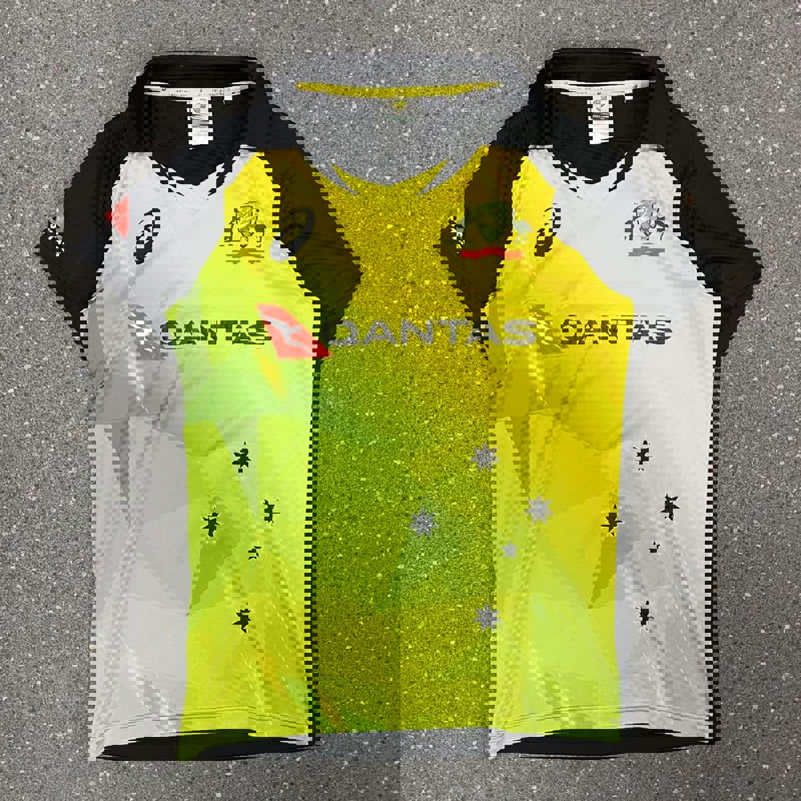 green and gold Australian cricket team T20 jersey with all printed logos