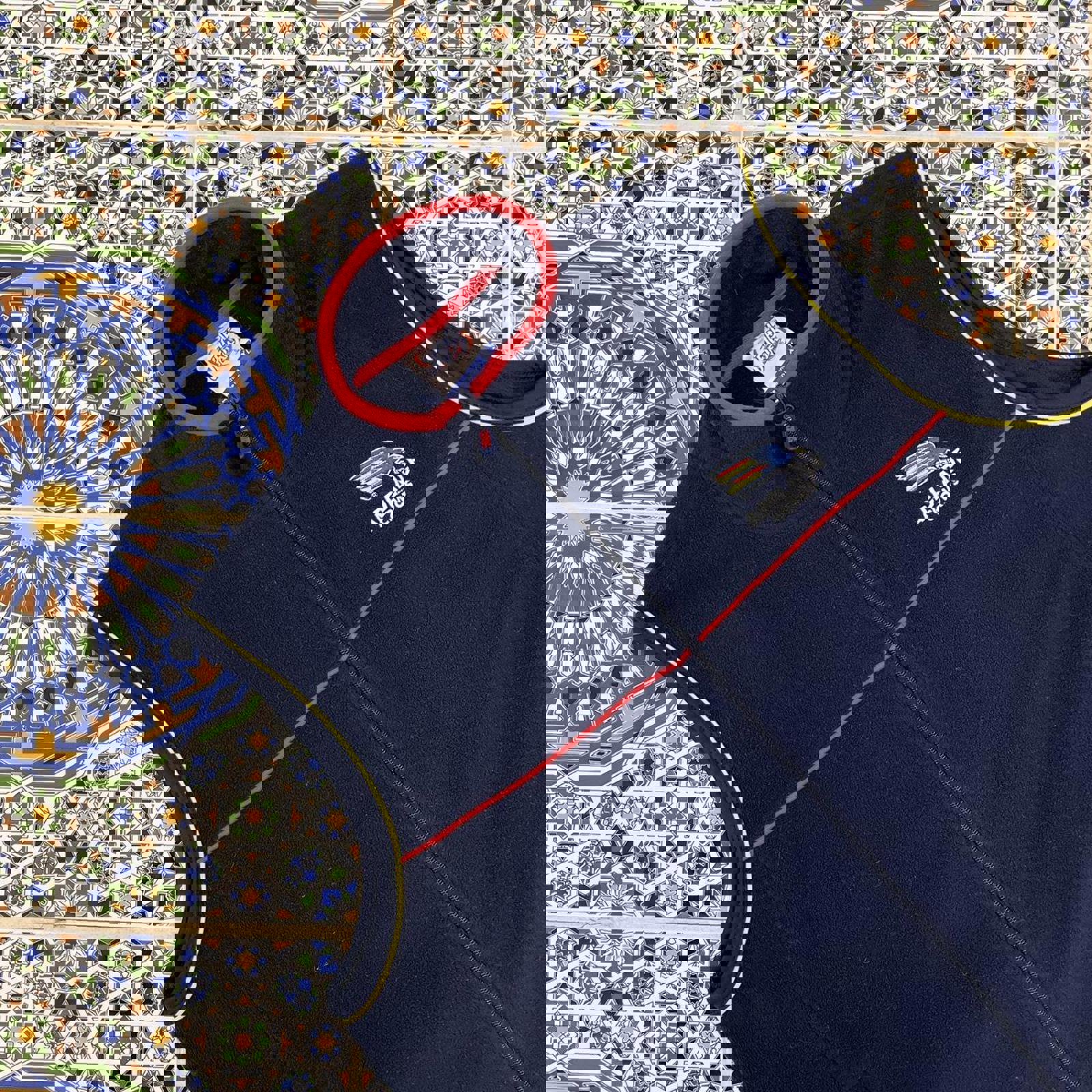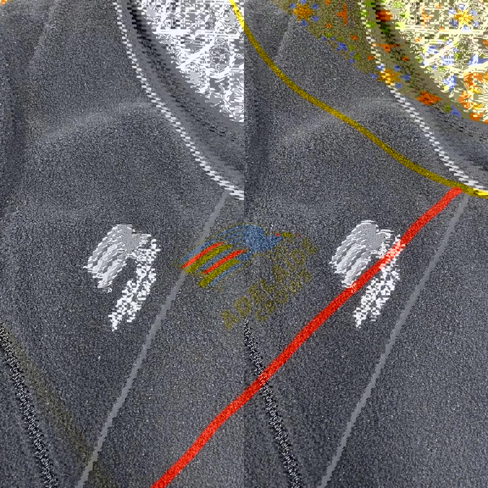 Navy Adelaide crows fleece vest with red and yellow piping, embroidered Adelaide crows graphic on the chest and a detailed zipper