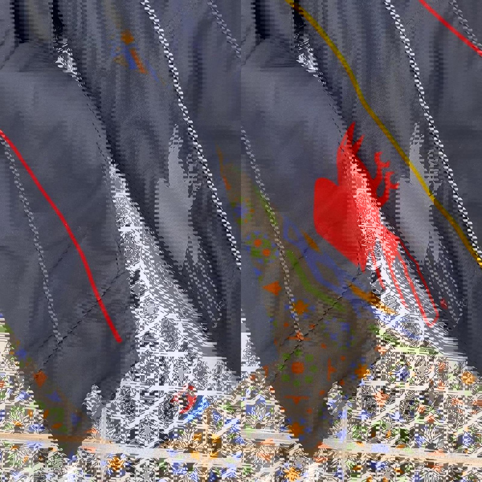 Navy Adelaide crows heavy weight jacket with red and yellow piping, an embroidered crows logo on the chest and a crow on the side