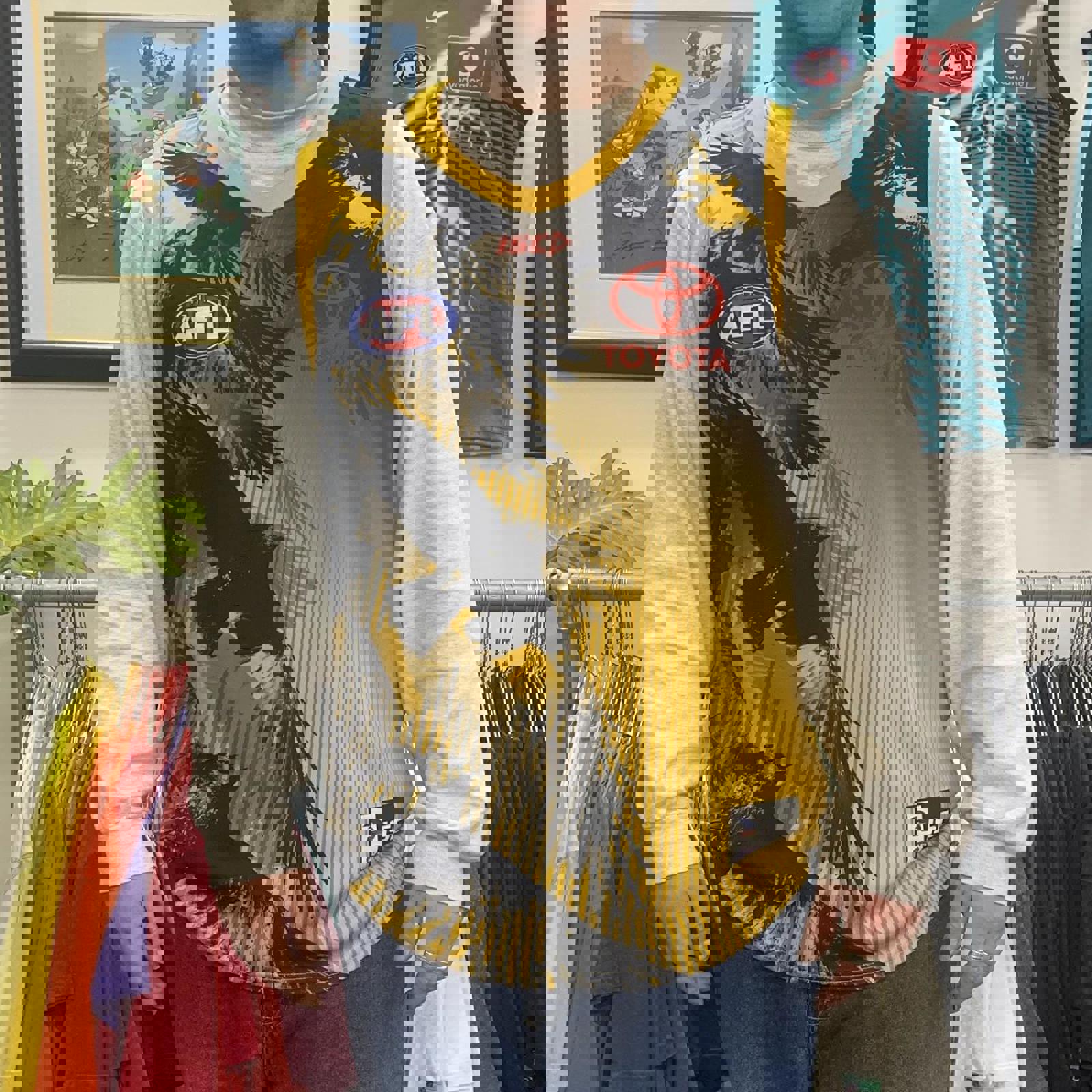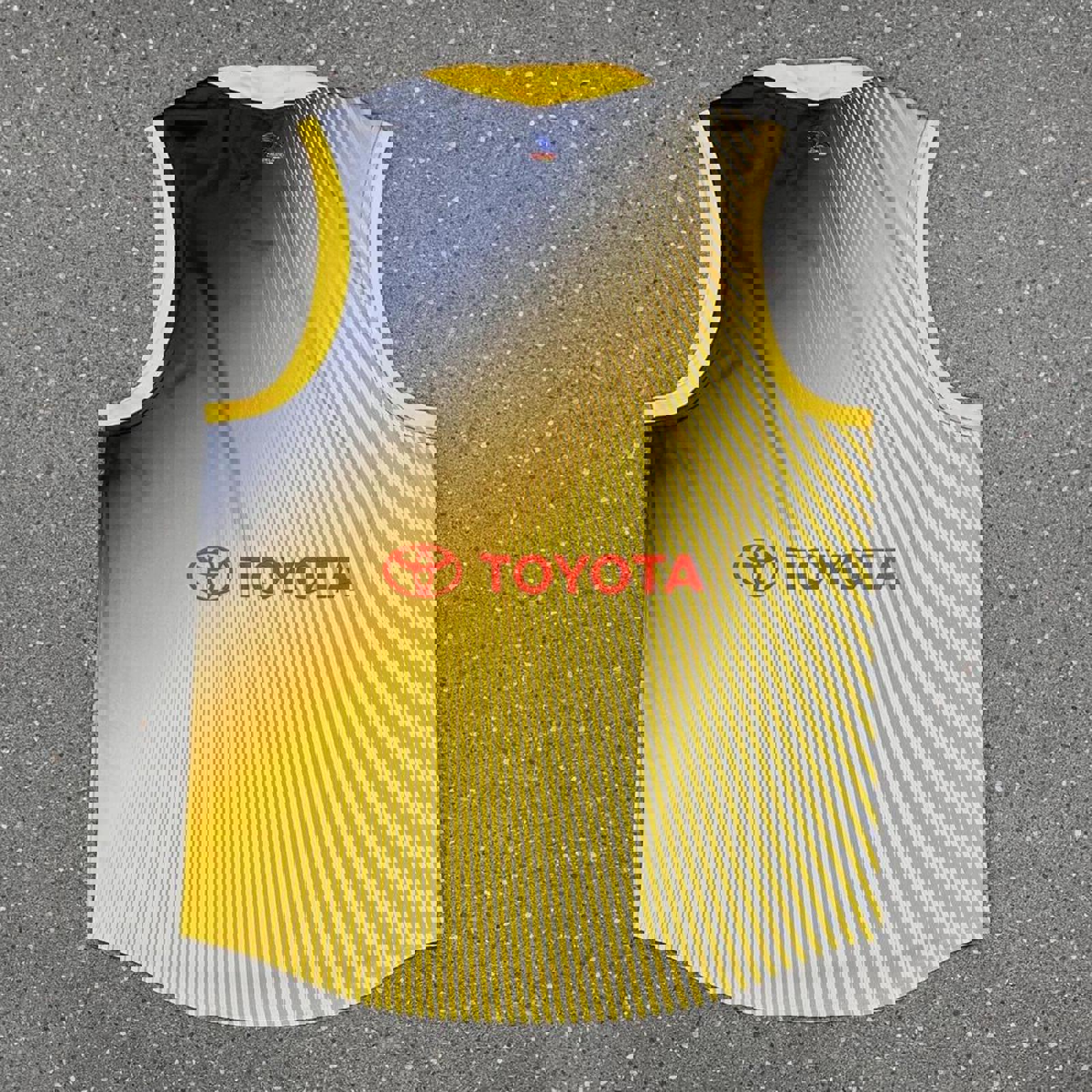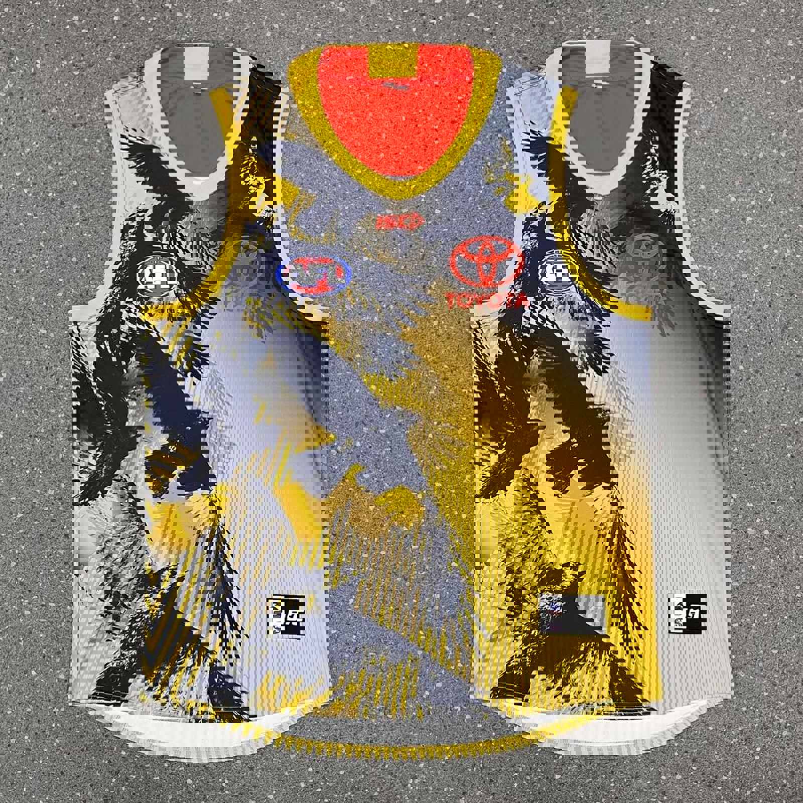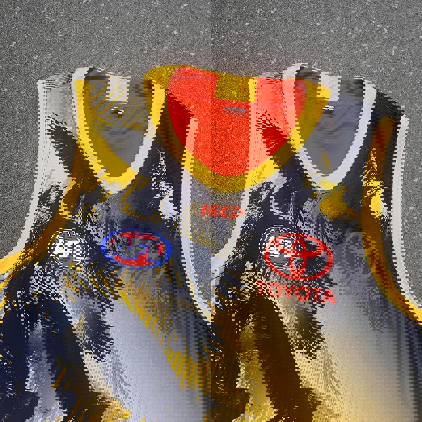 Yellow and navy Adelaide crows isc training jersey with a crow graphic on the front