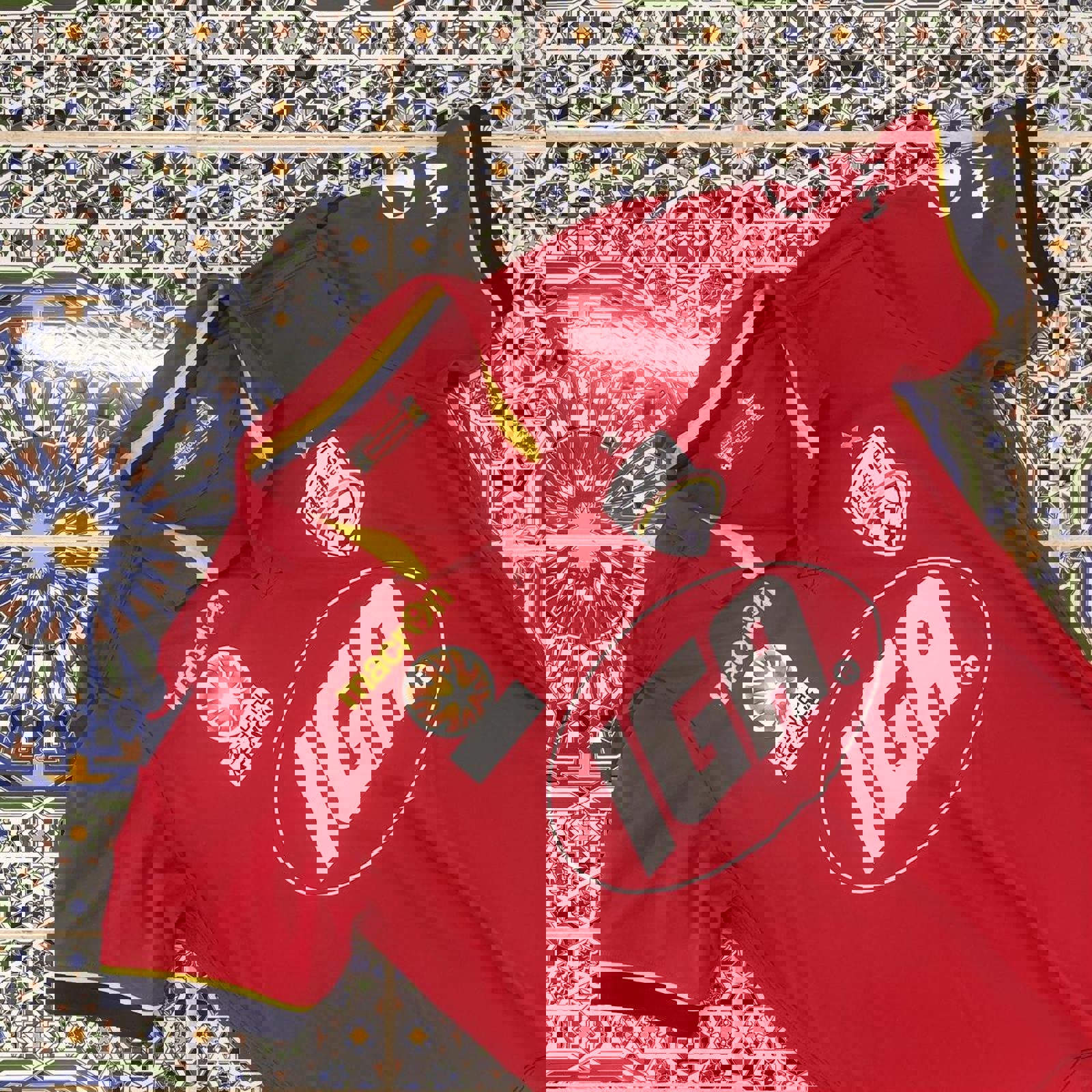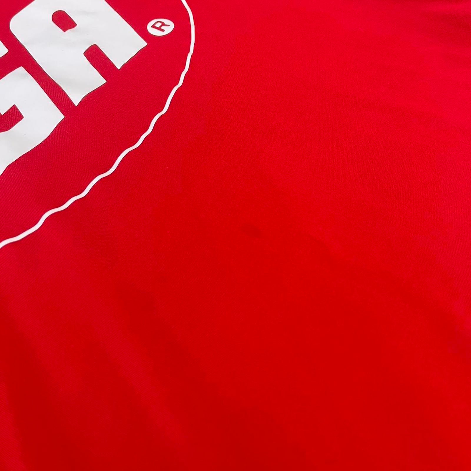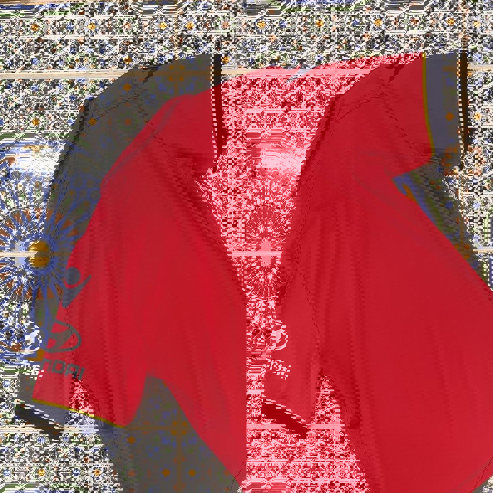 2016-17 Adelaide united red football jersey with embroidered and screen printed logos on the front and sleeves