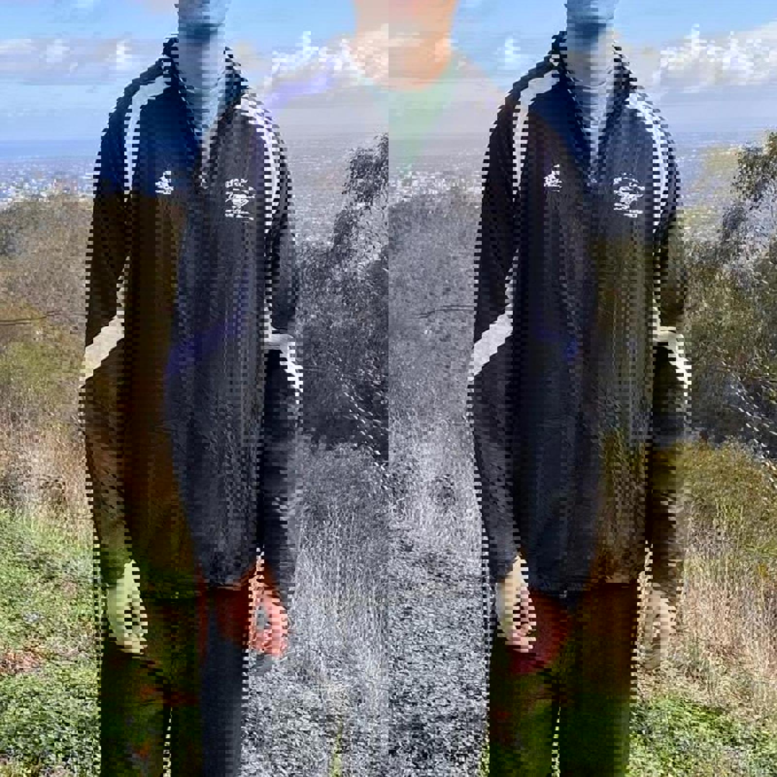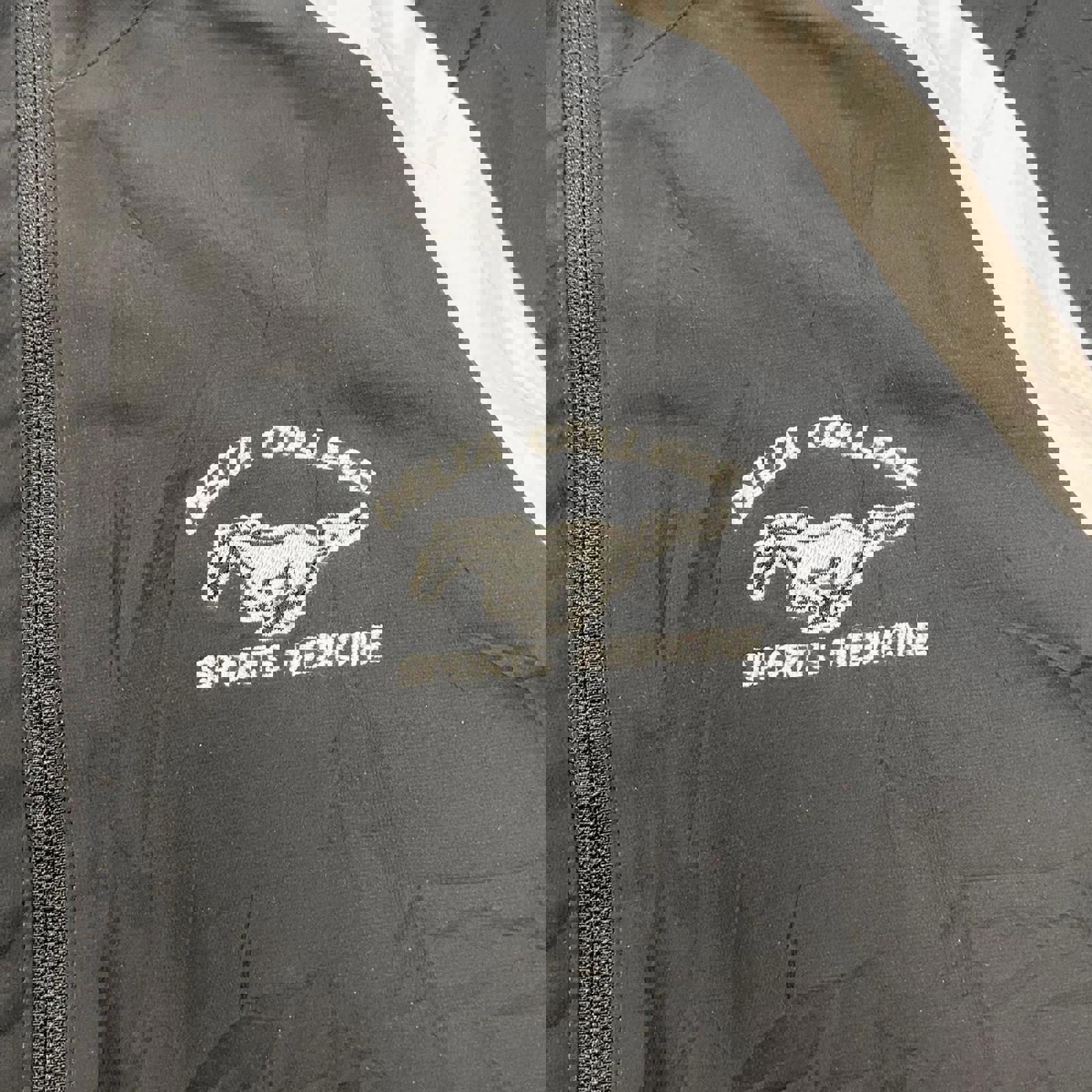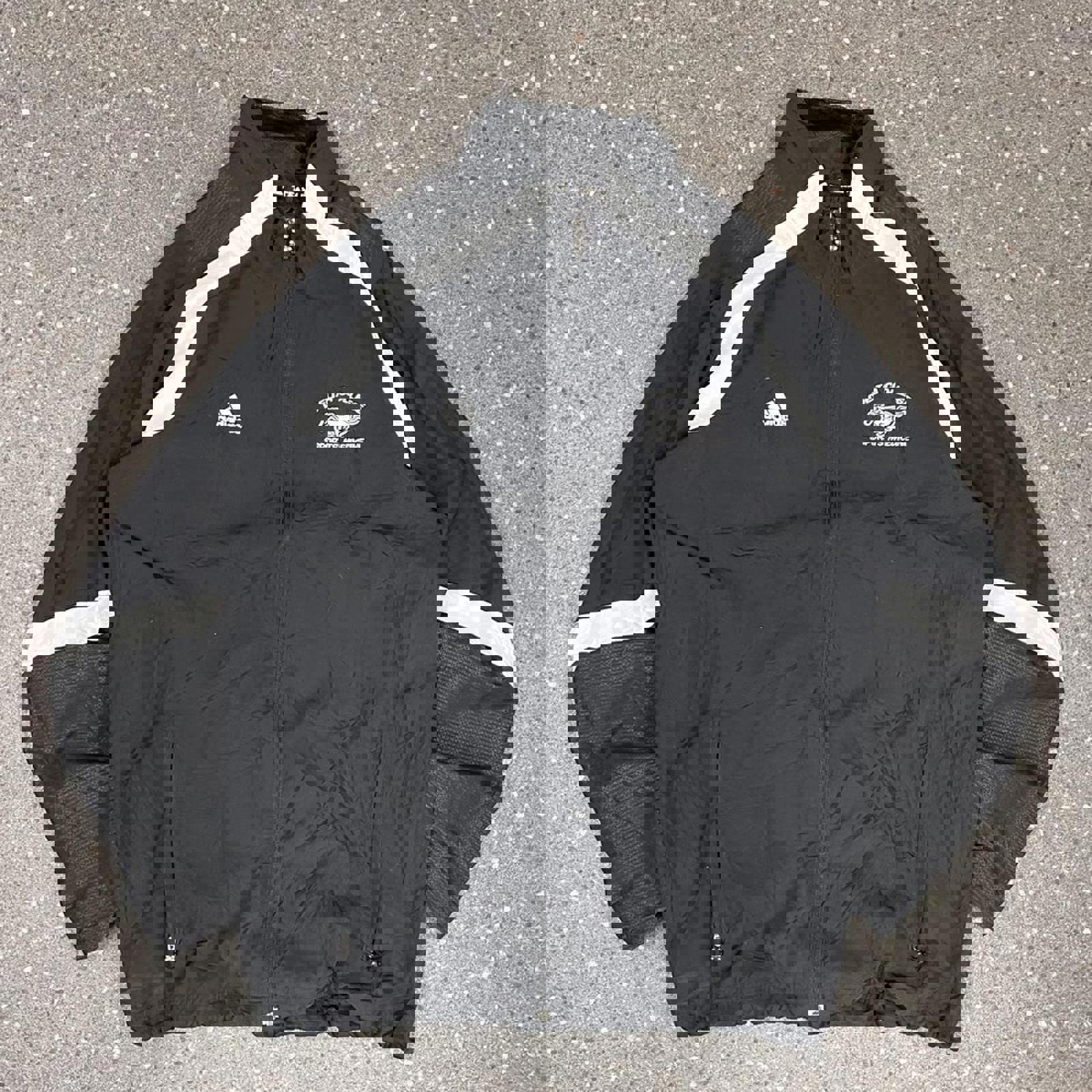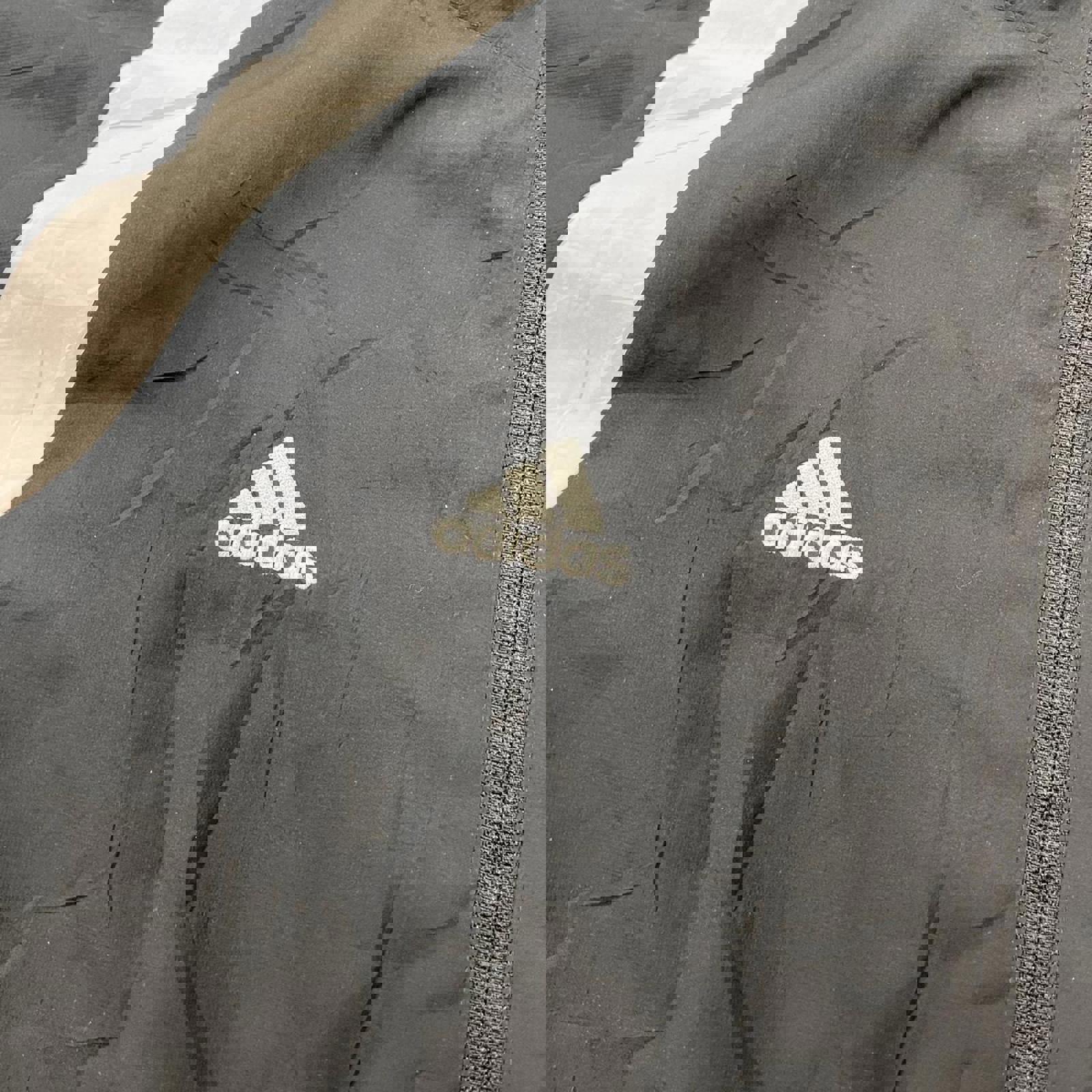black and white adidas delta college sports medicine track jacket with all embroidered logos and 3 stripes on the back neck