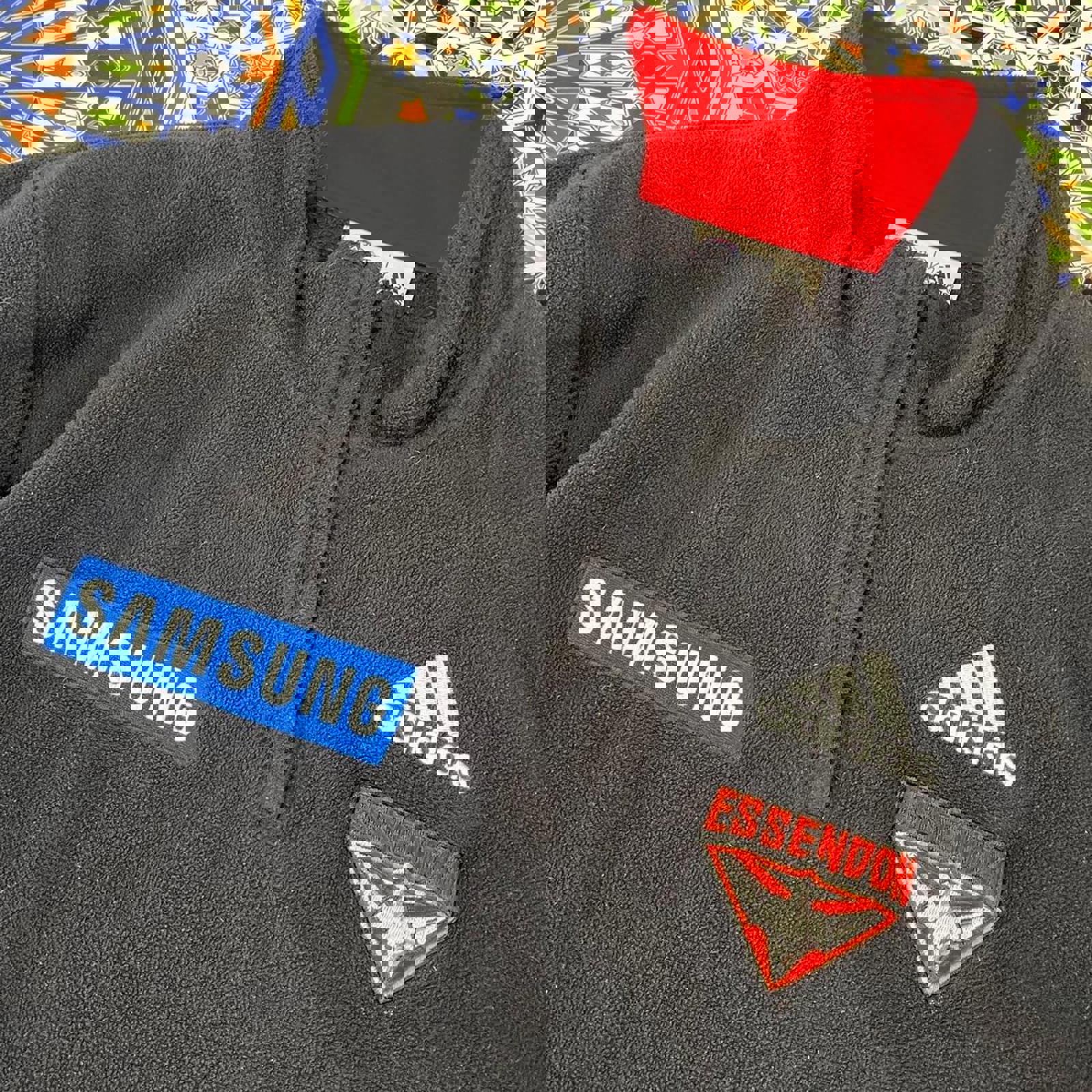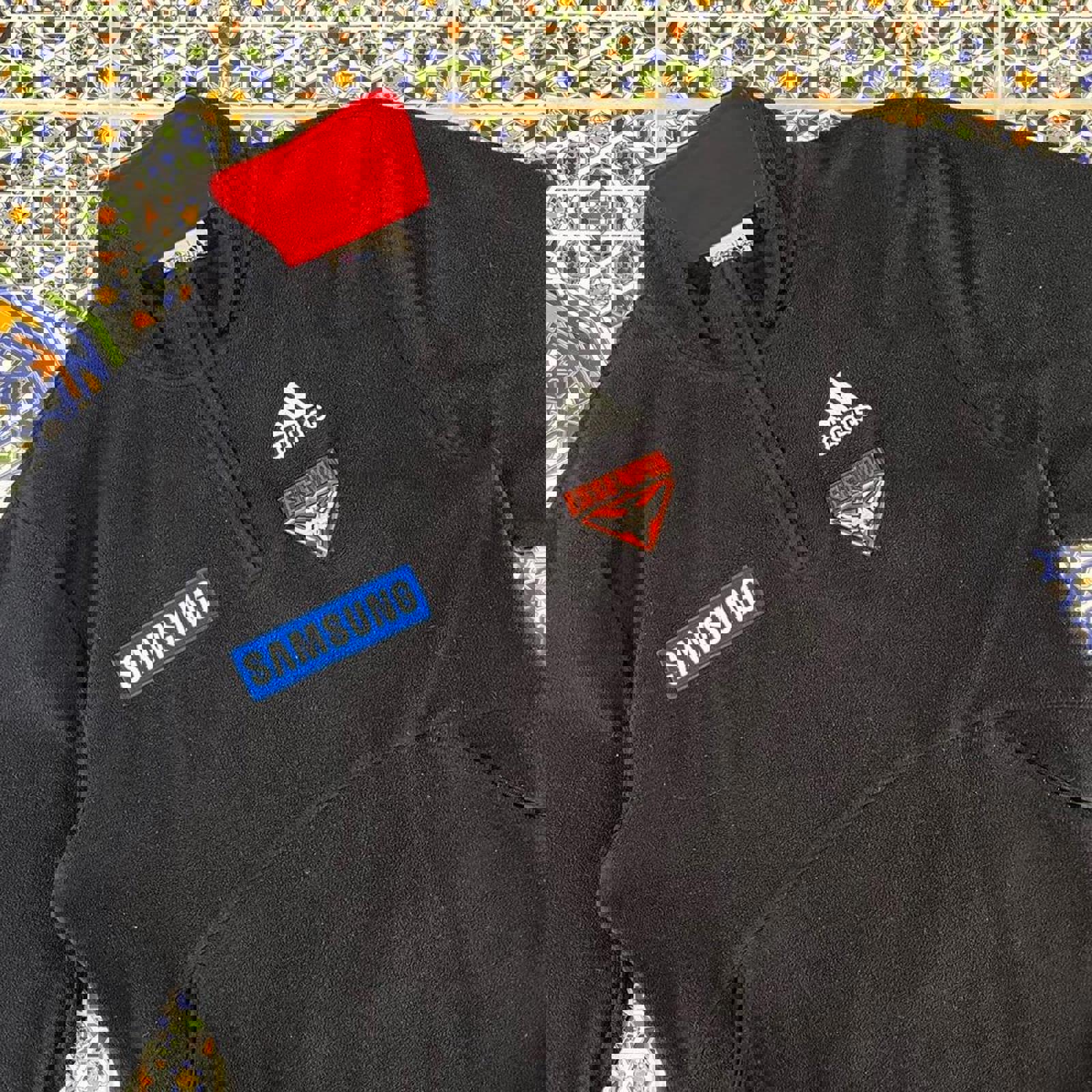 black and red fleece adidas bombers 1/4 zip jumper with all embroidered logos