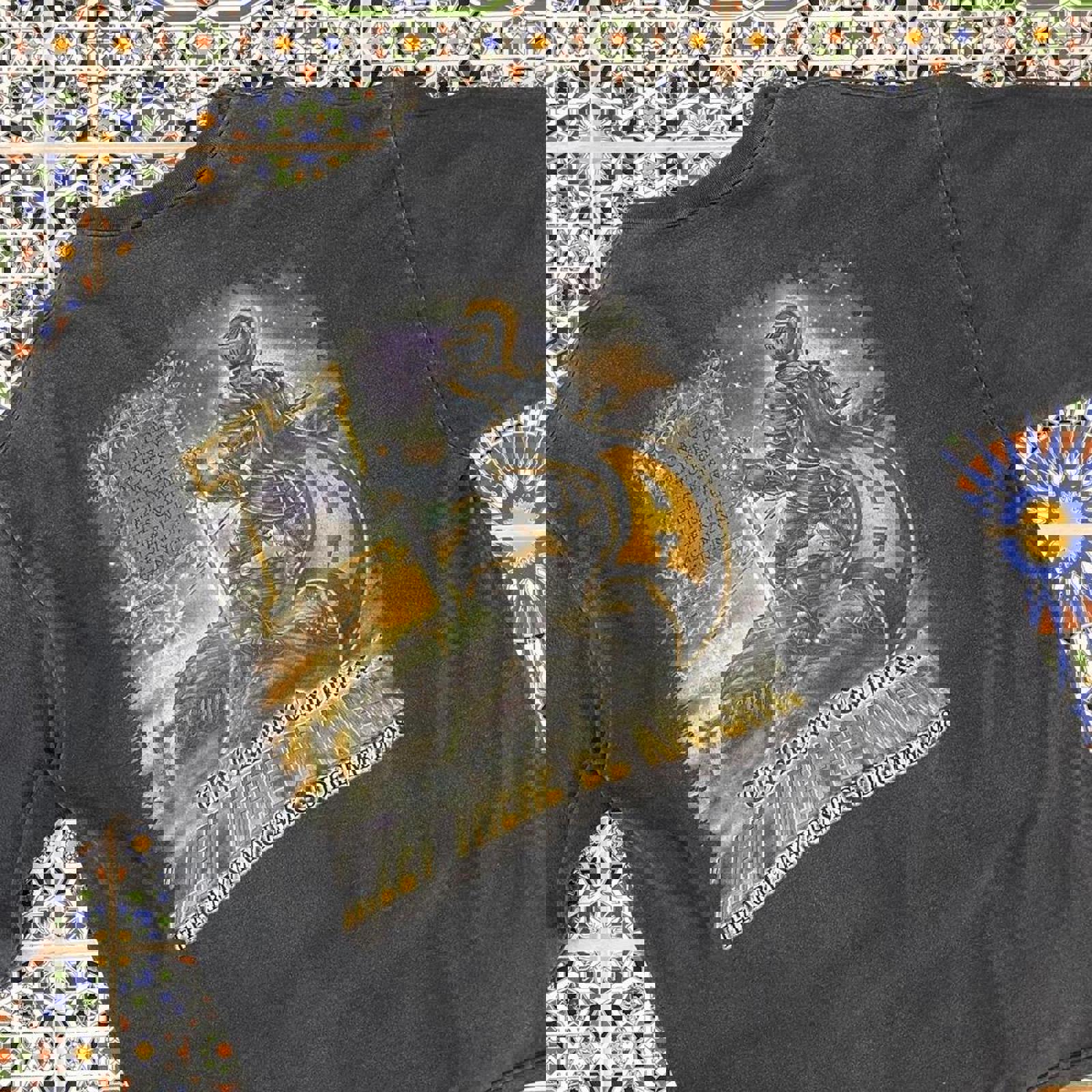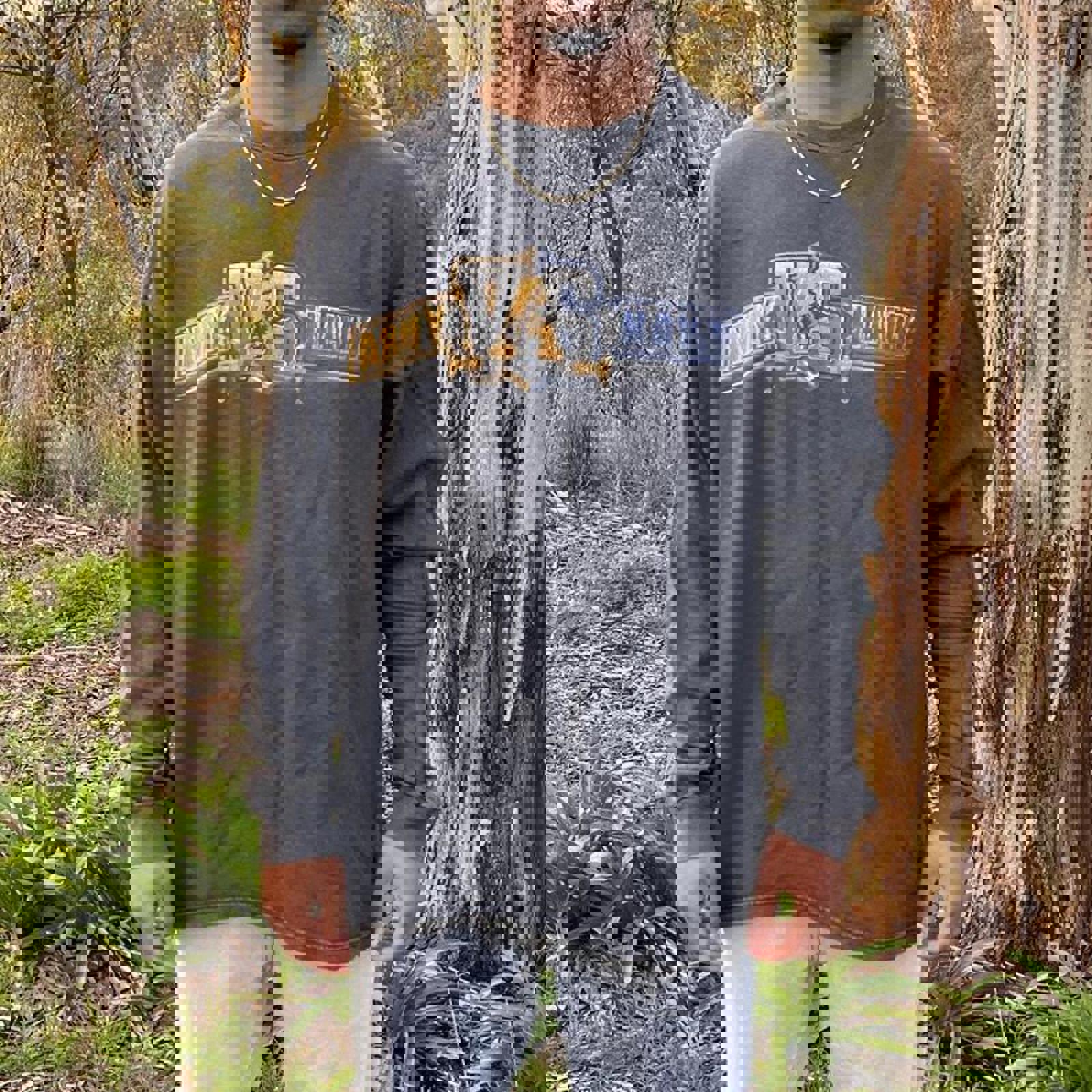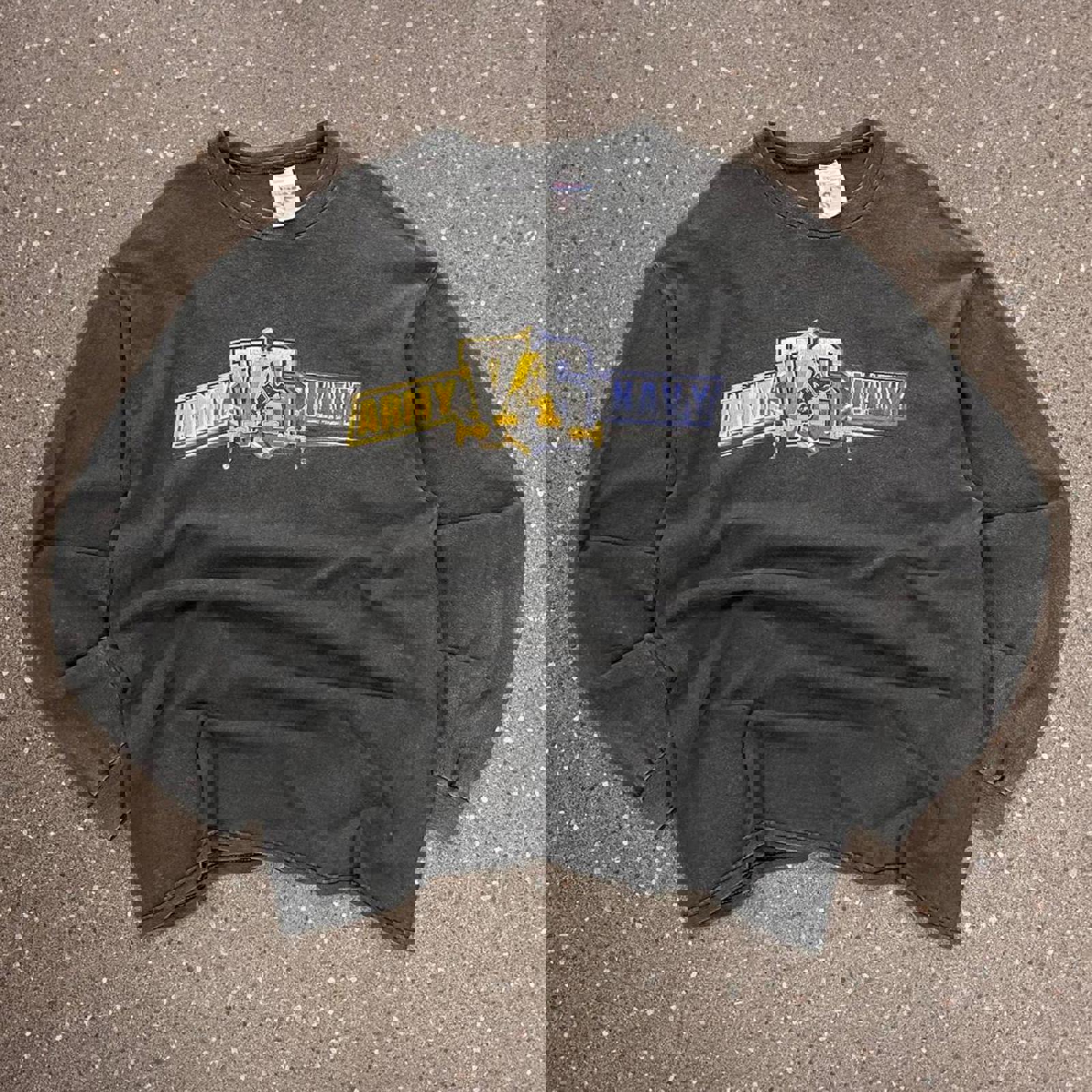 Vintage black Hanes long sleeve tshirt with a yellow and blue navy vs army graphic on the front and a large medieval football graphic on the back