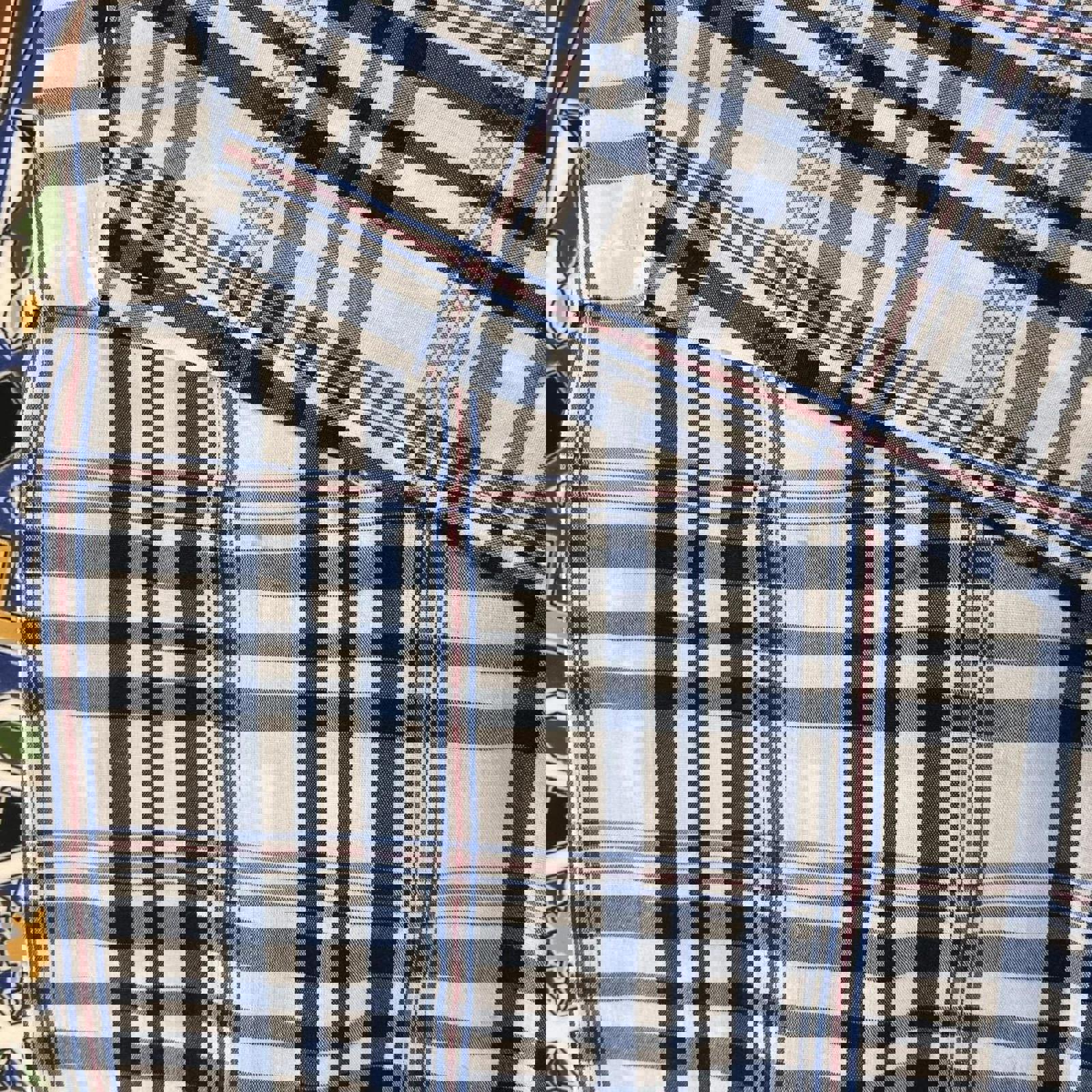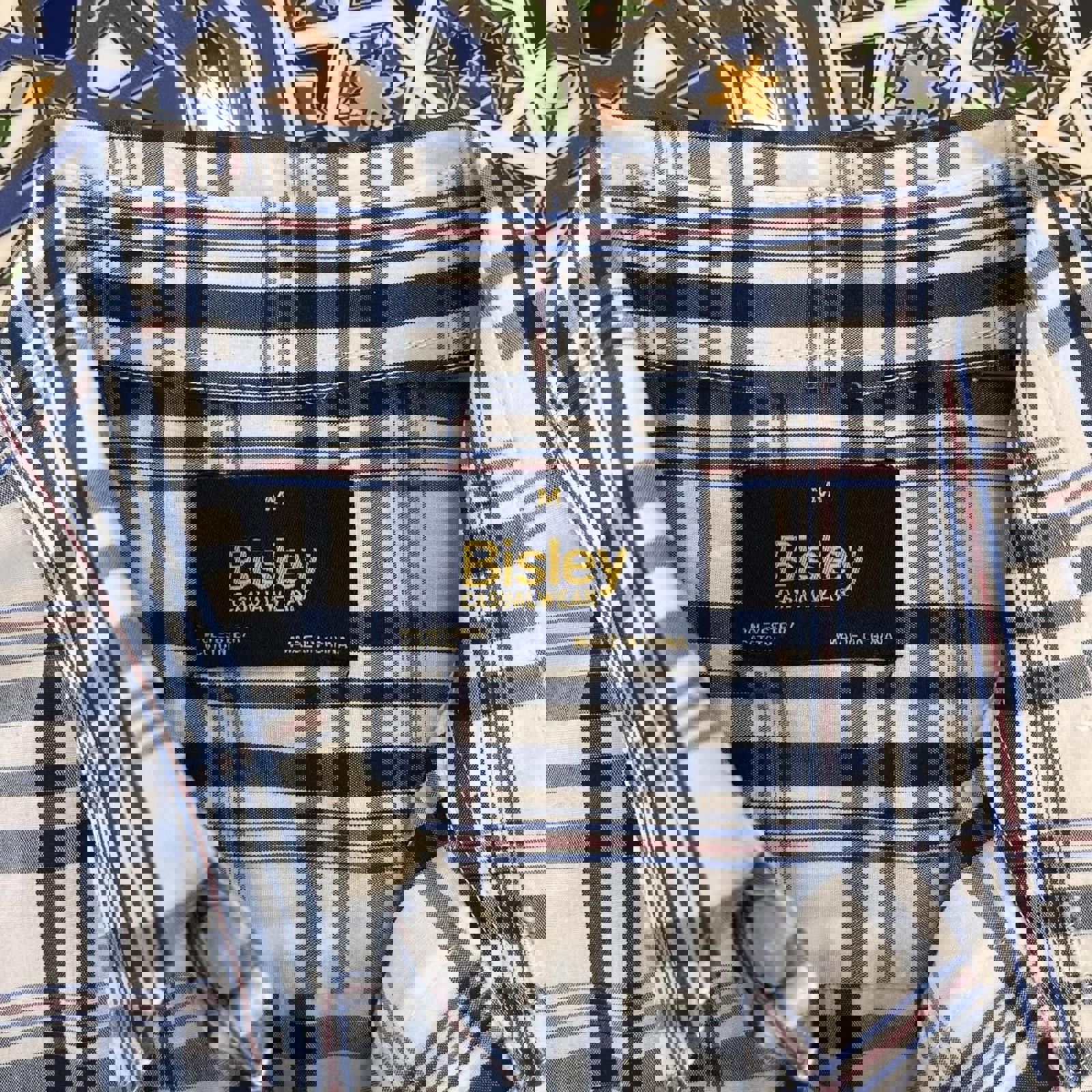 navy and white biesley short sleeved button up shirt with double chest pockets
