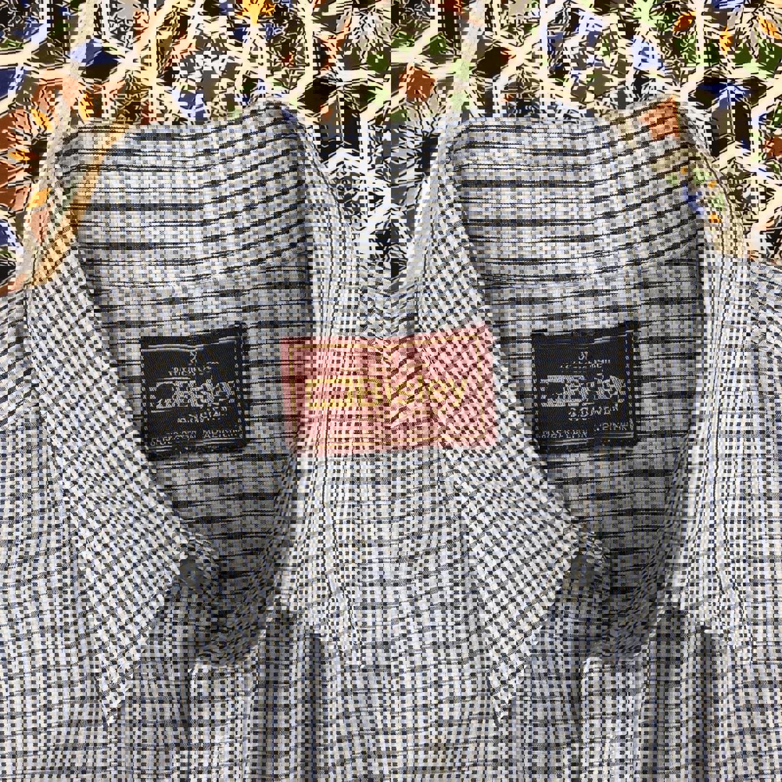 Navy and blue checkered bisley short sleeve button up shirt with double chest pockets