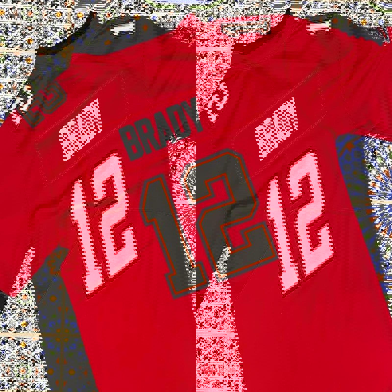 Red Tony Brady Tampa bay buccaneers football jersey with embroidered on patches all over