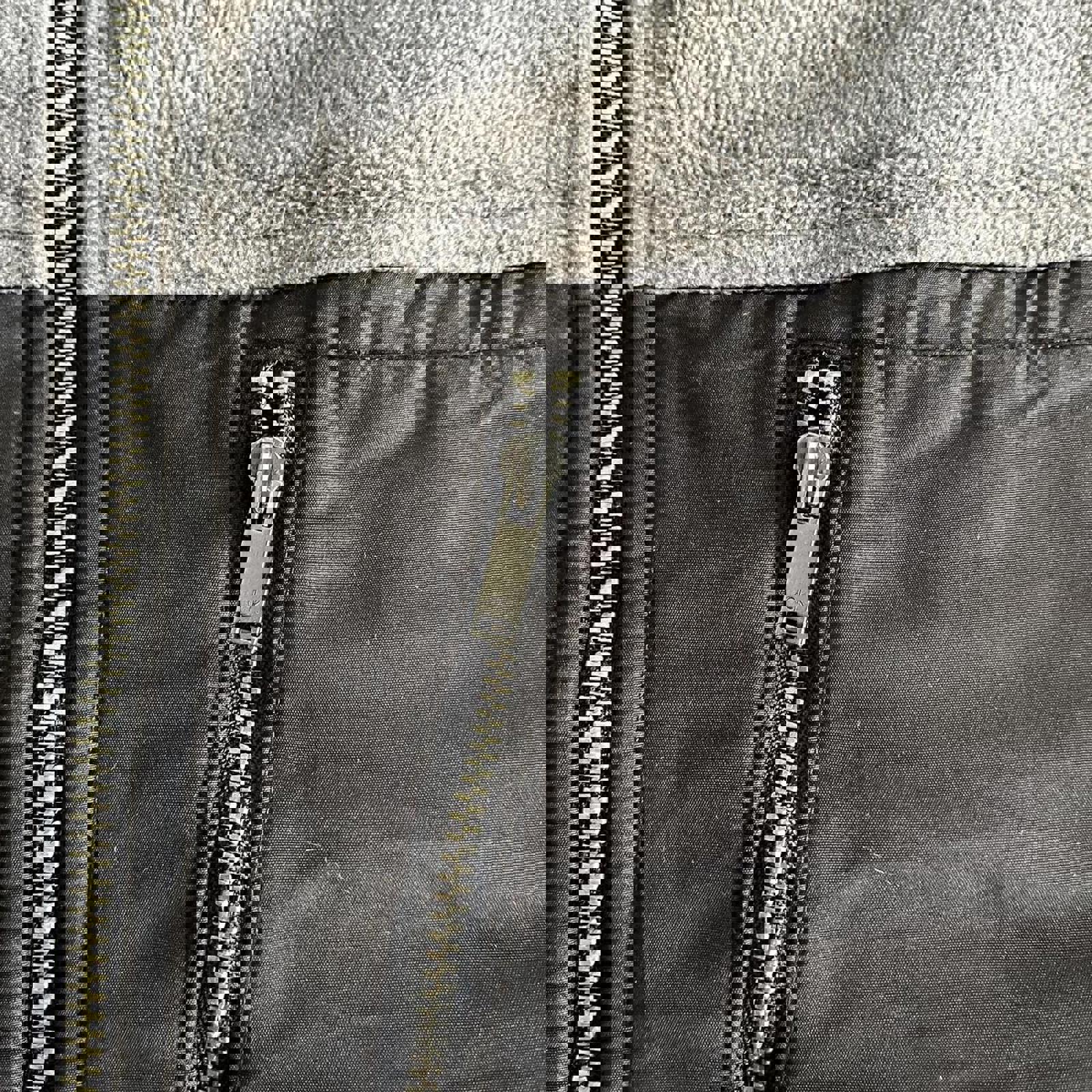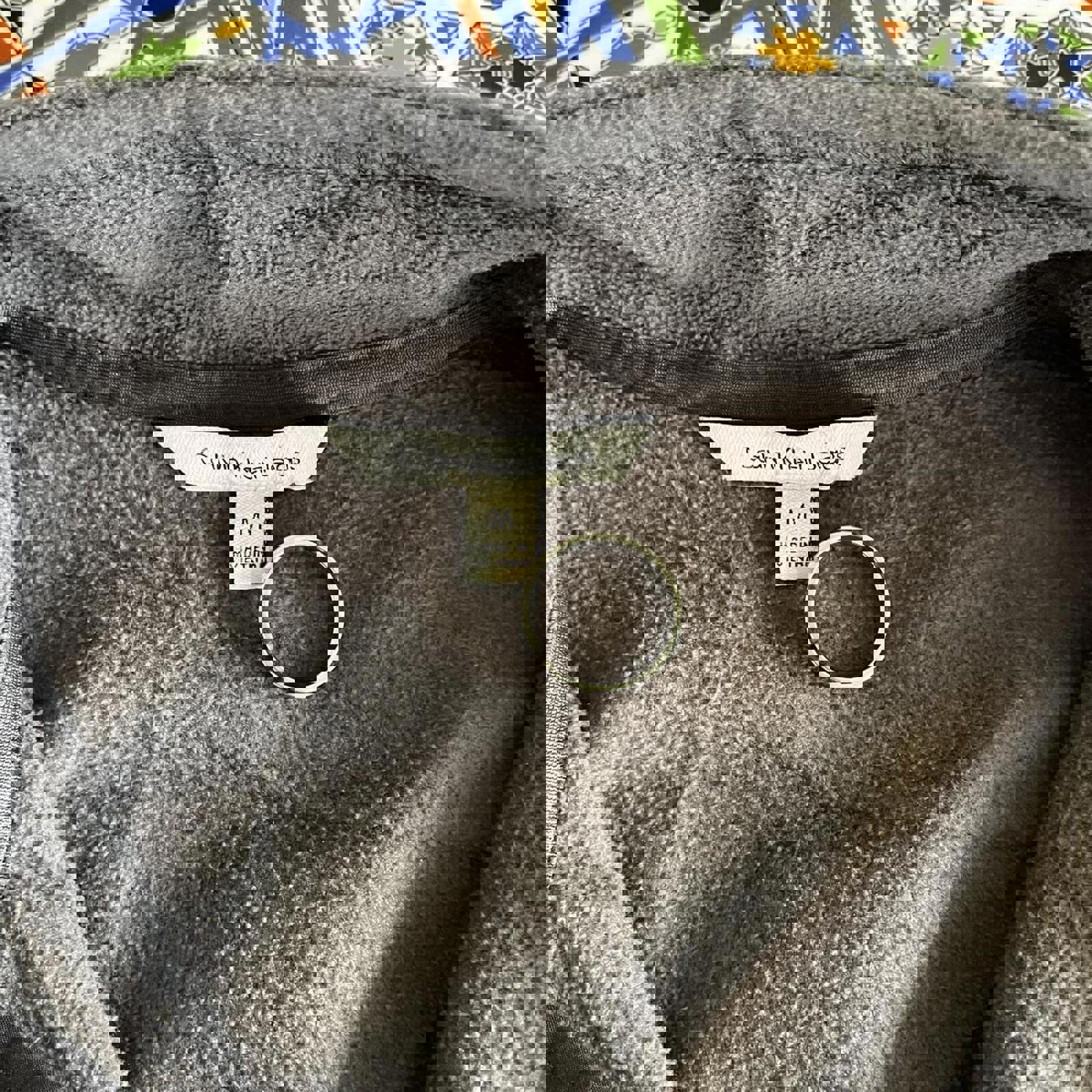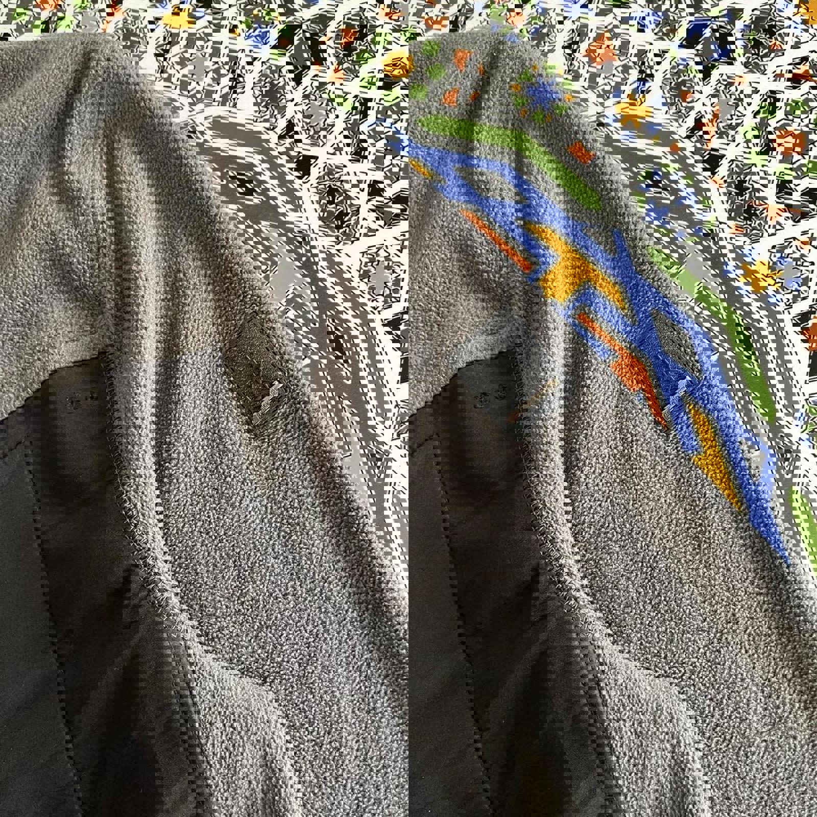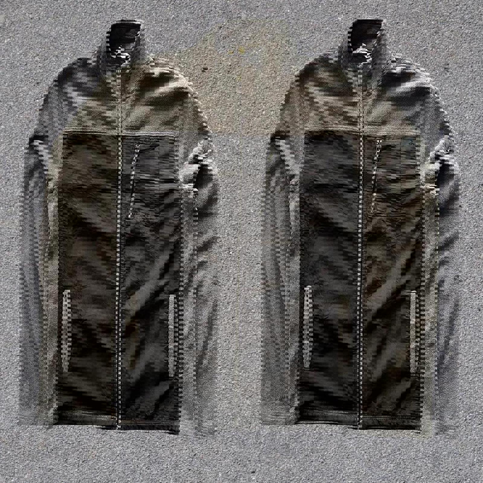 grey and black, fleece and nylon Calvin Klein sweater jacket with a zip-able pocket on the chest and a CK tab on the shoulder