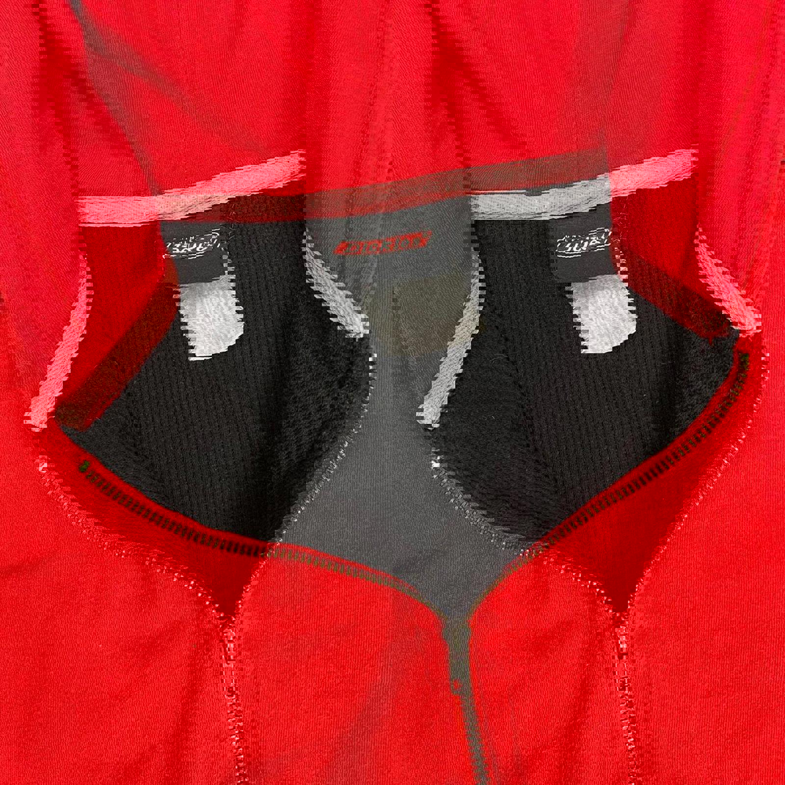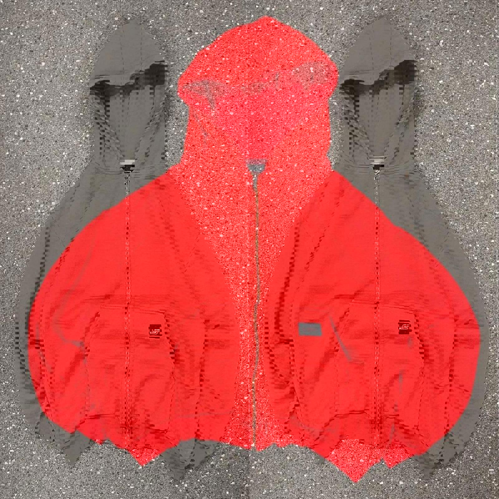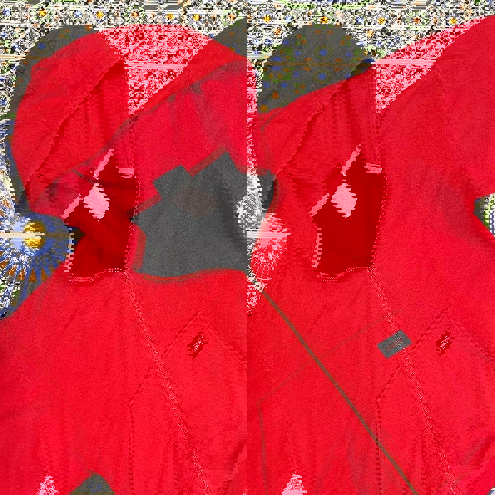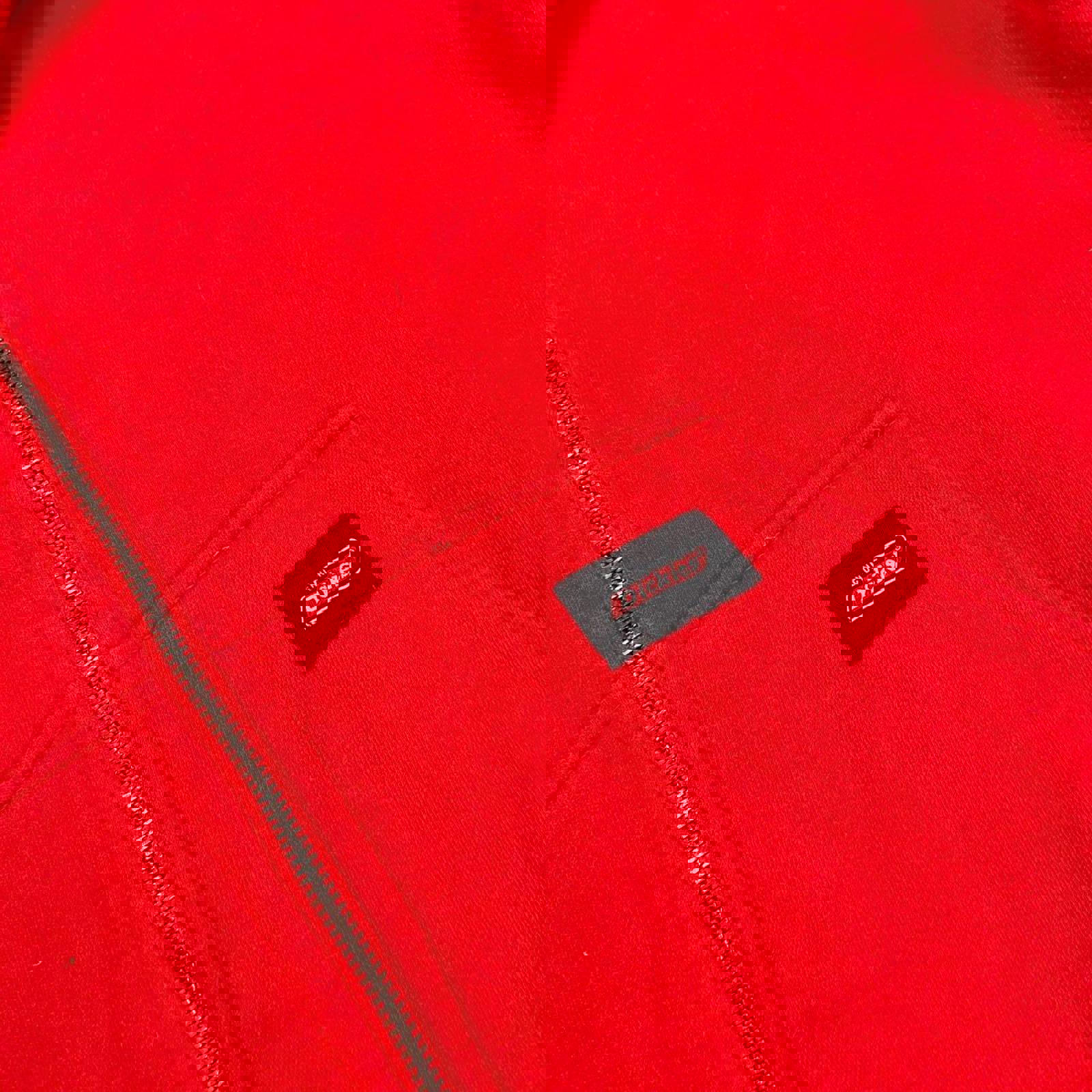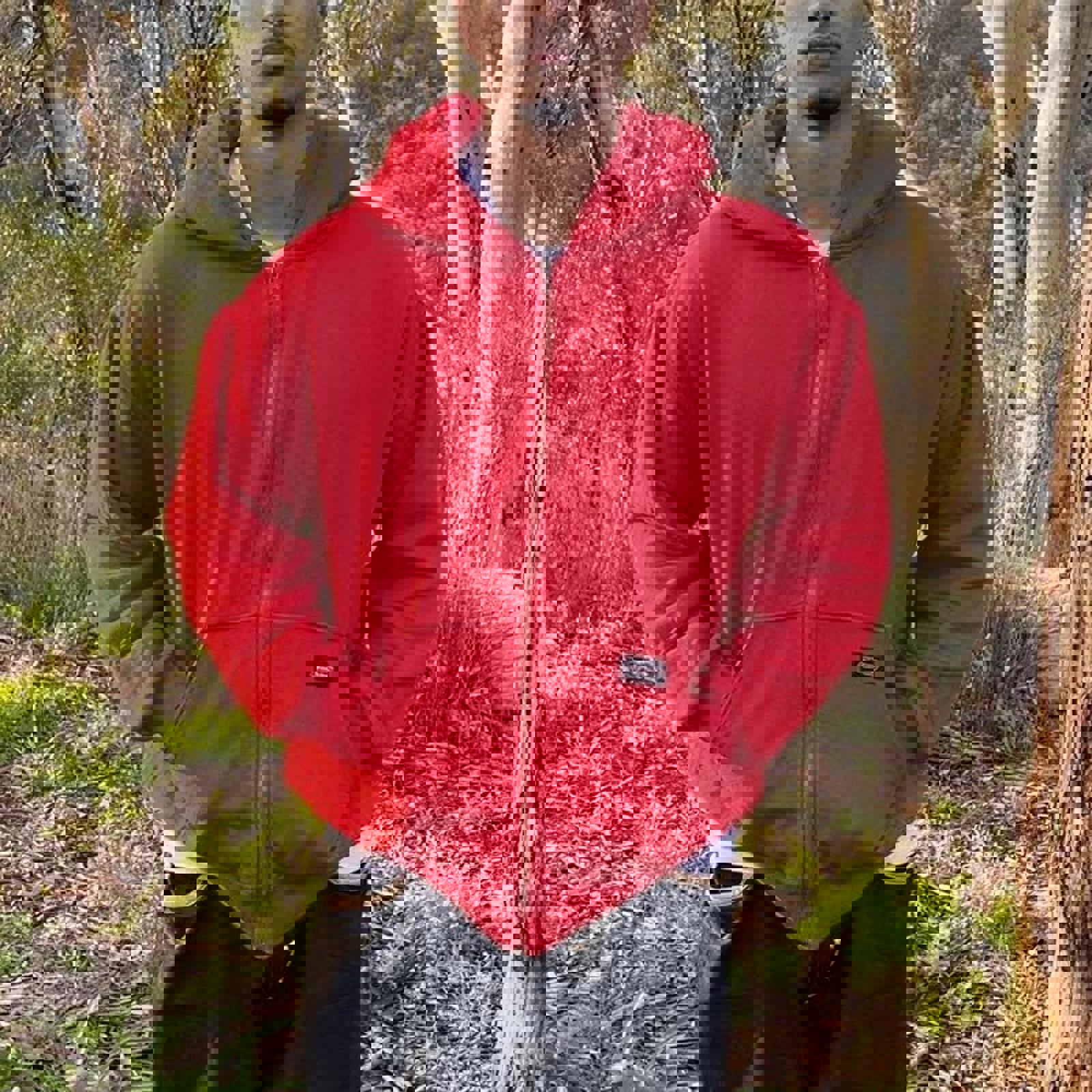 Red dickies zip up hoodie with a red and black batch on the hoodie pocket