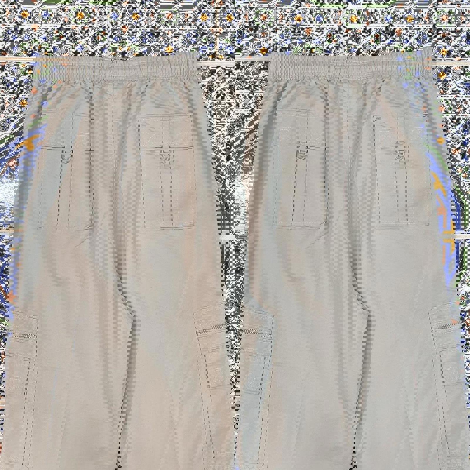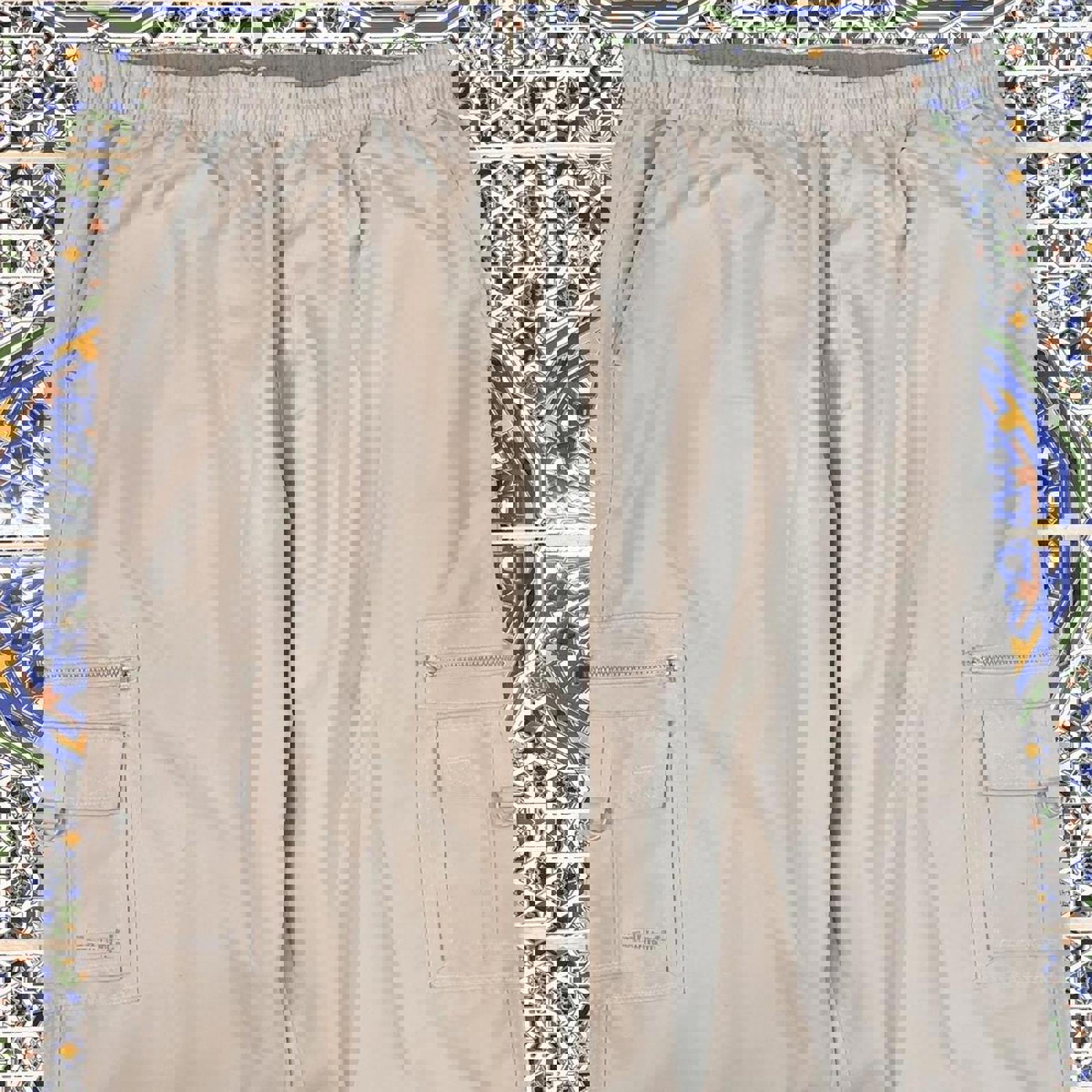 Beige Fabiani cargo pants with a spell out graphic on the cargo pocket