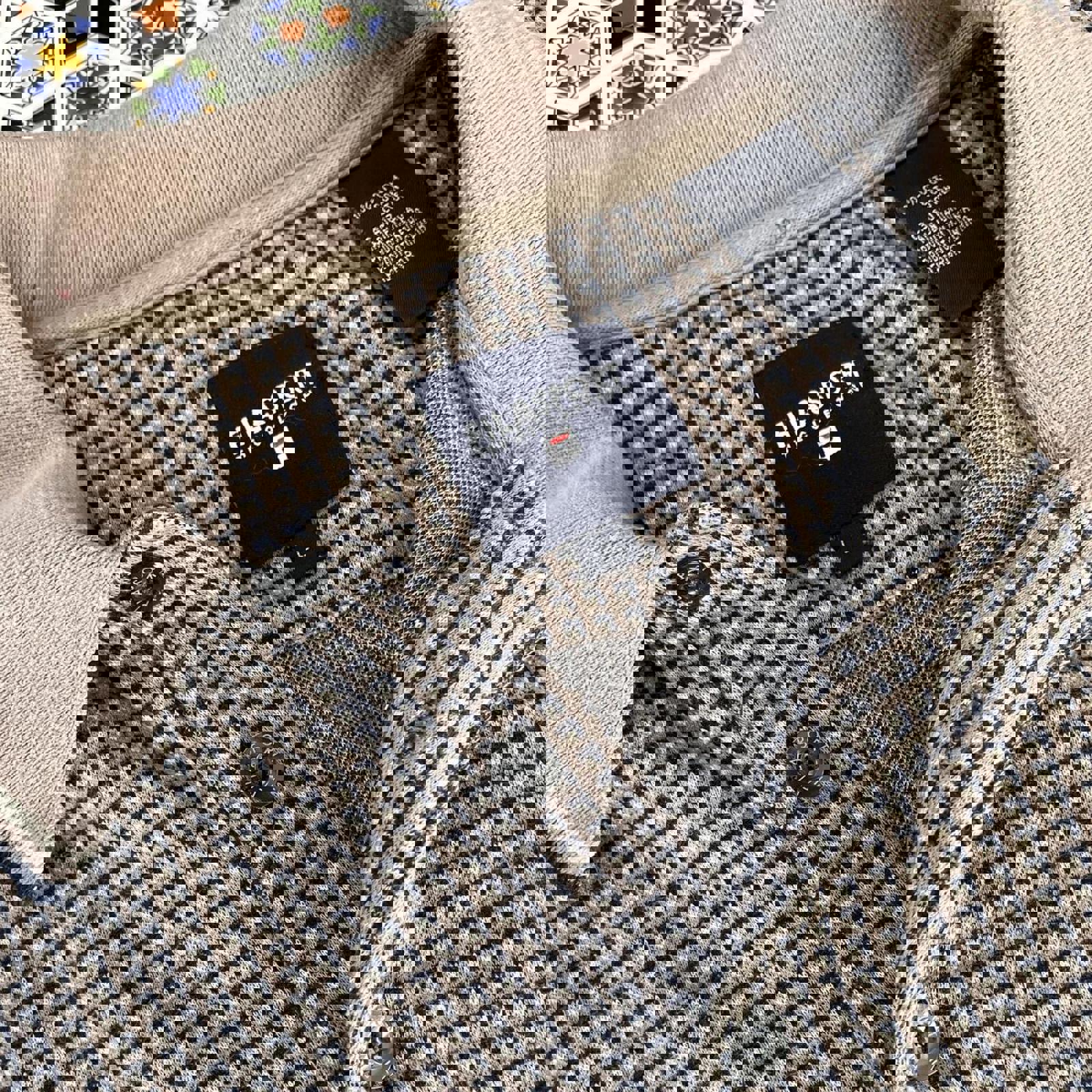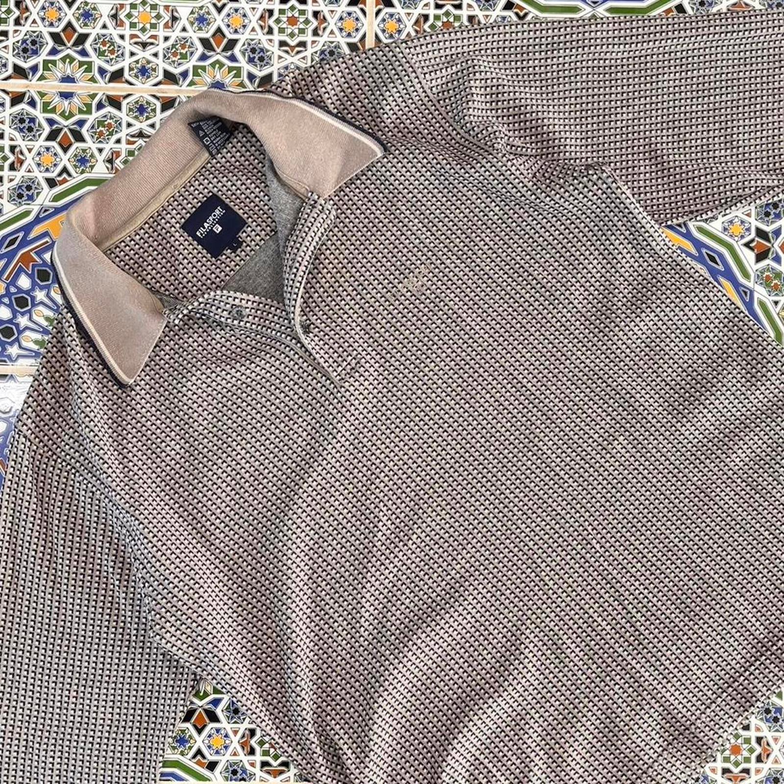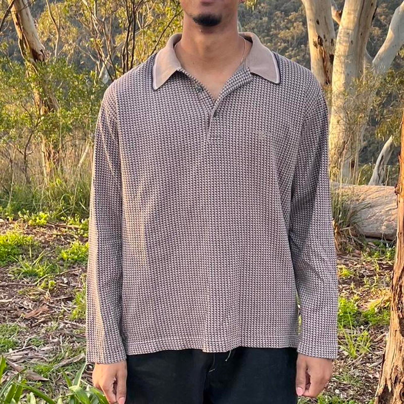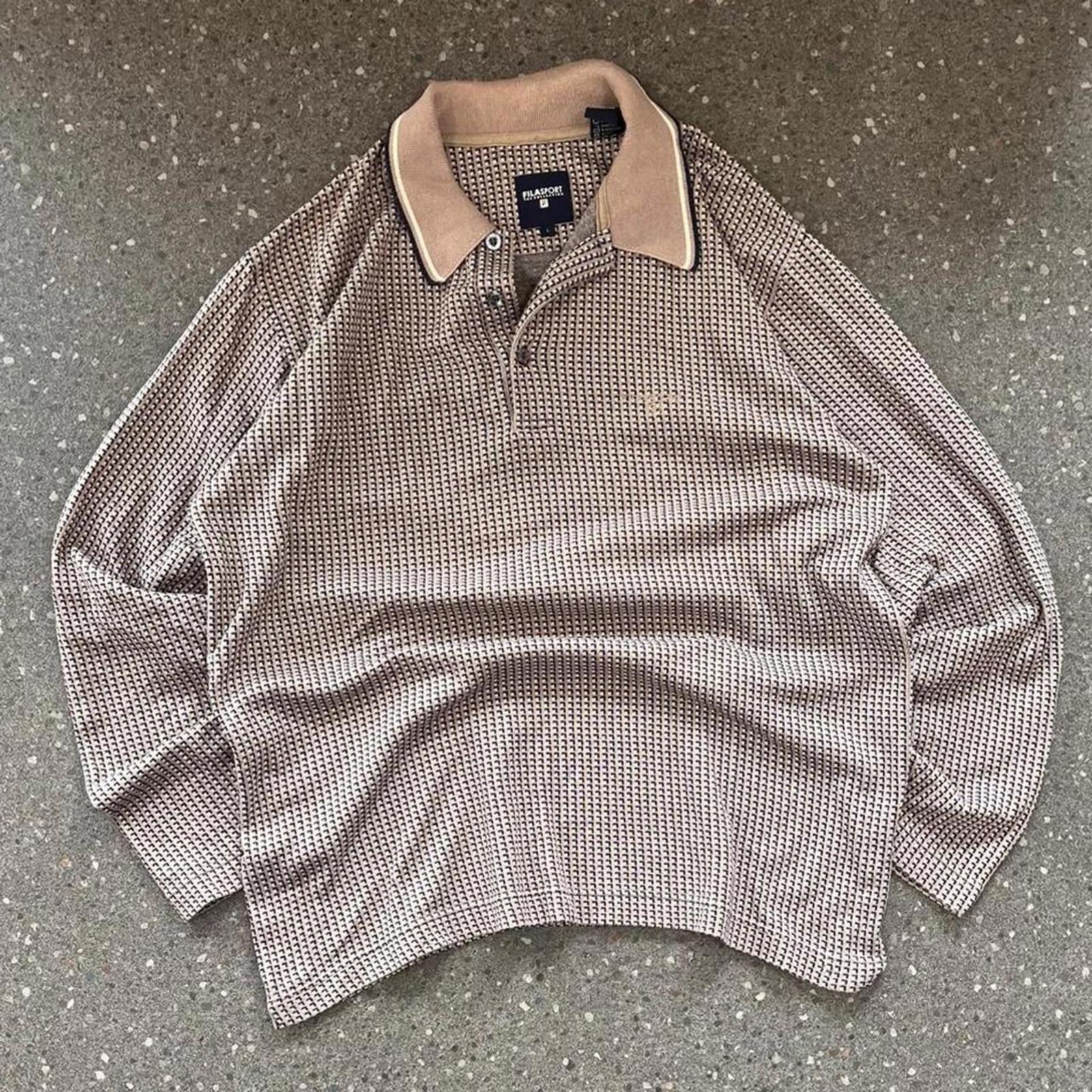 Brown, white and black patterned fila sport long sleeved polo shirt with detailed buttons