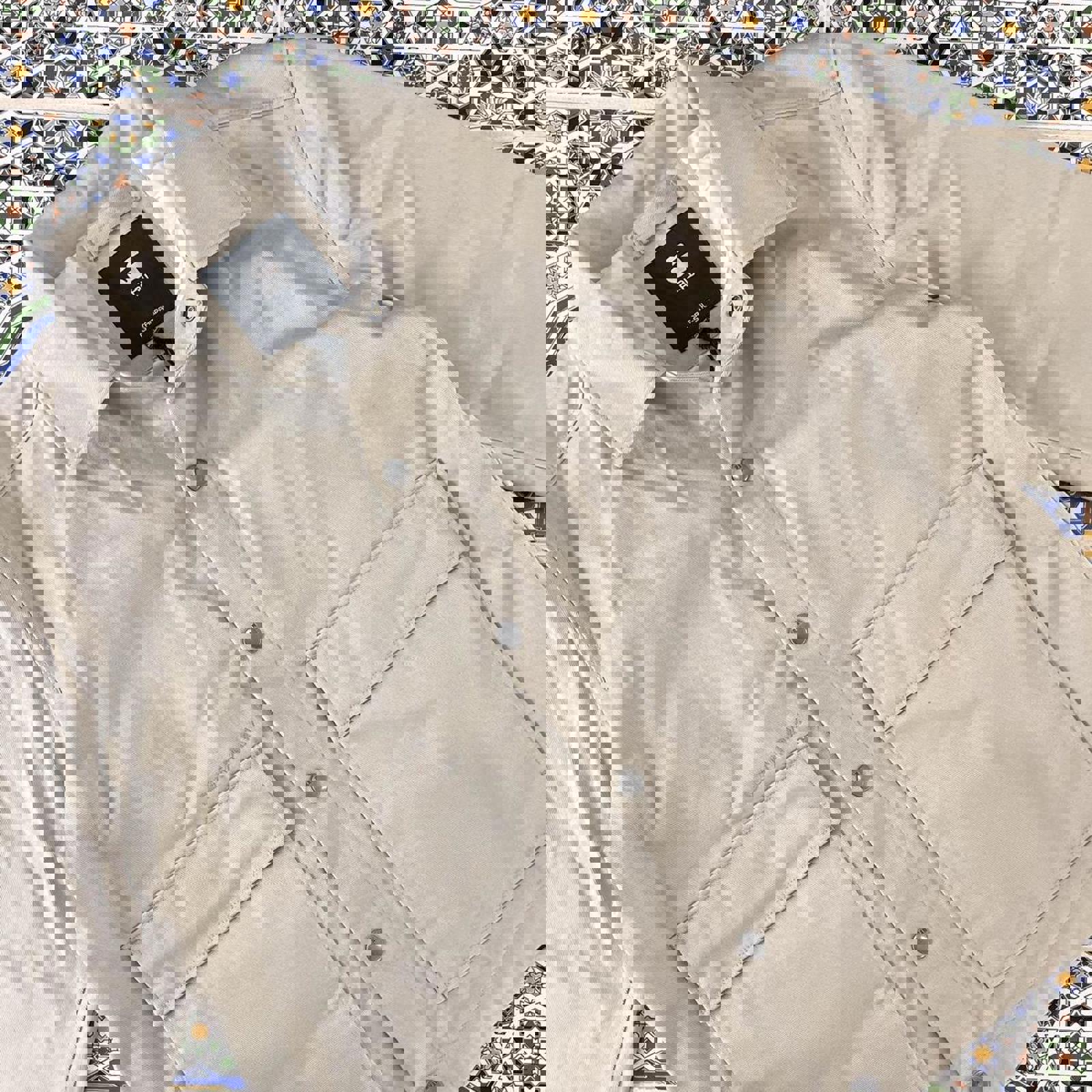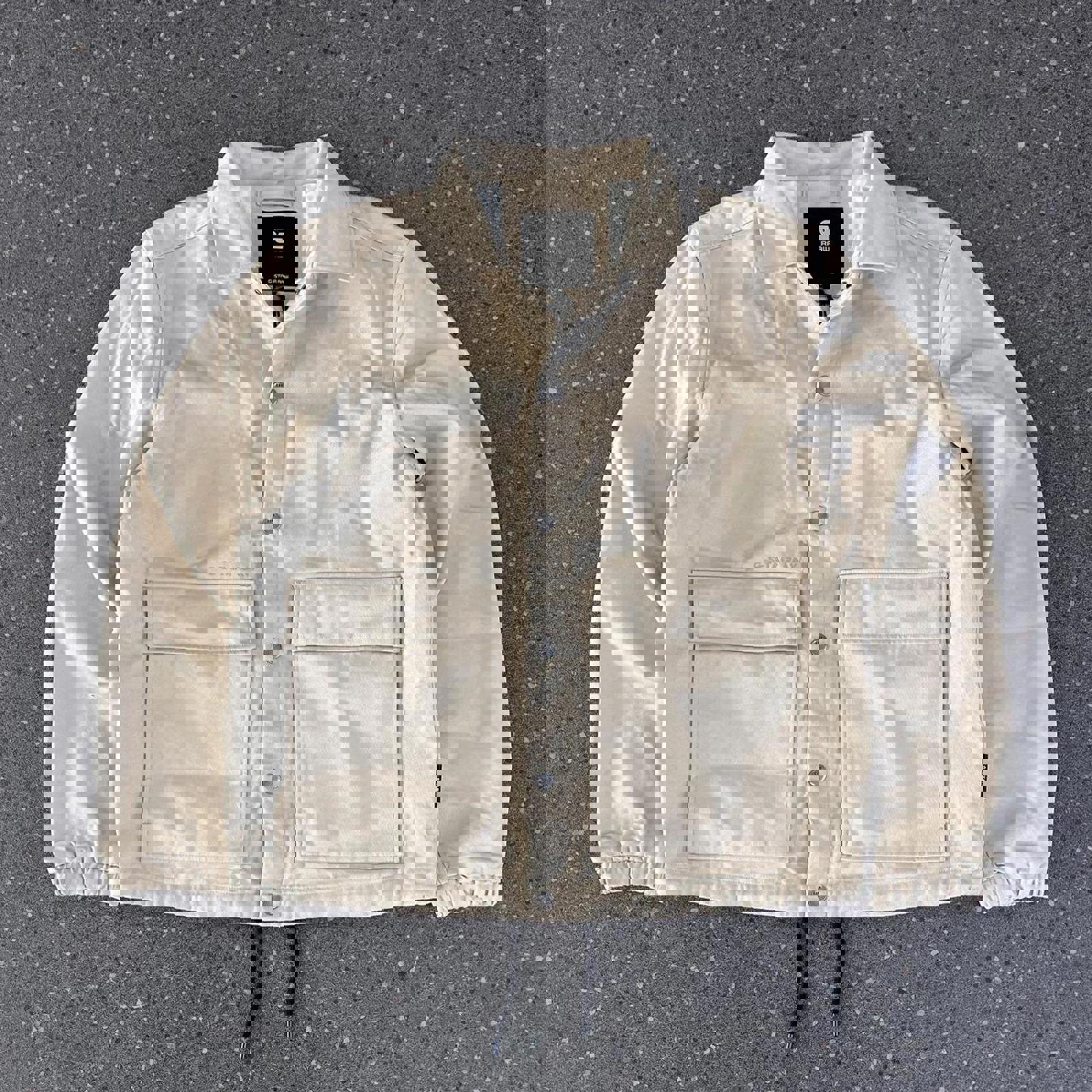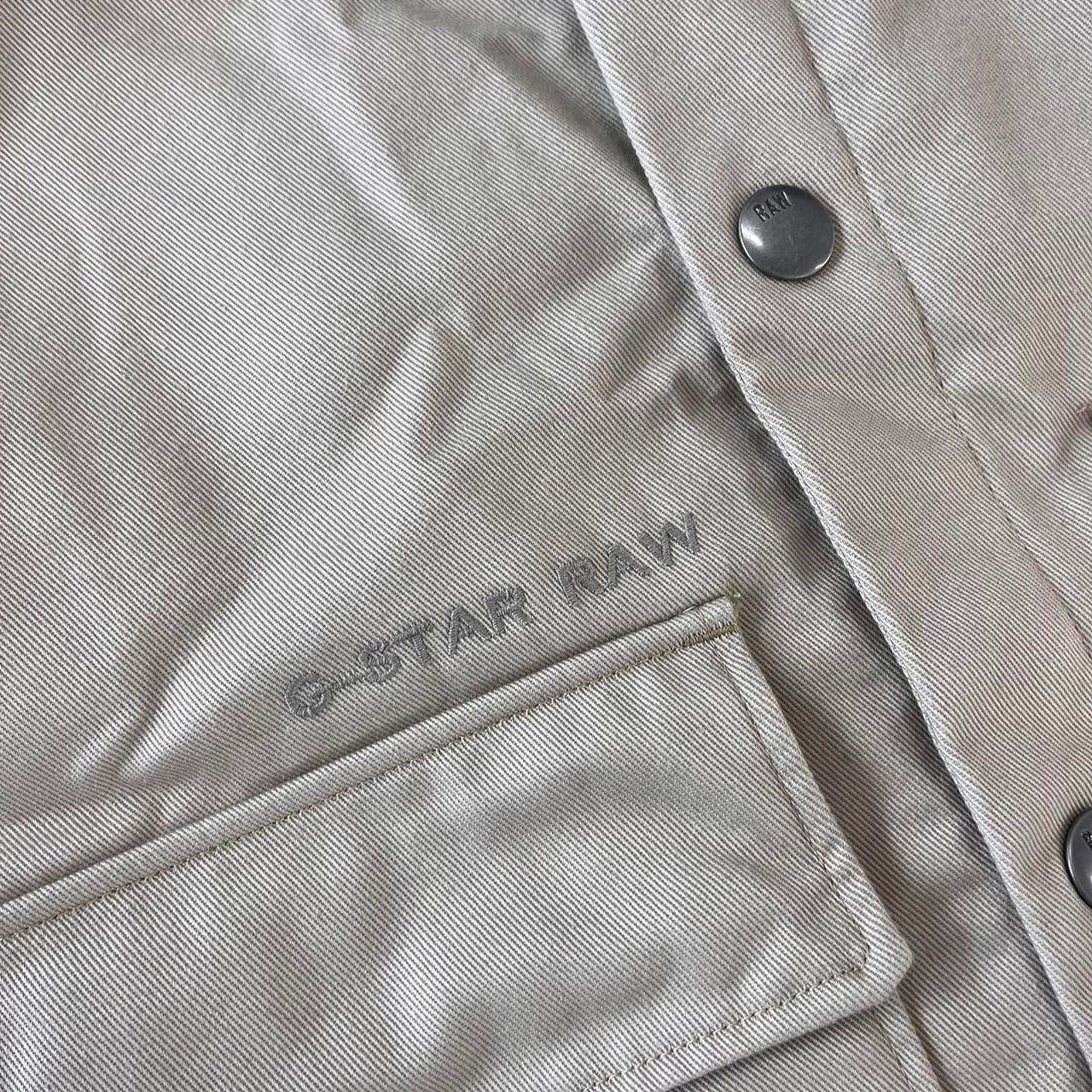 cream g star raw jacket with silver buttons, embroidered spell out, water repellent finish and a tab on the hip brand new with tags retailed at $289