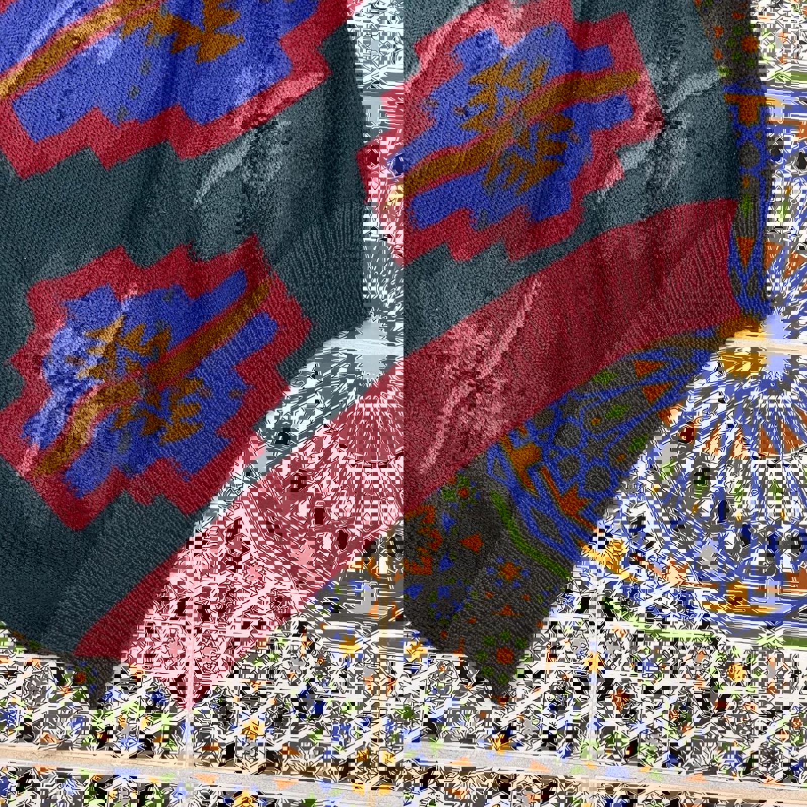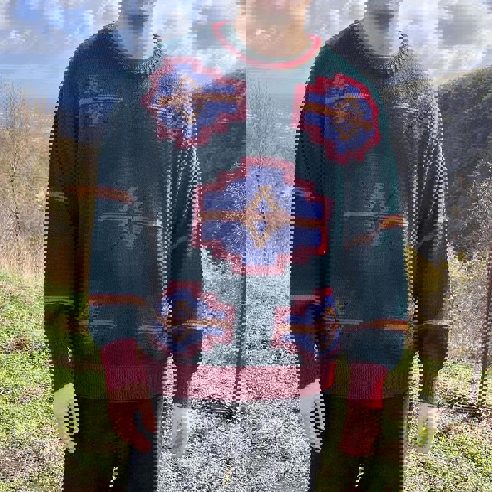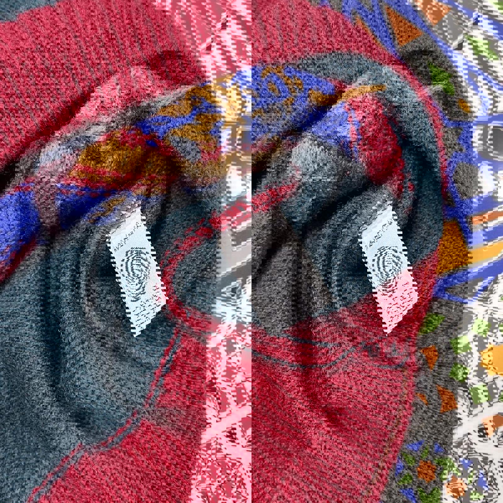 Purple, maroon, tan and green Aztec type print vintage gant woollen cardigan