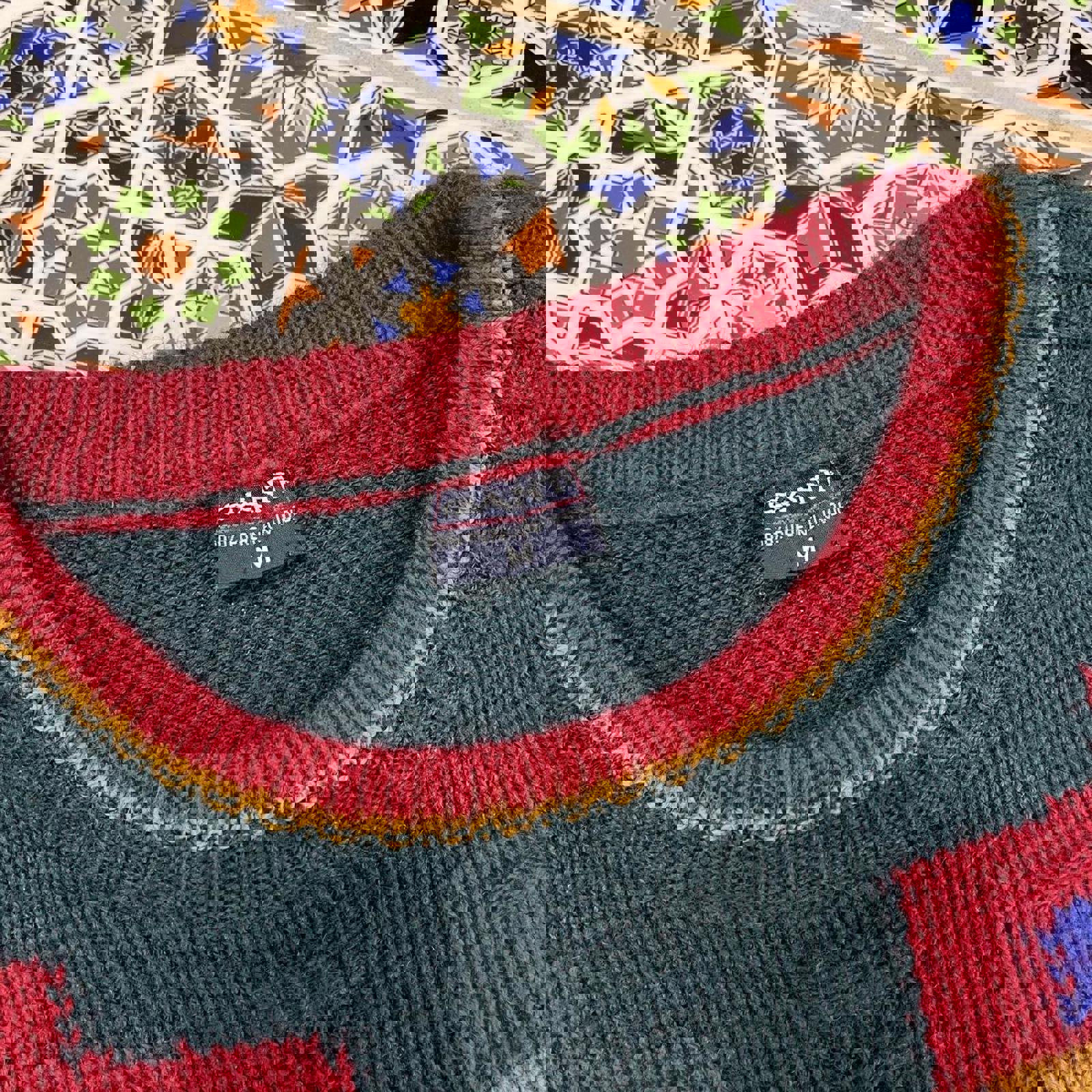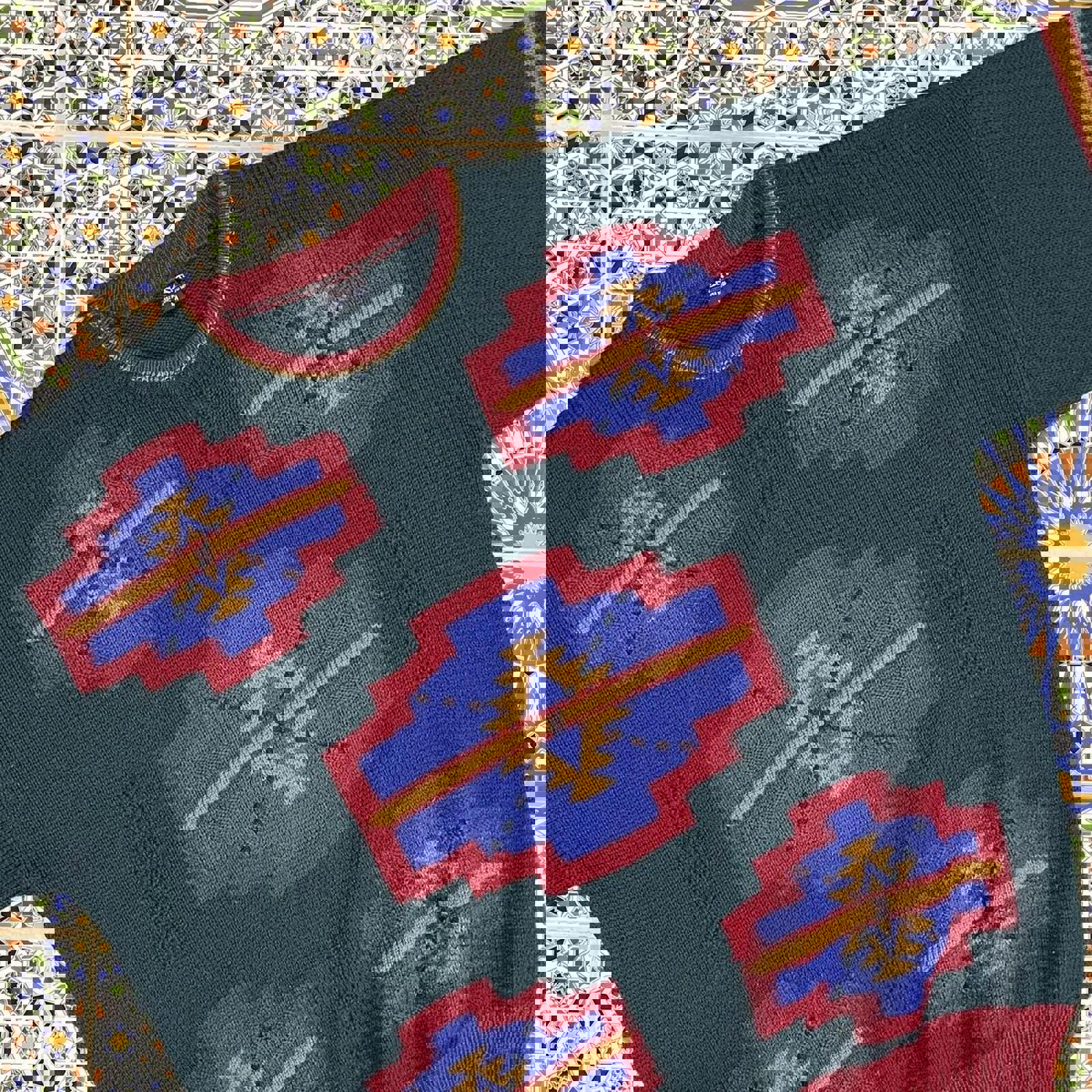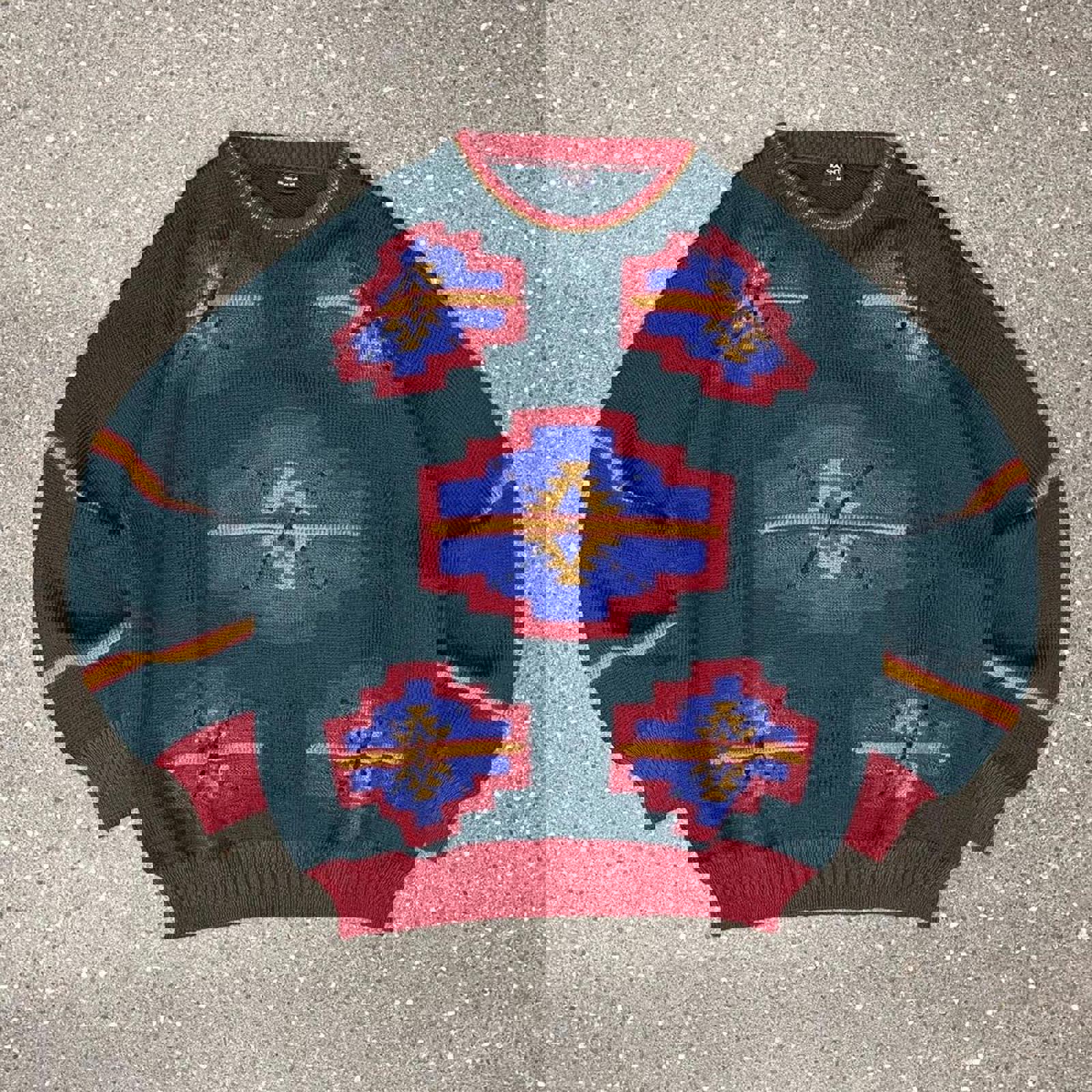 Purple, maroon, tan and green Aztec type print vintage gant woollen cardigan