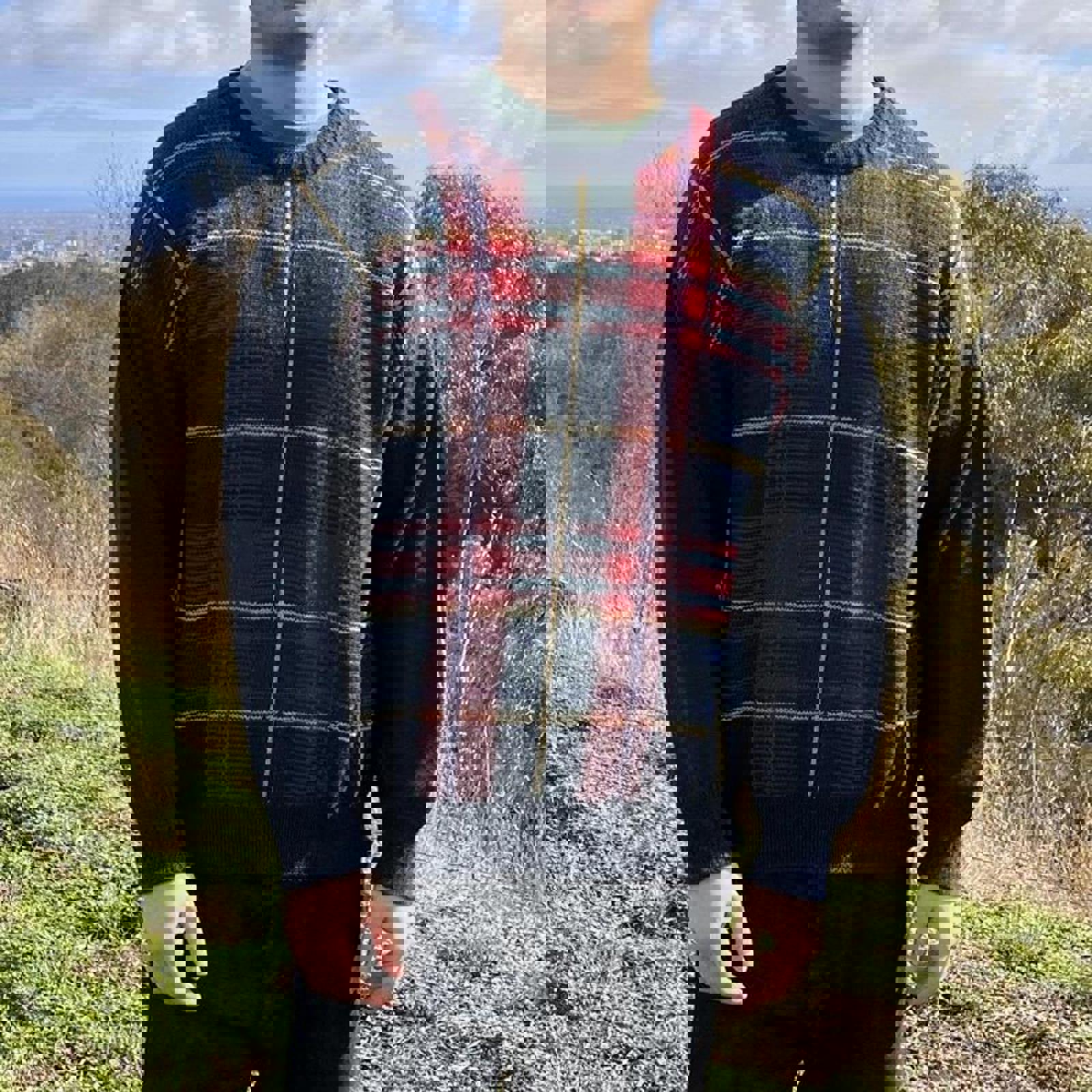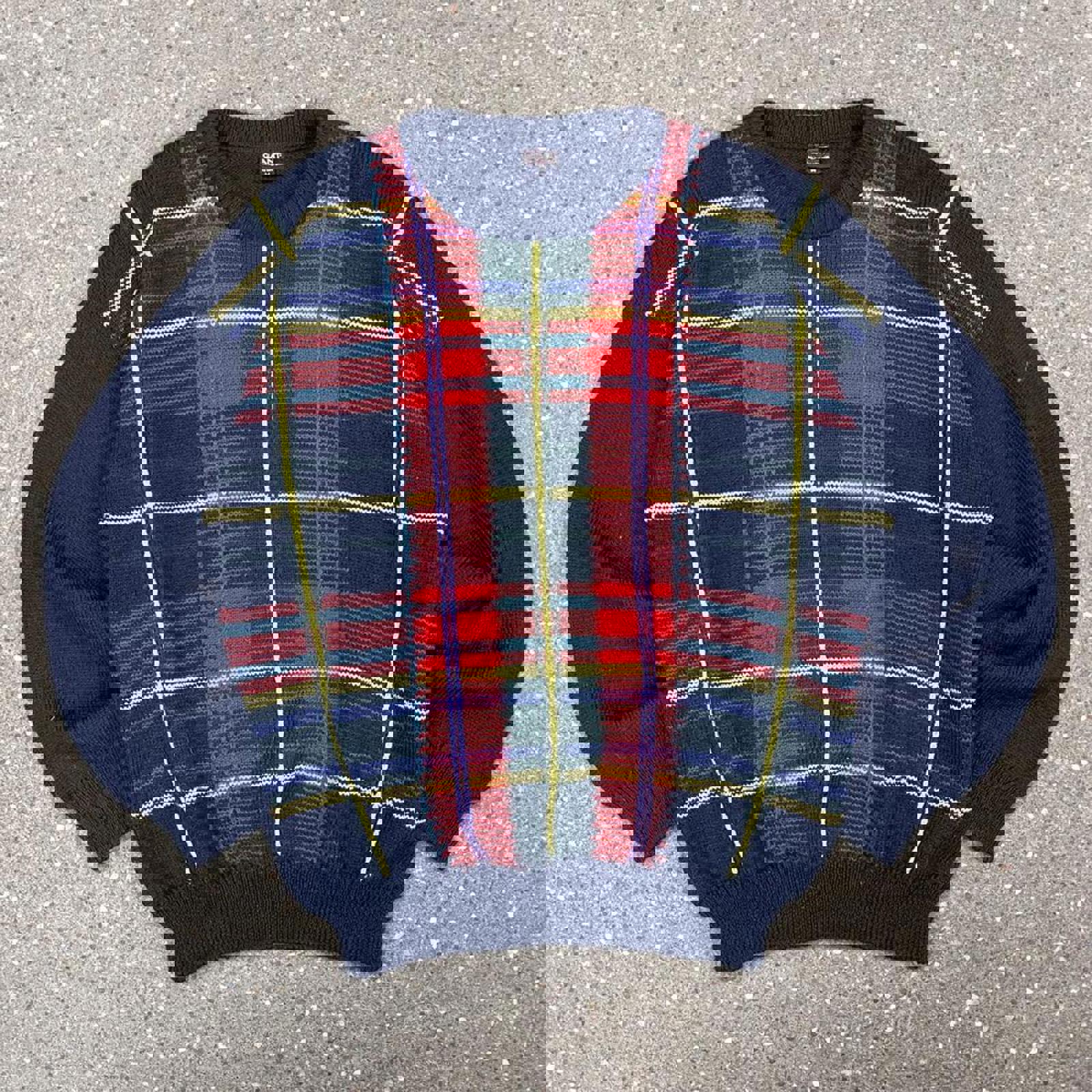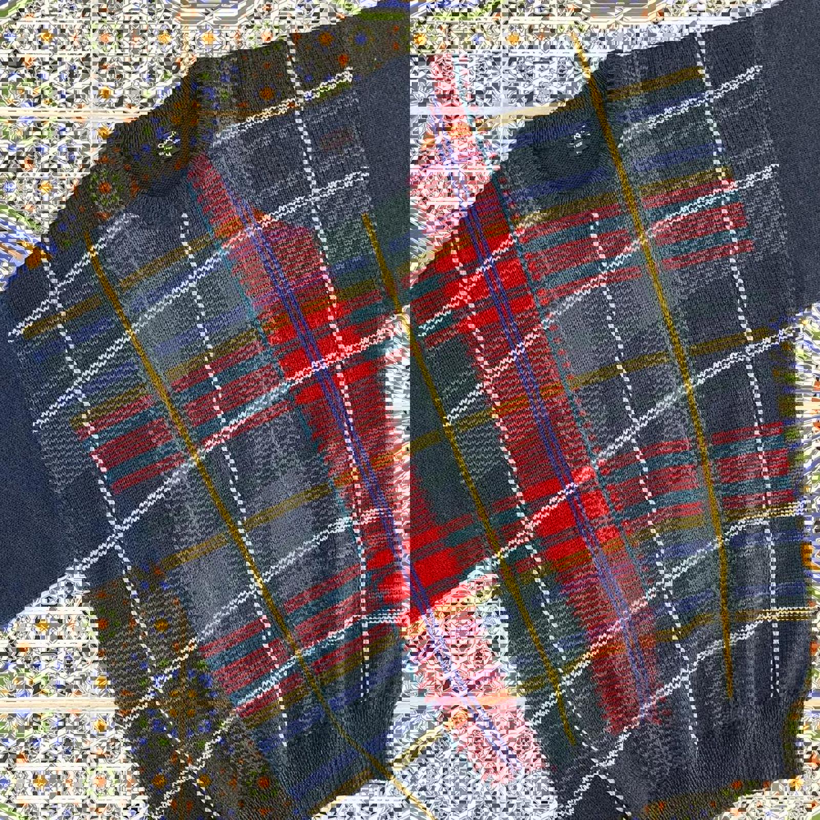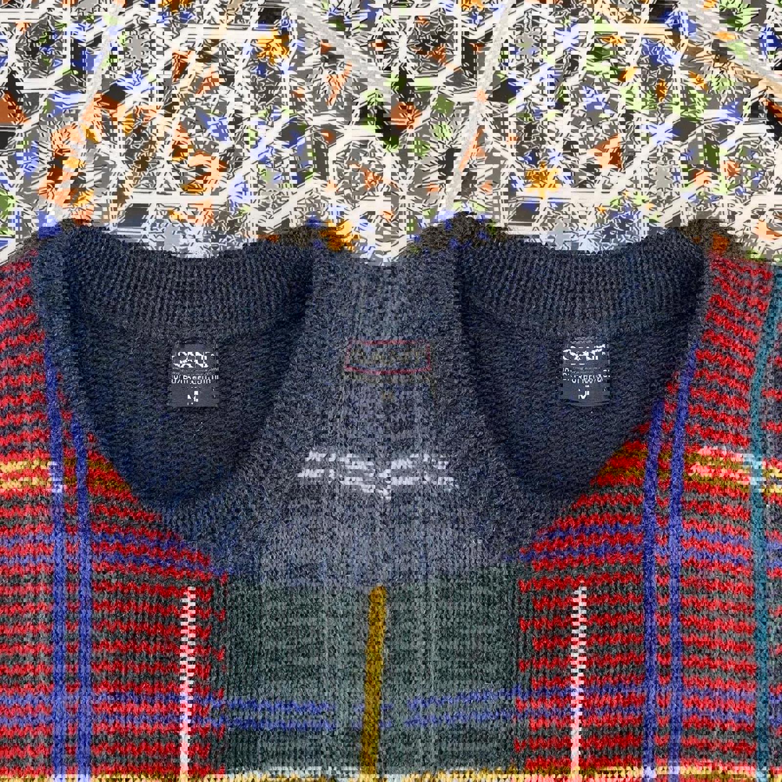 Navy, red, yellow and green checkered vintage gant woollen cardigan