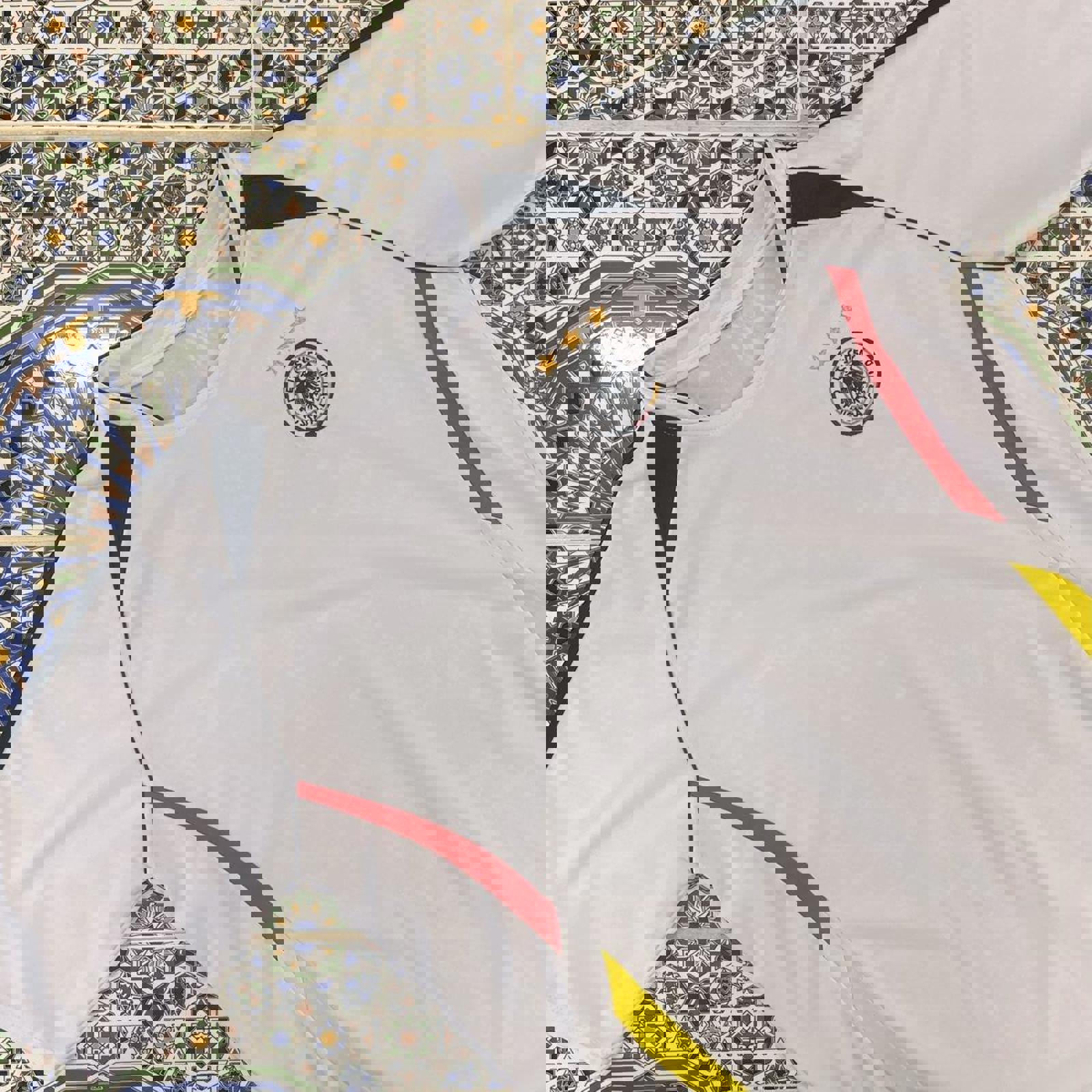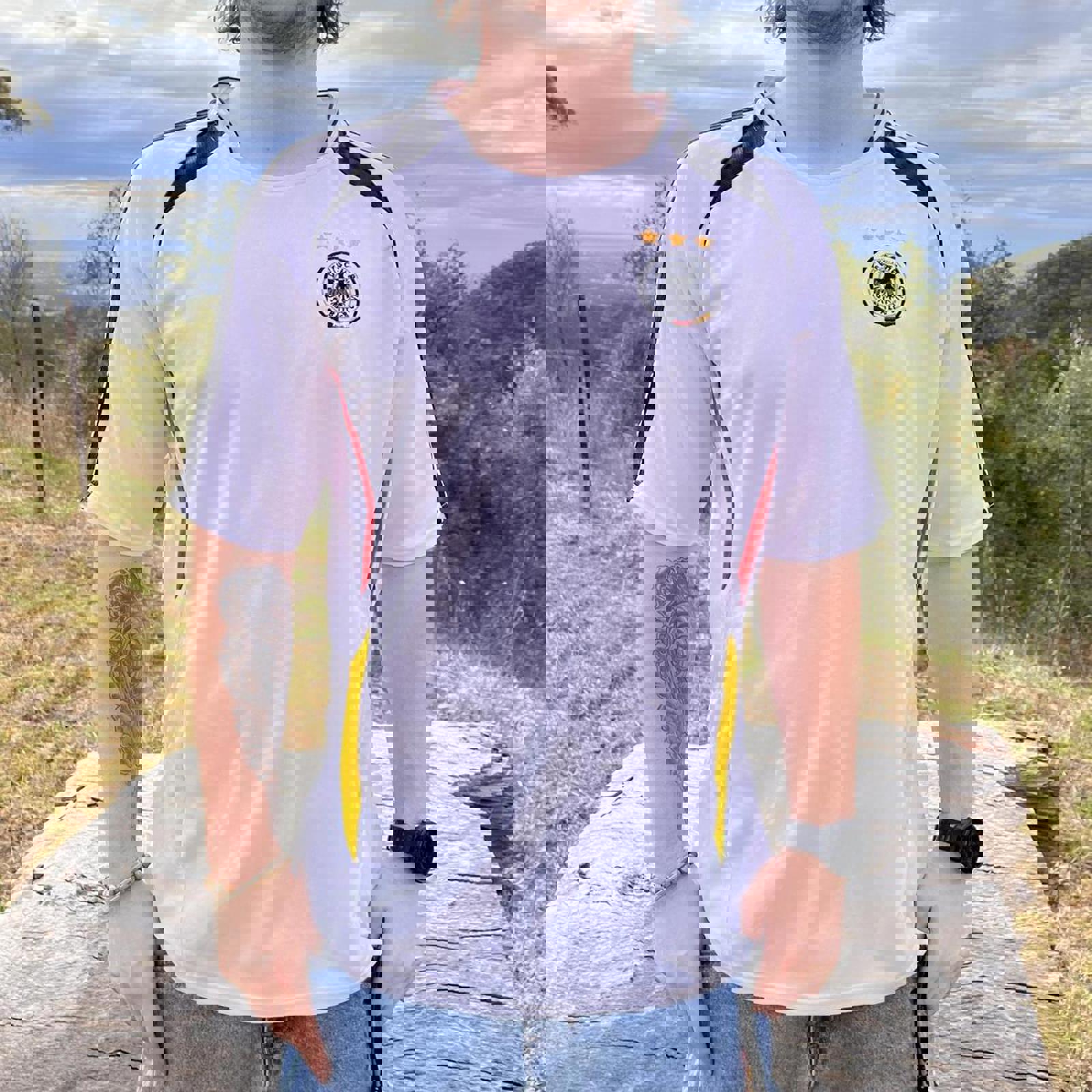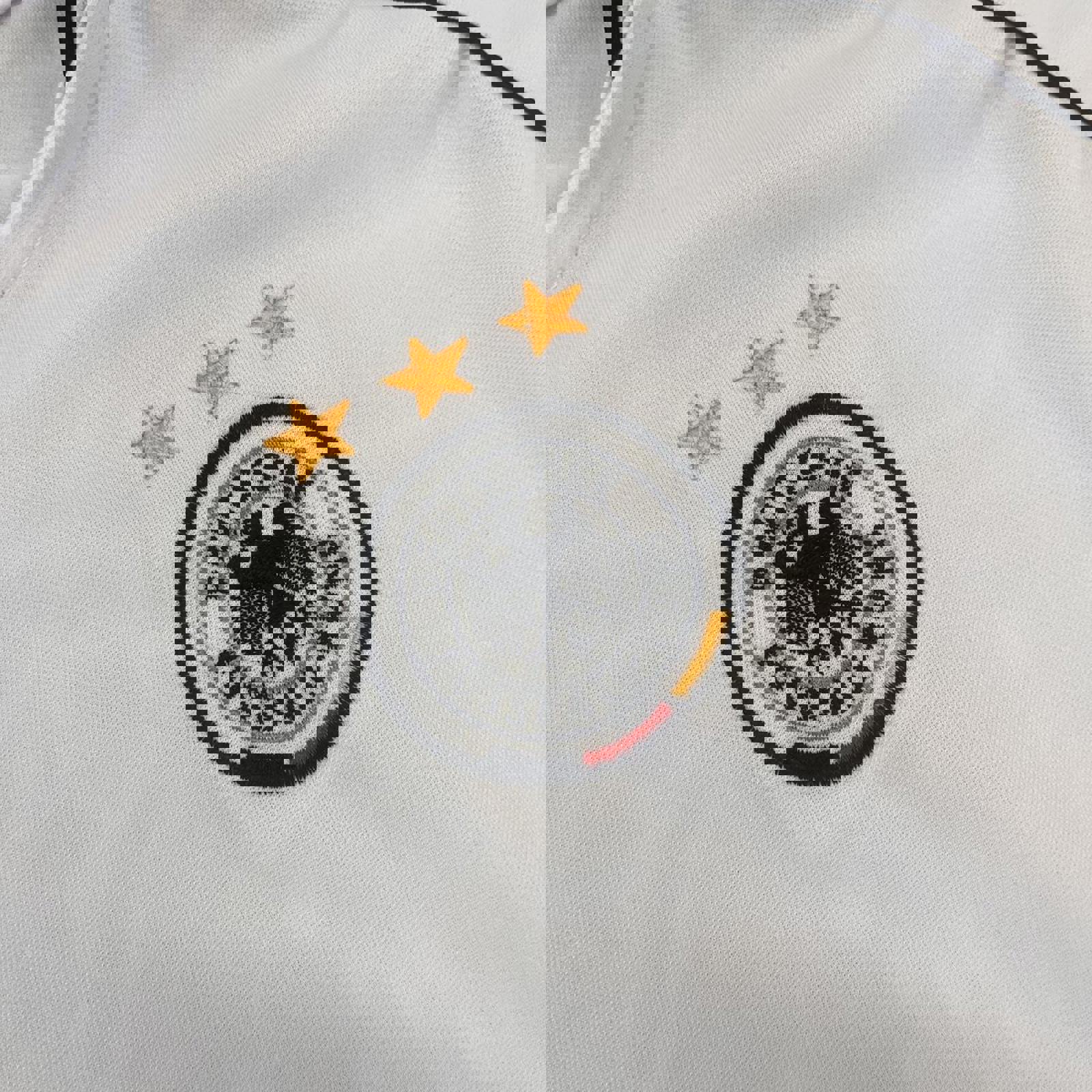 non offical White, black, red and yellow German football jersey with all embroidered logos