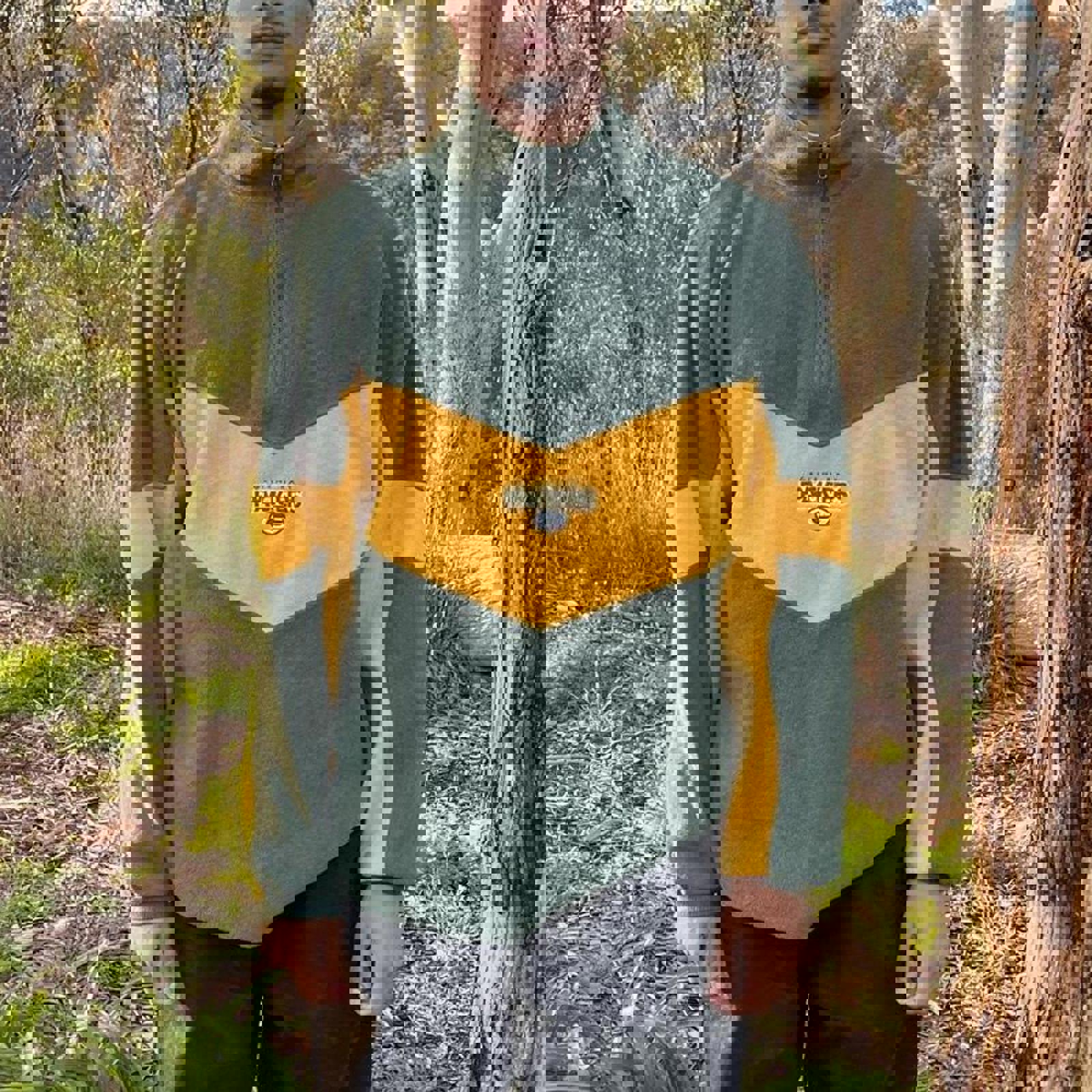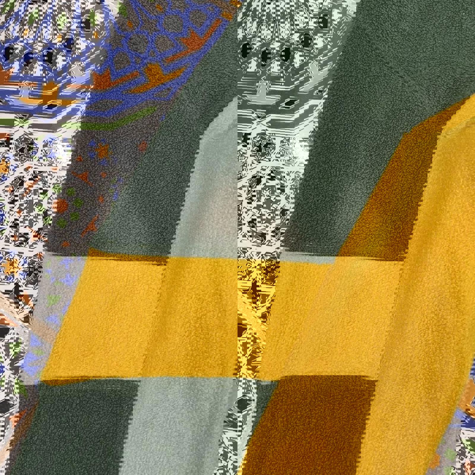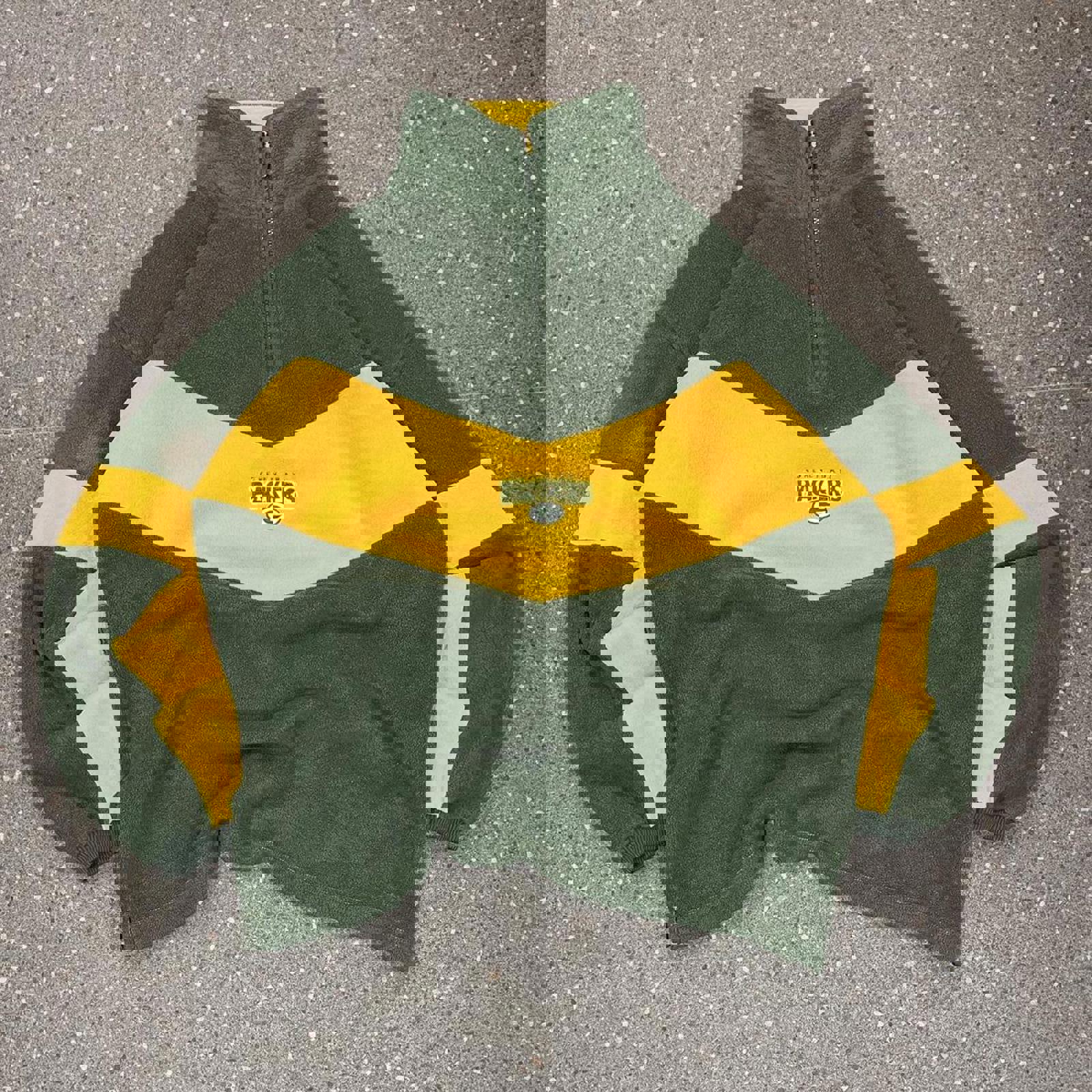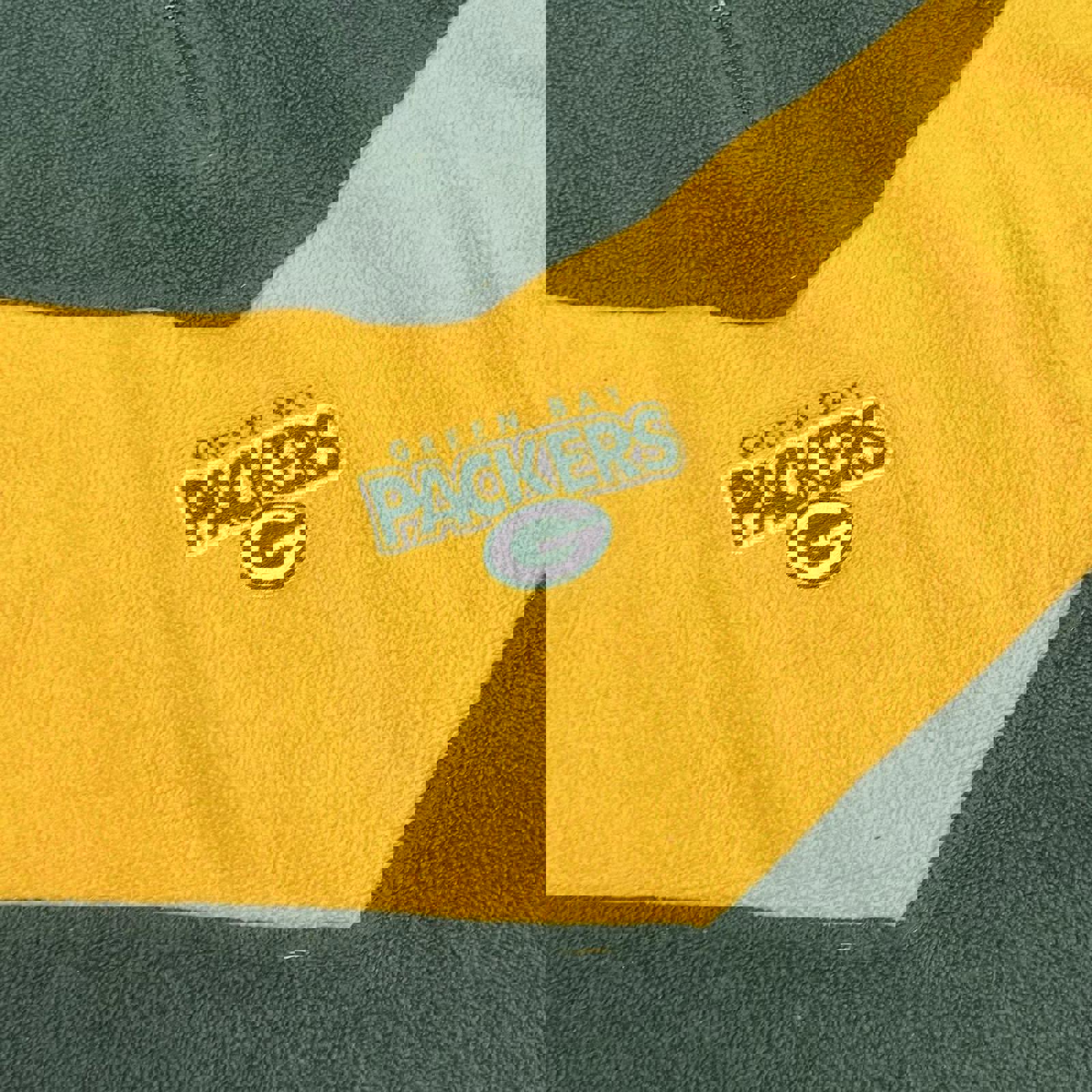 Green and yellow fleece the edge 1/4 zip jumper with a centred embroidered Green Bay packers logo on the chest