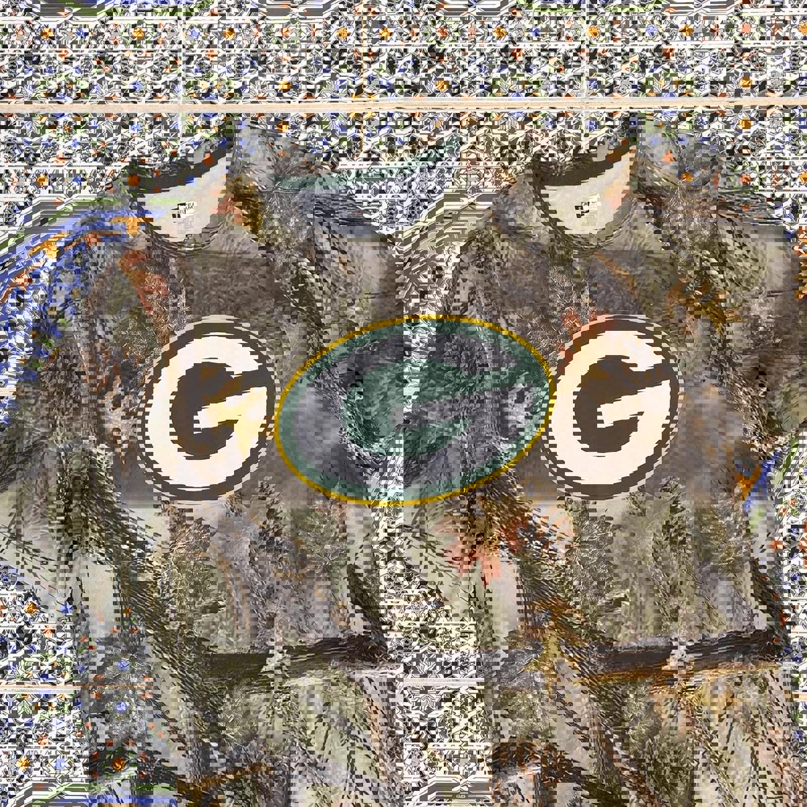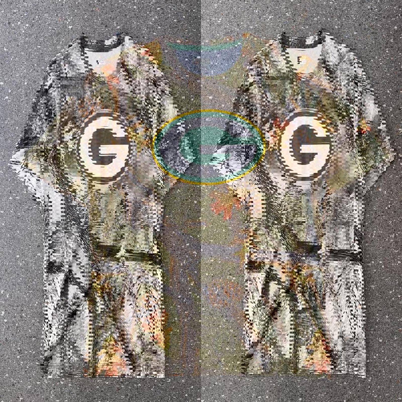 real tree camo nfl tshirt with a centred green bay packers logo on the front