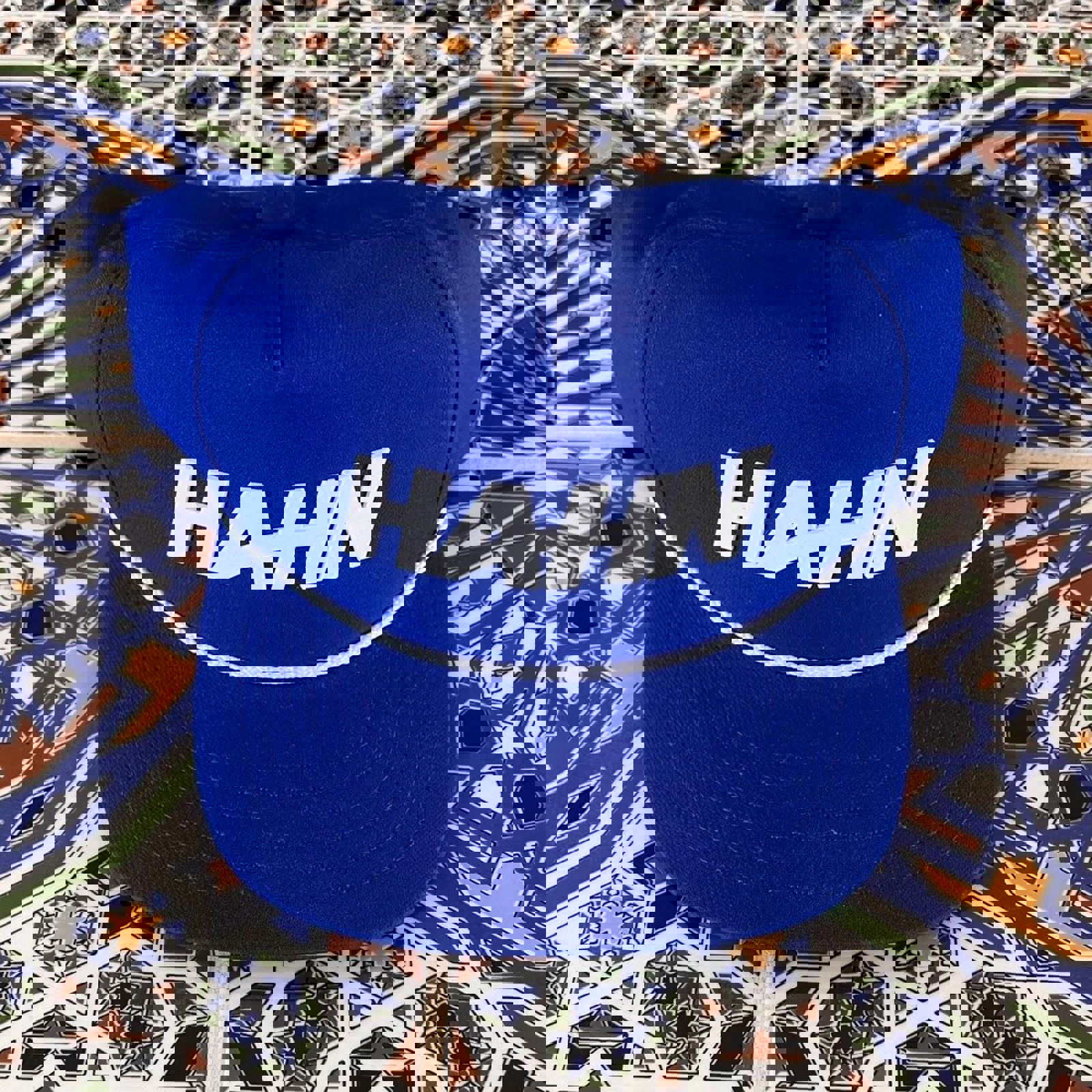Blue cap with a white Hahn logo on the front