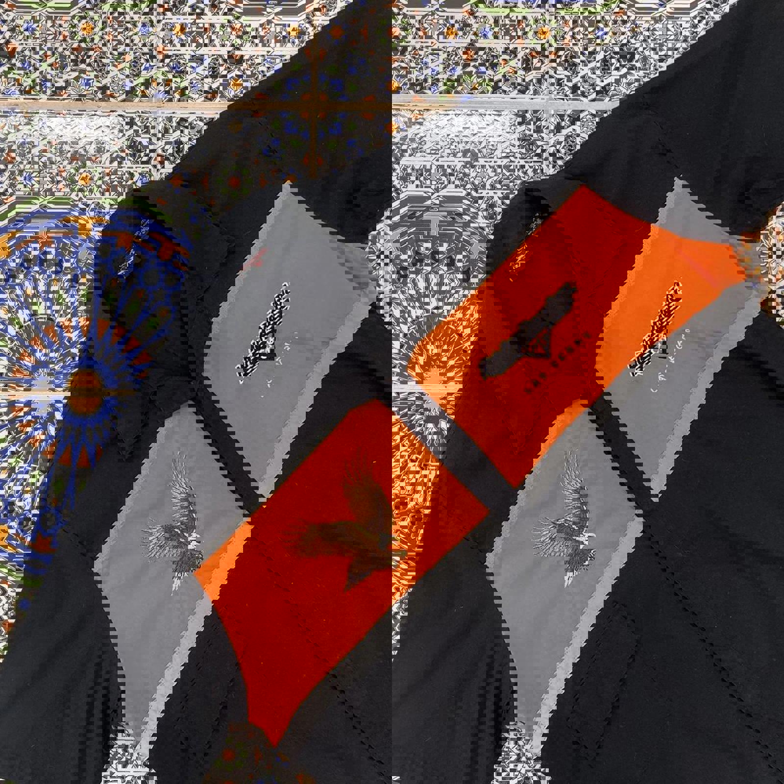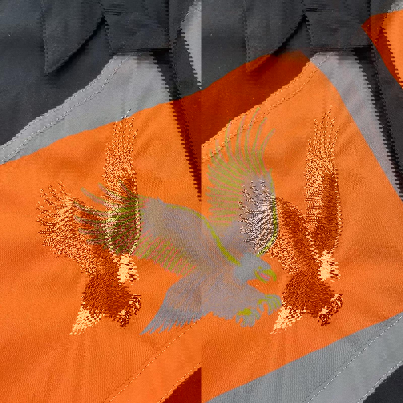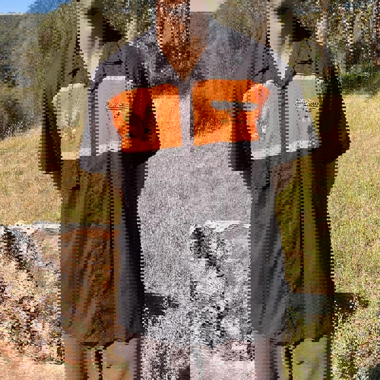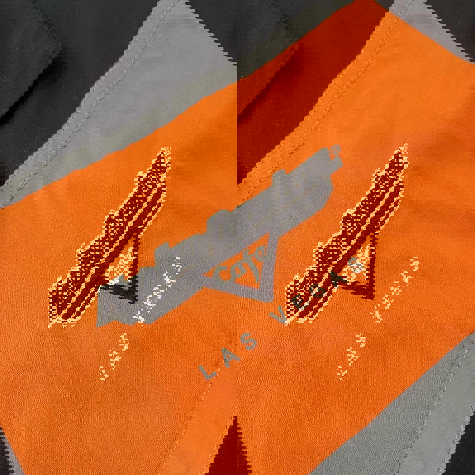 black and orange block coloured Harley Davidson las vegas cafe short sleeved button up shirt with an embroidery on the chest and back