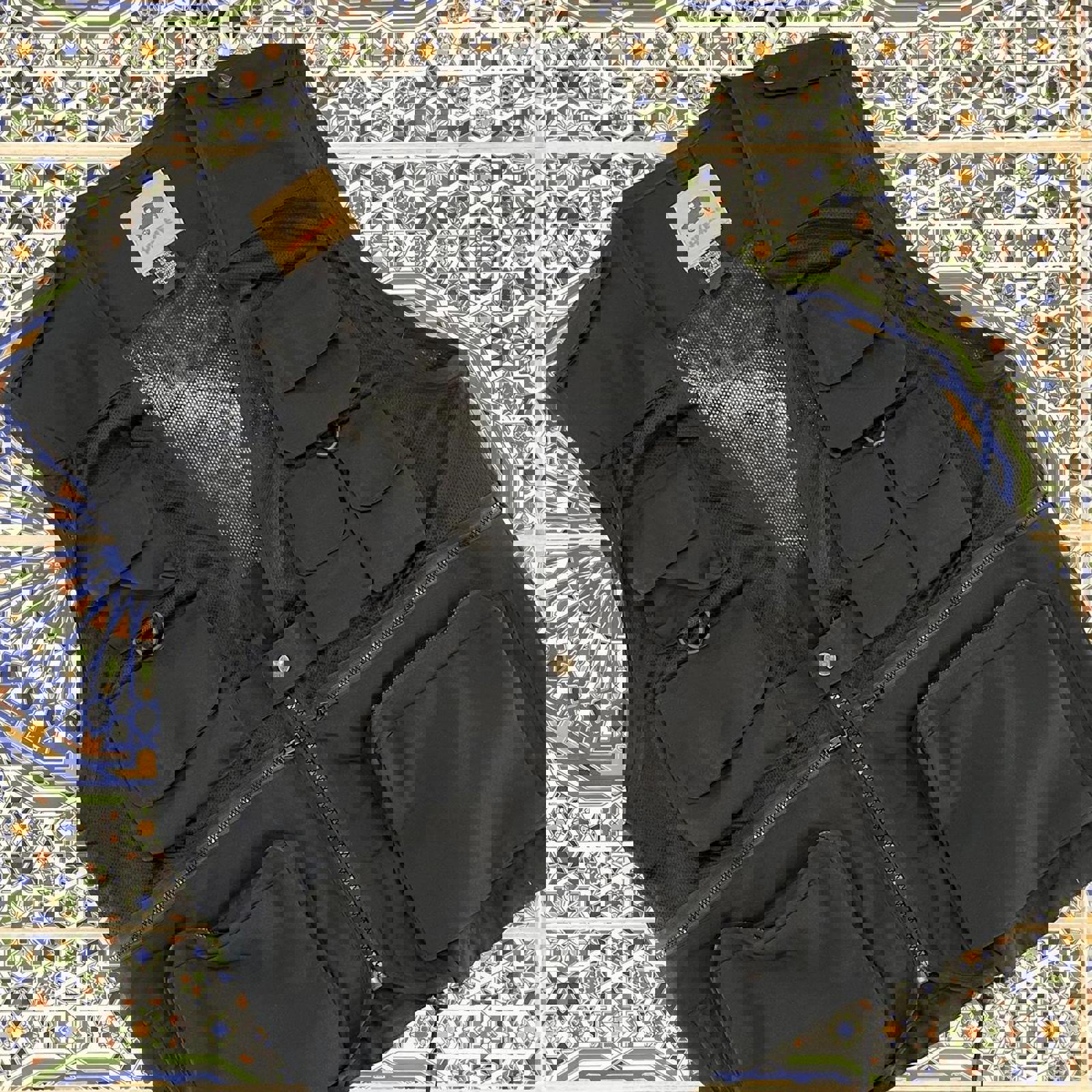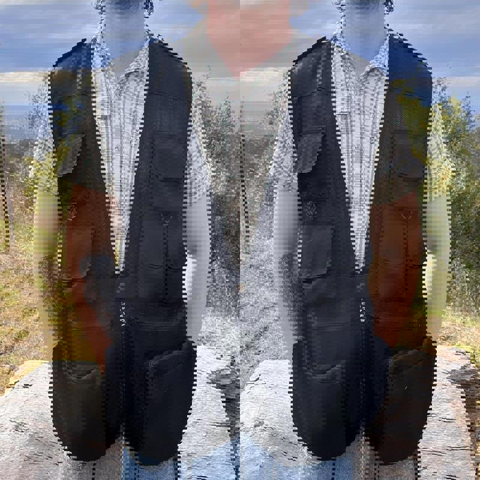 black humvee utility vest with pockets on the front and back and detailed buttons