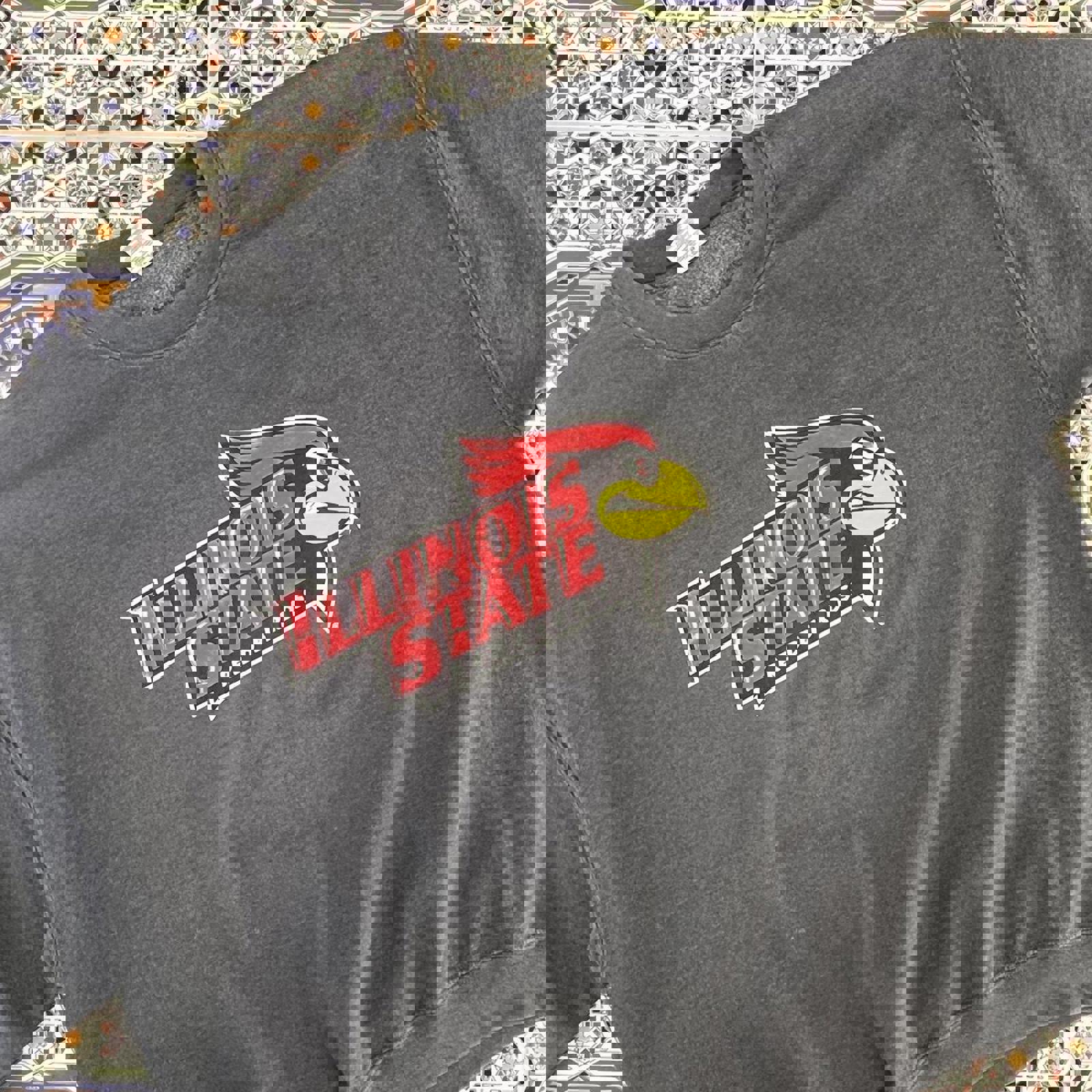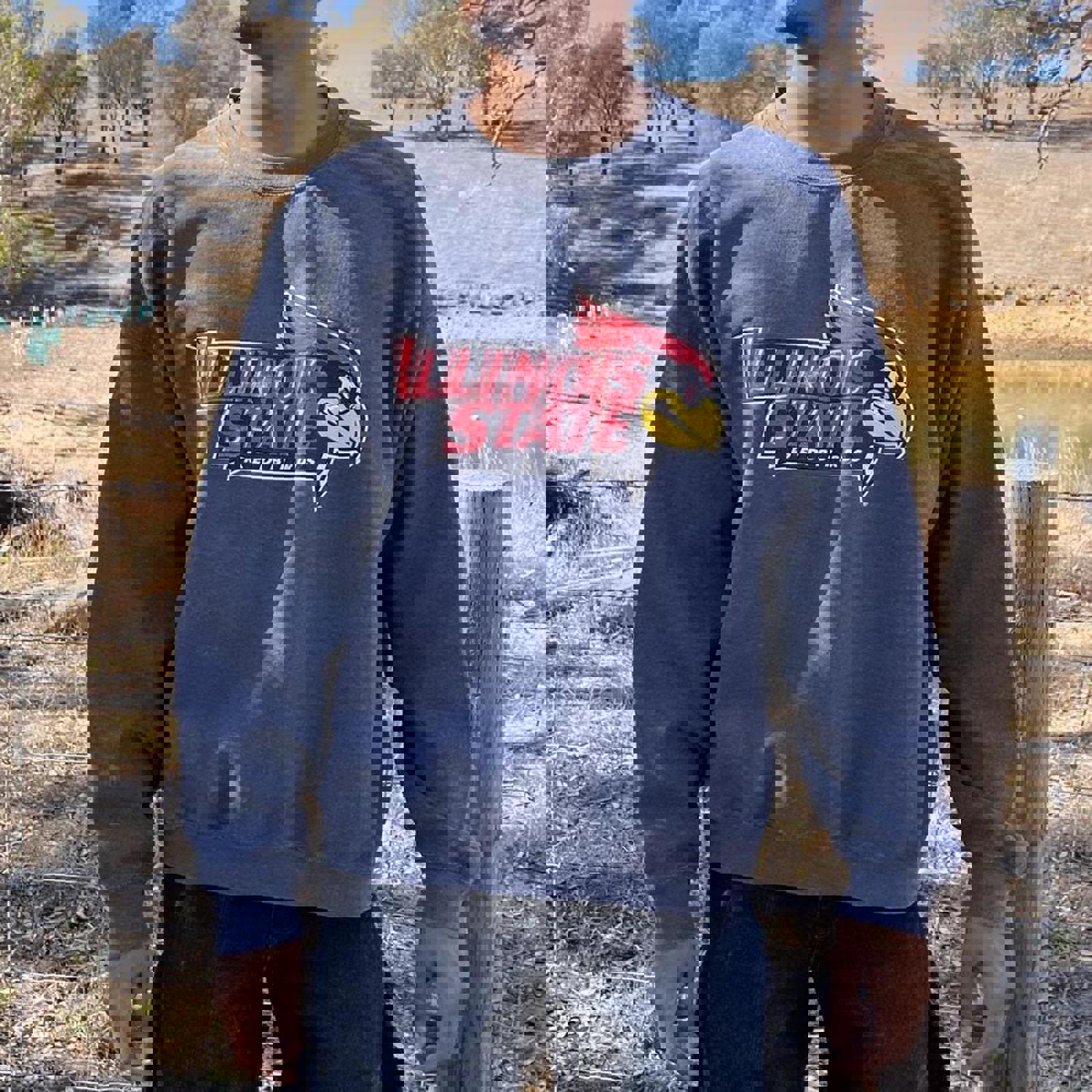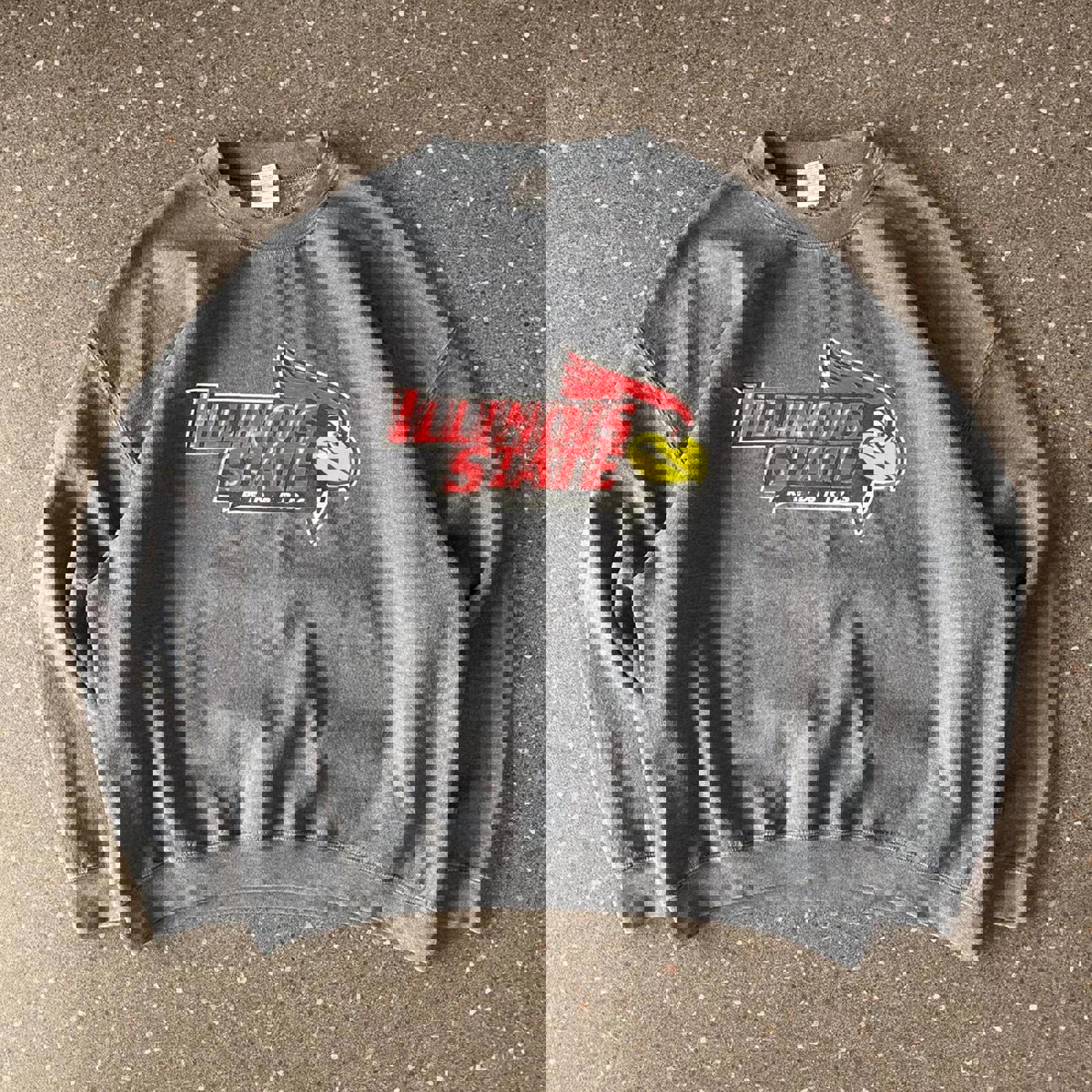 grey gildan jumper with a screen printed illinois state redbirds graphic on the front