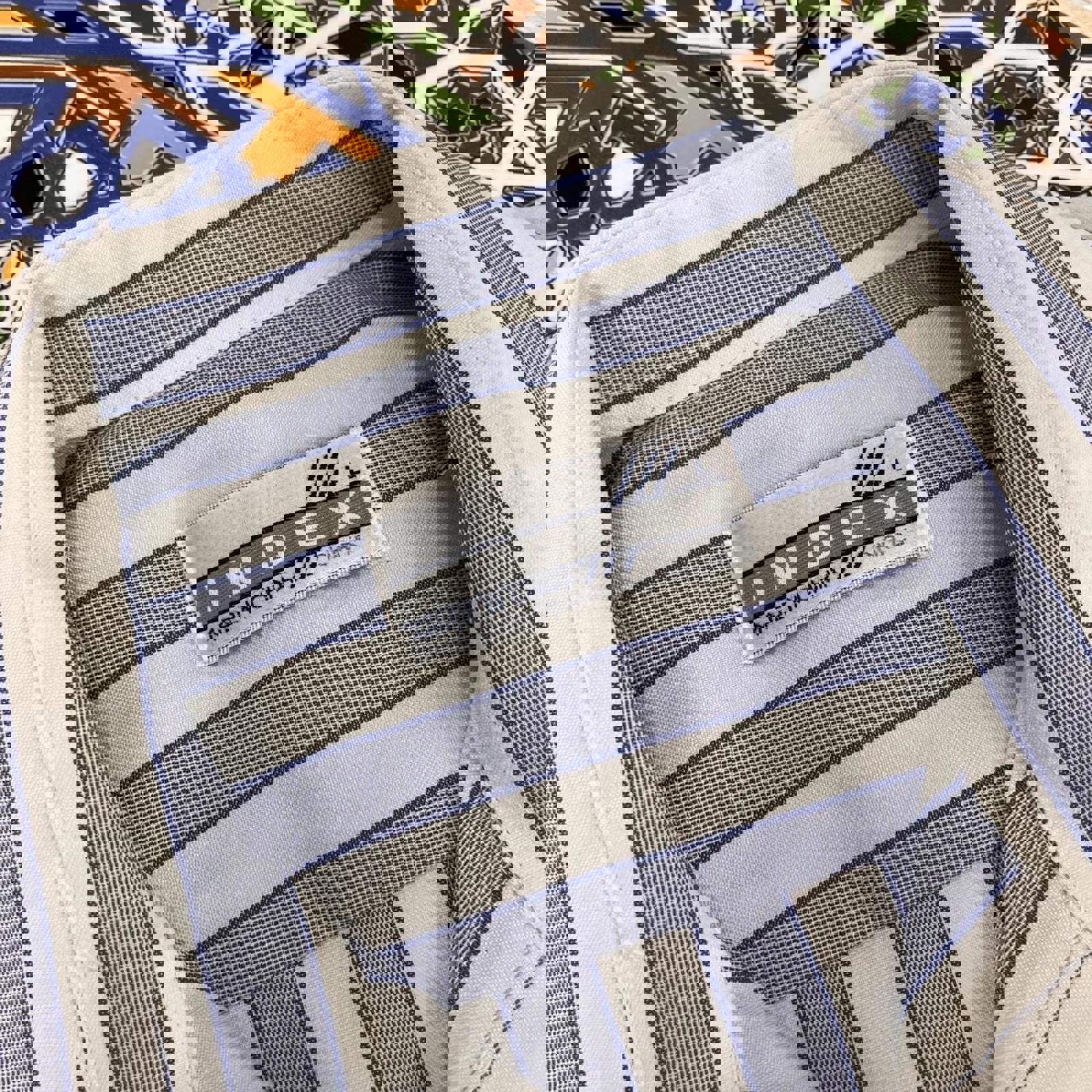 two tone blue and white index short sleeved button up shirt with a singular chest pocket