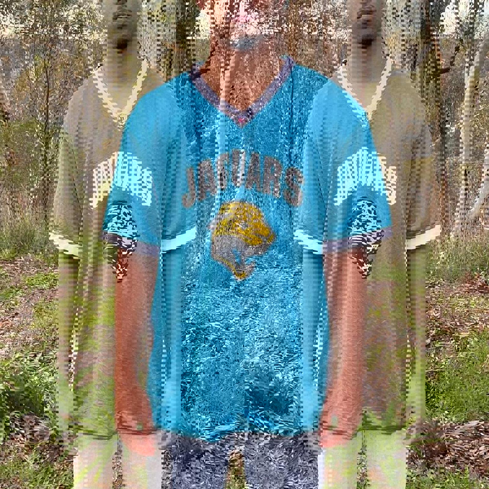 Blue and grey Jacksonville jaguars reversible tag football jersey with graphics all over