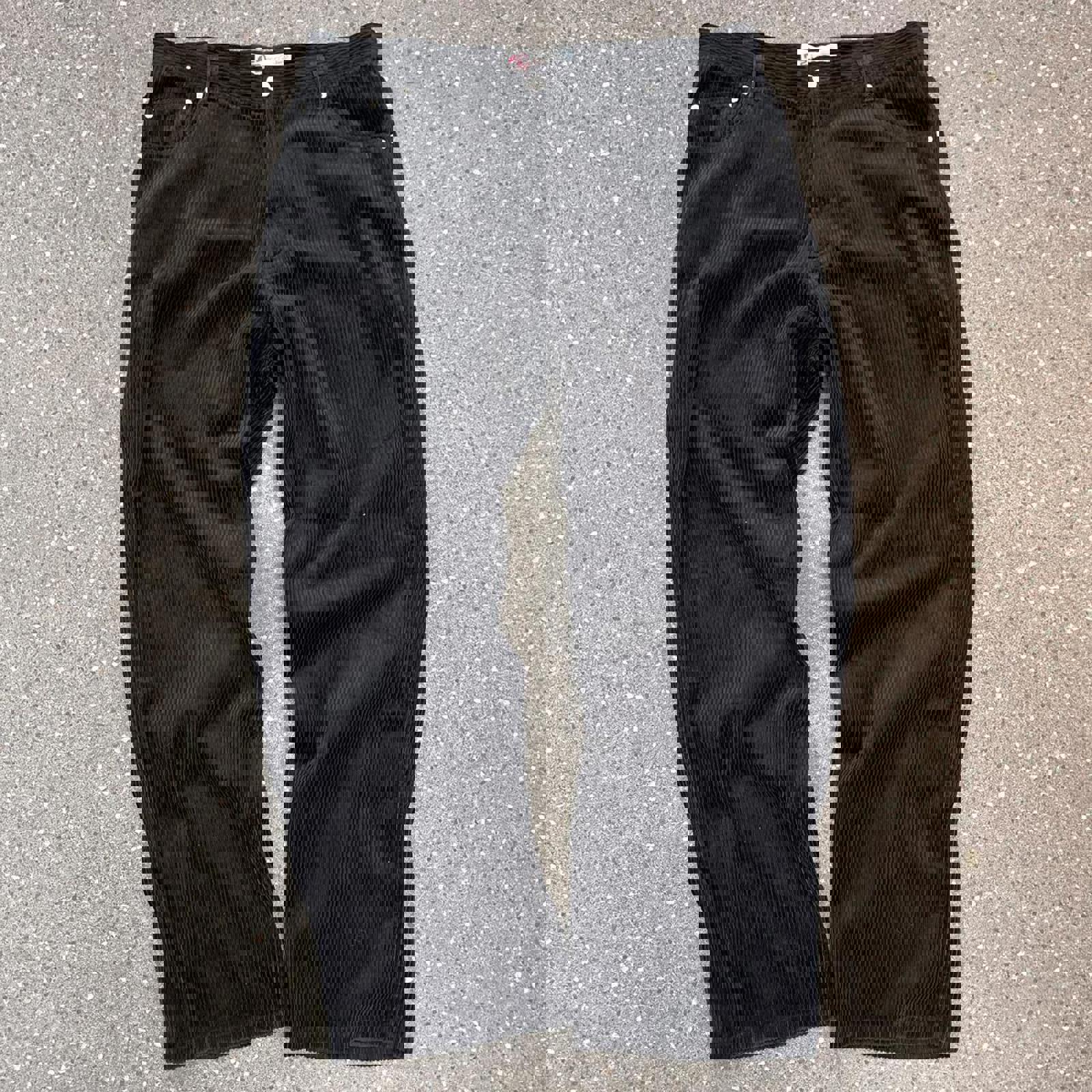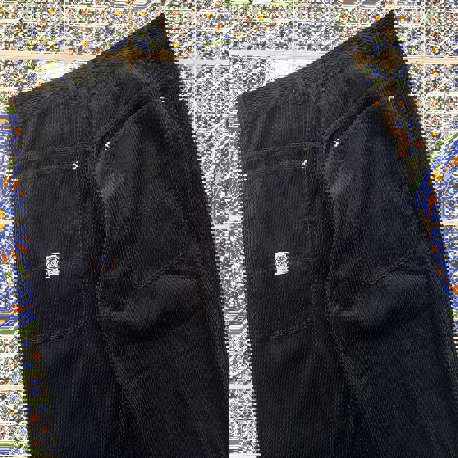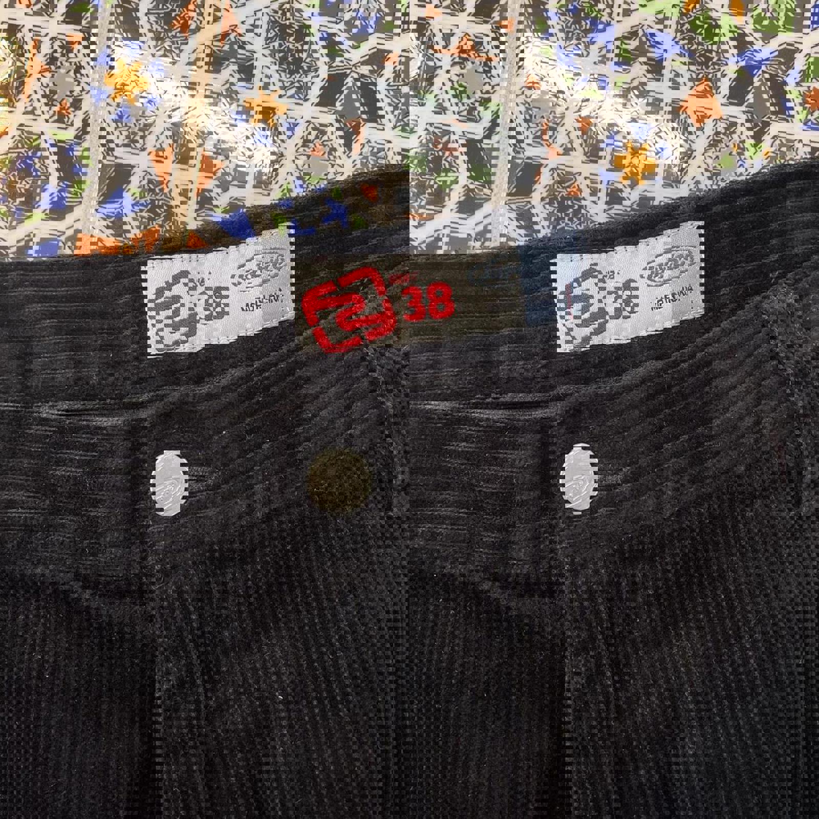 black vintage jay jays corduroy trousers with a red and blue patch on the back pocket