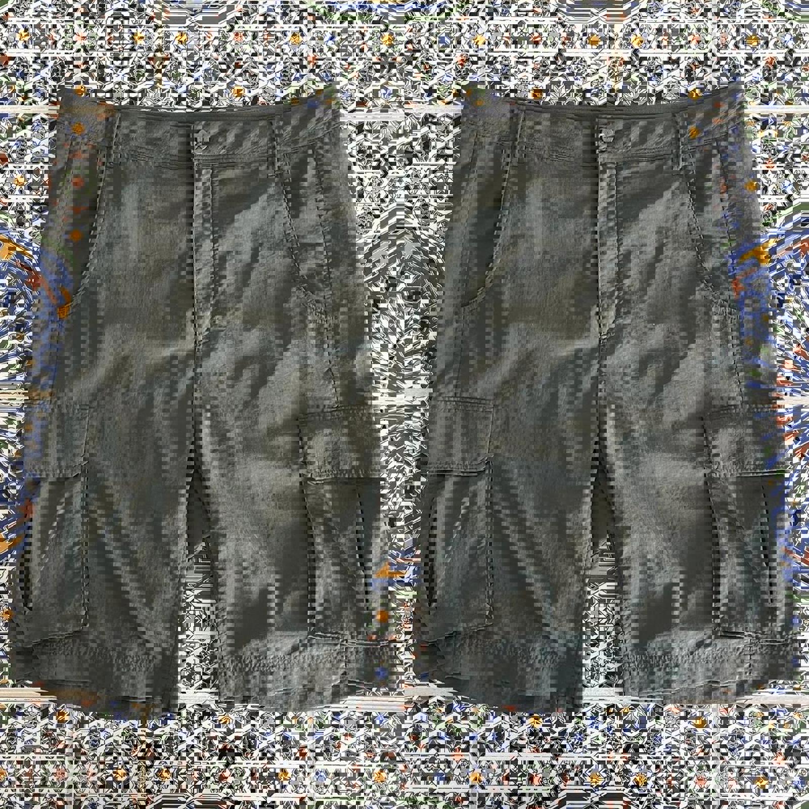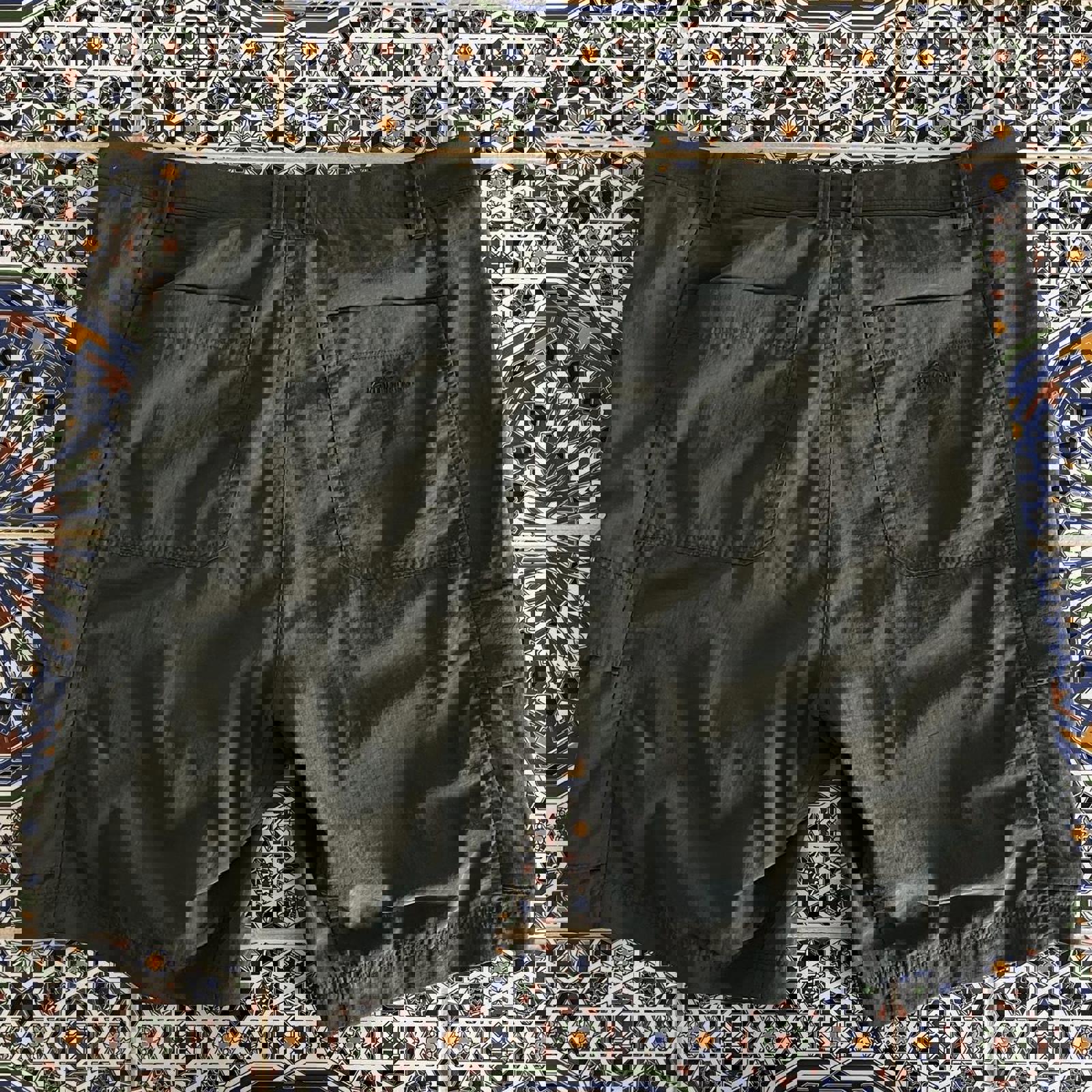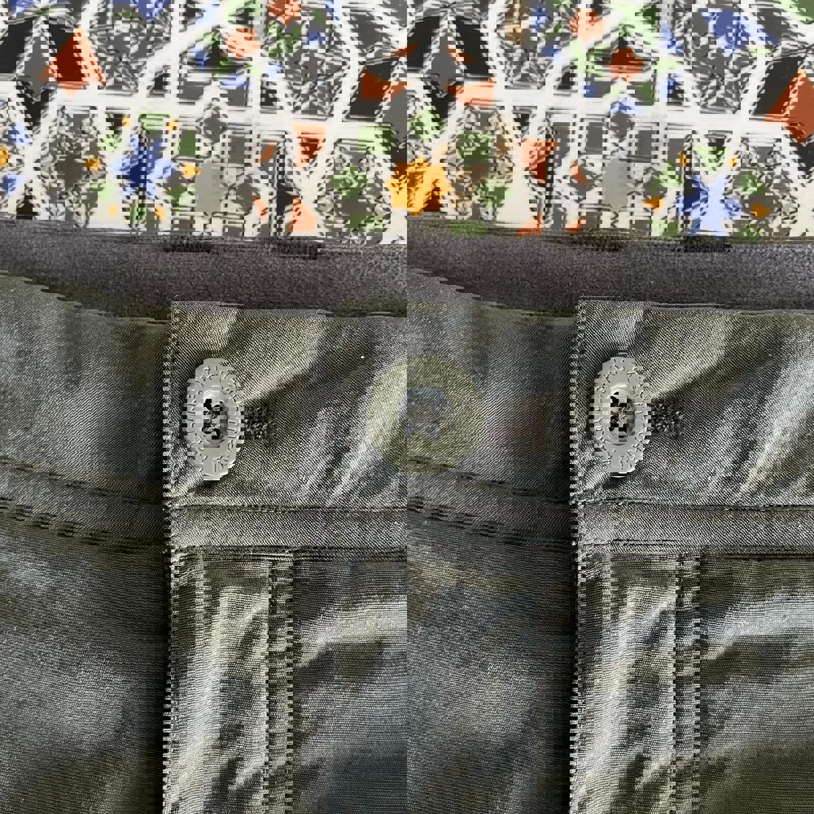 Dark green Kathmandu cargo shorts with detailed button and embroidered logo on back pocket