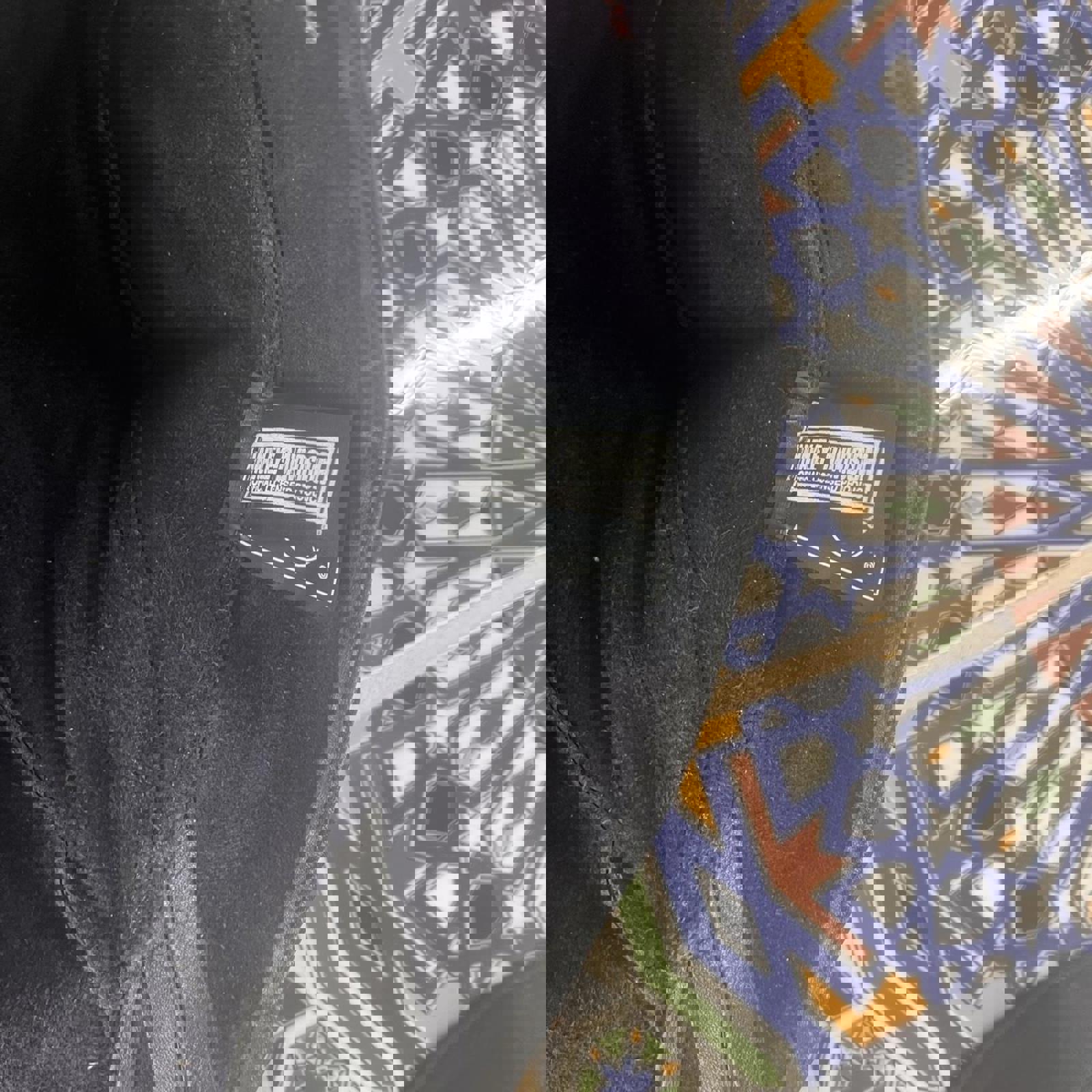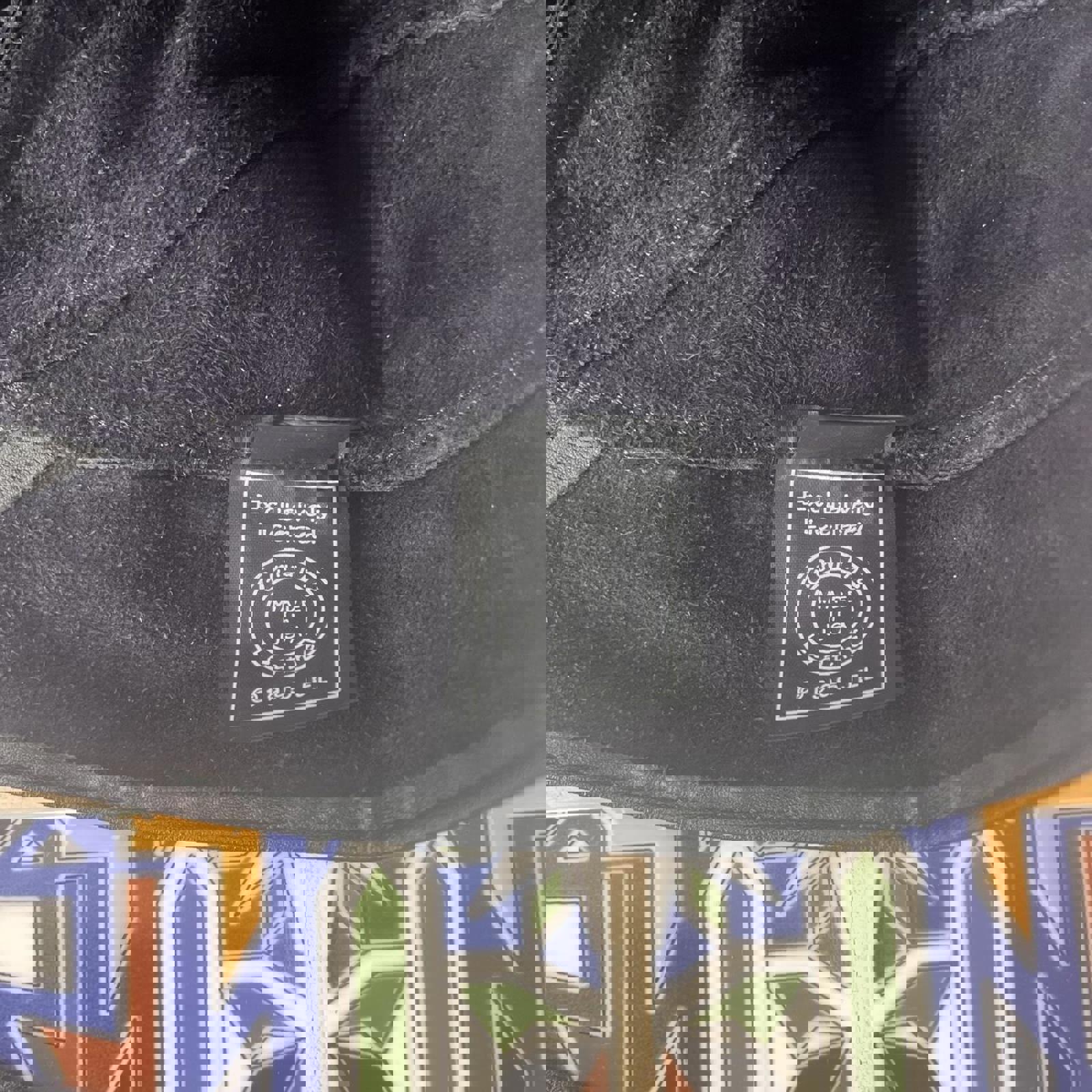 1995 Black leather durag bandana cap with an embroidered orange Harley-Davidson on the front