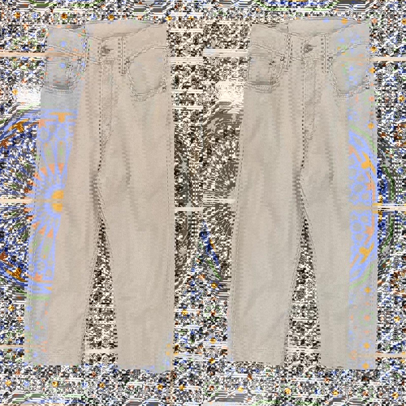 beige levis shorts with a white tab on the back pocket and a black patch on the back hip