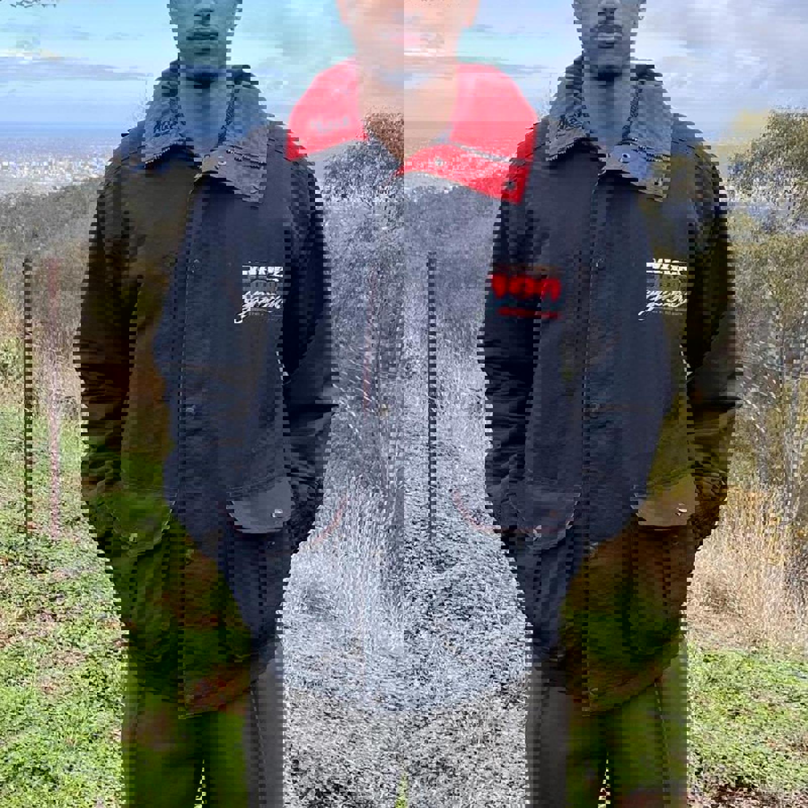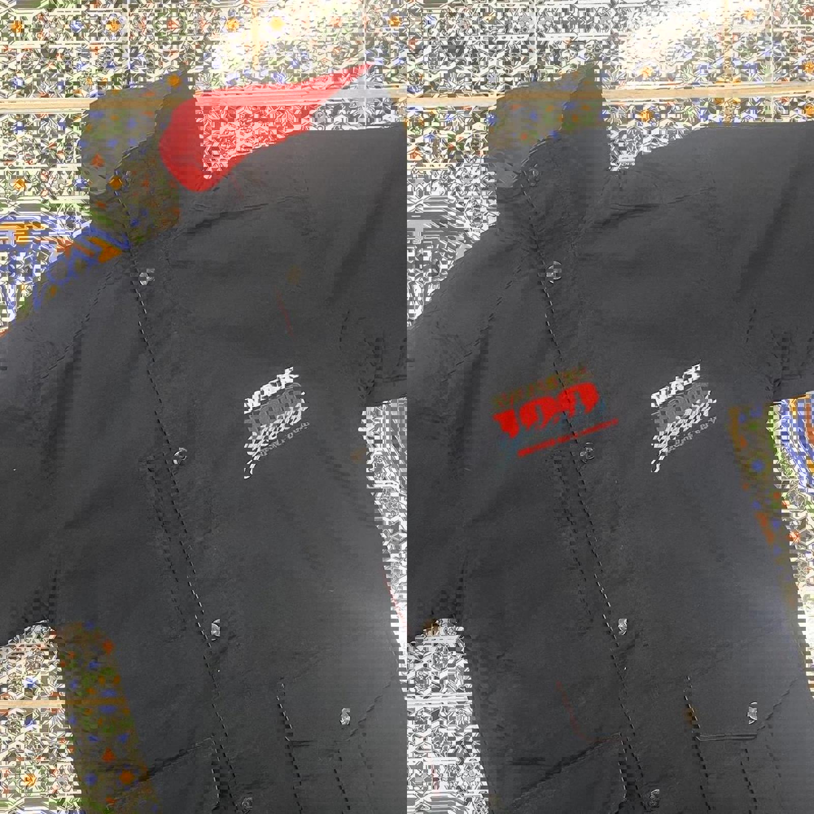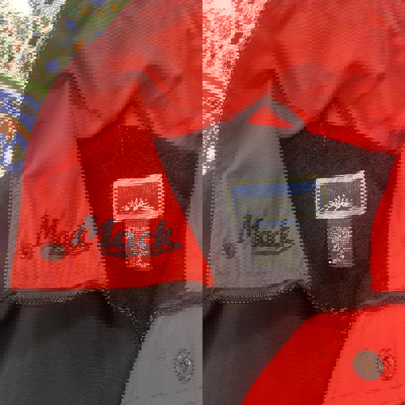 Black and red 100 years of Mack trucks jacket with all embroidered spell outs on the chest and collar