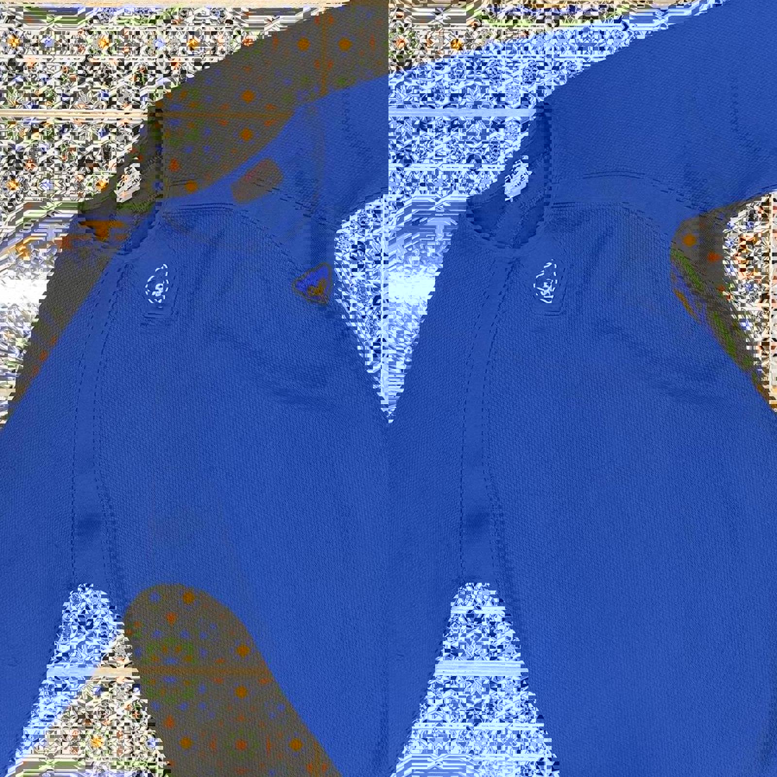 blue majestic chicago cubs MLB sweatshirt jersey with an embroidered white majestic logo on the sleeve and an embroidered chicago cubs logo centred under the collar