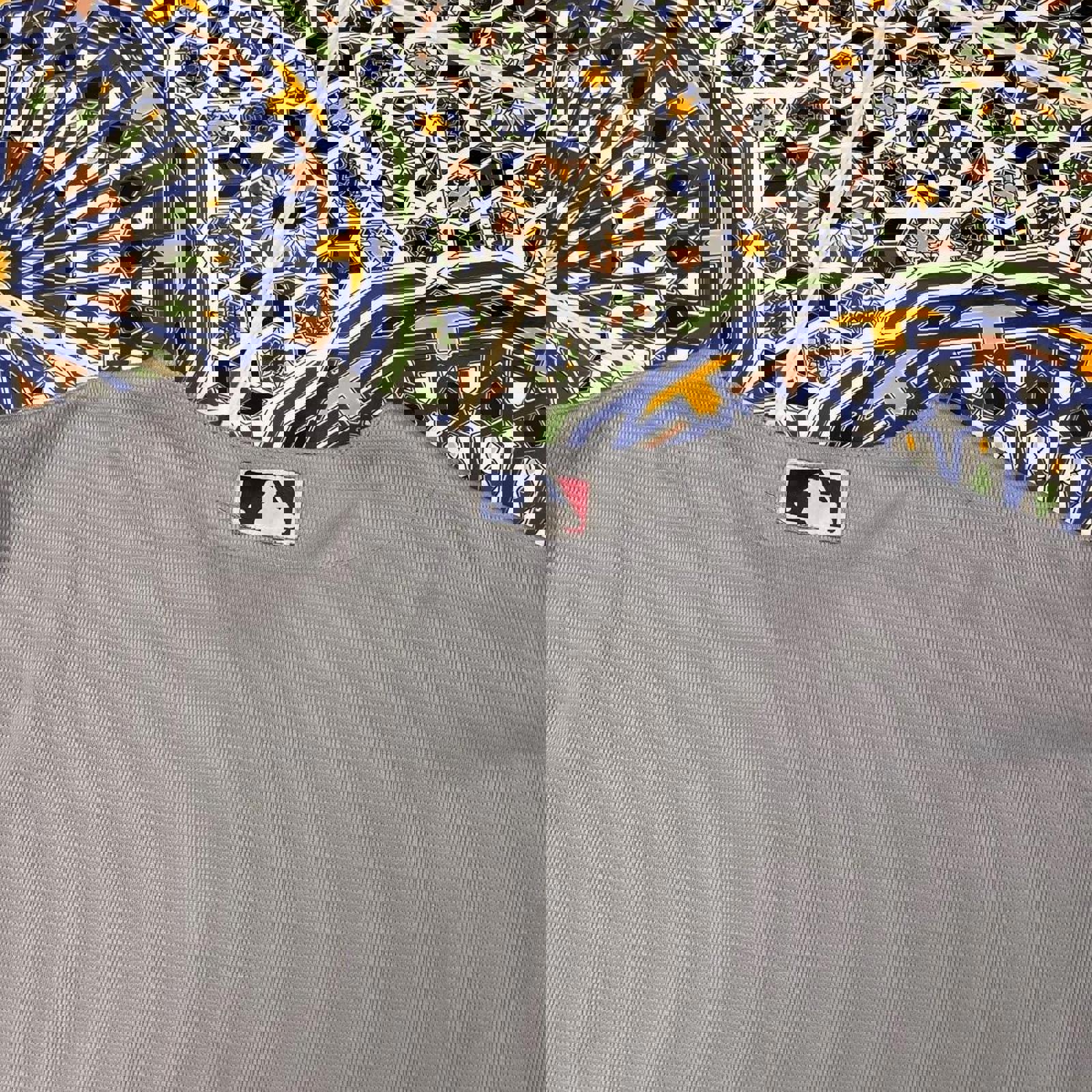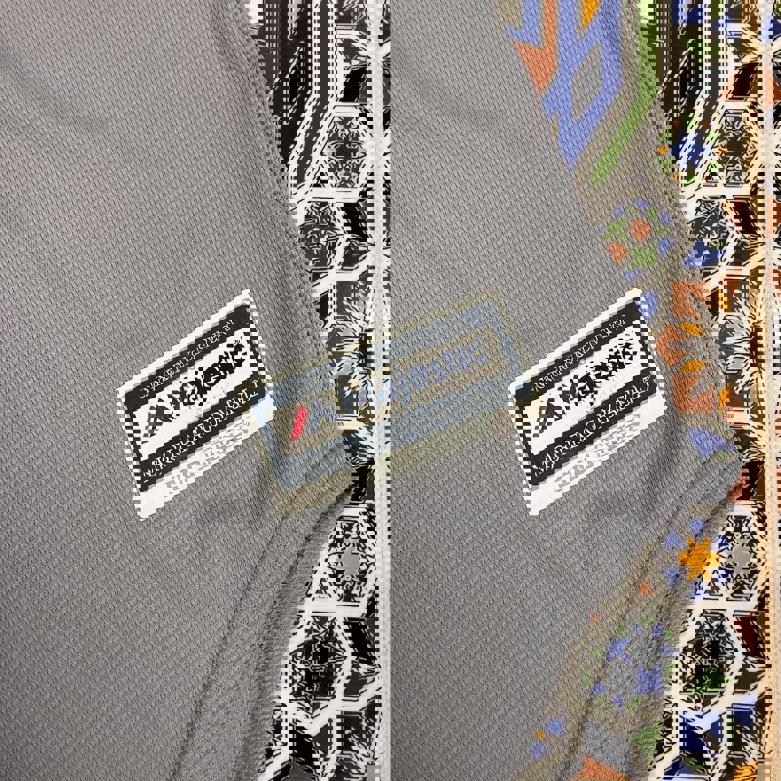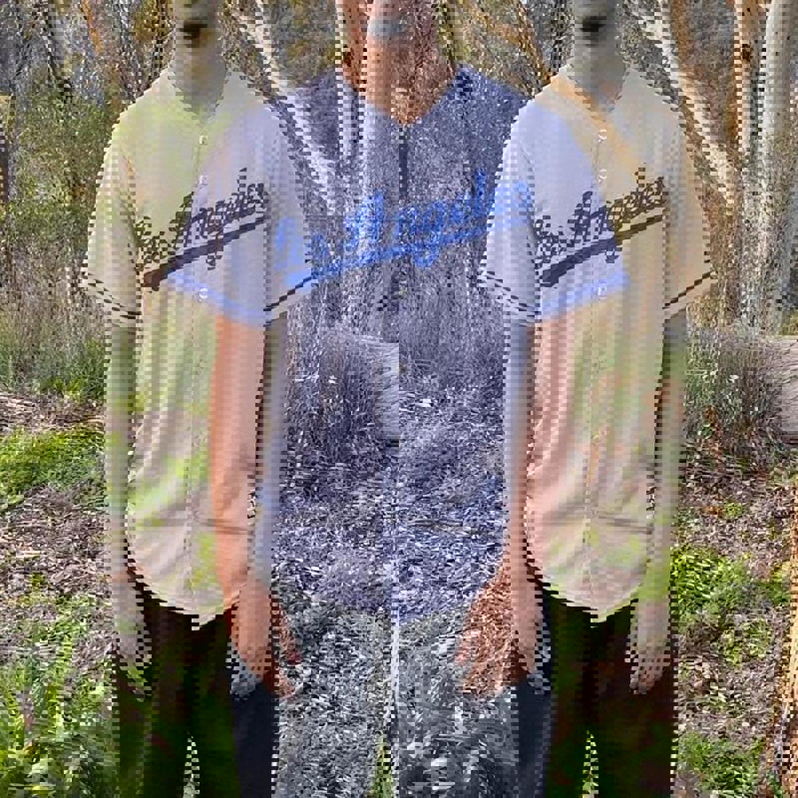 grey majestic los angeles dodgers MLB jersey with a blue los angeles spell out on the chest