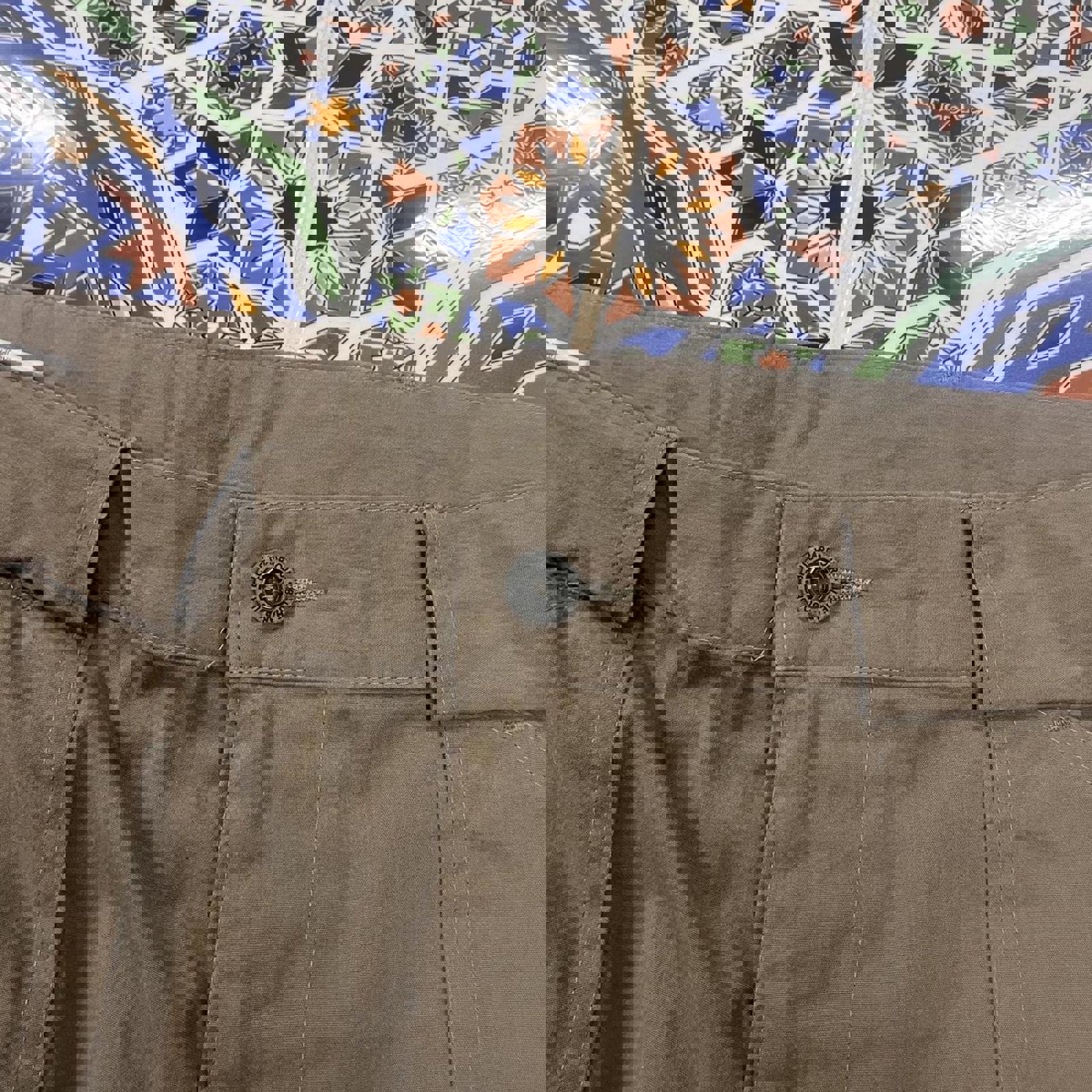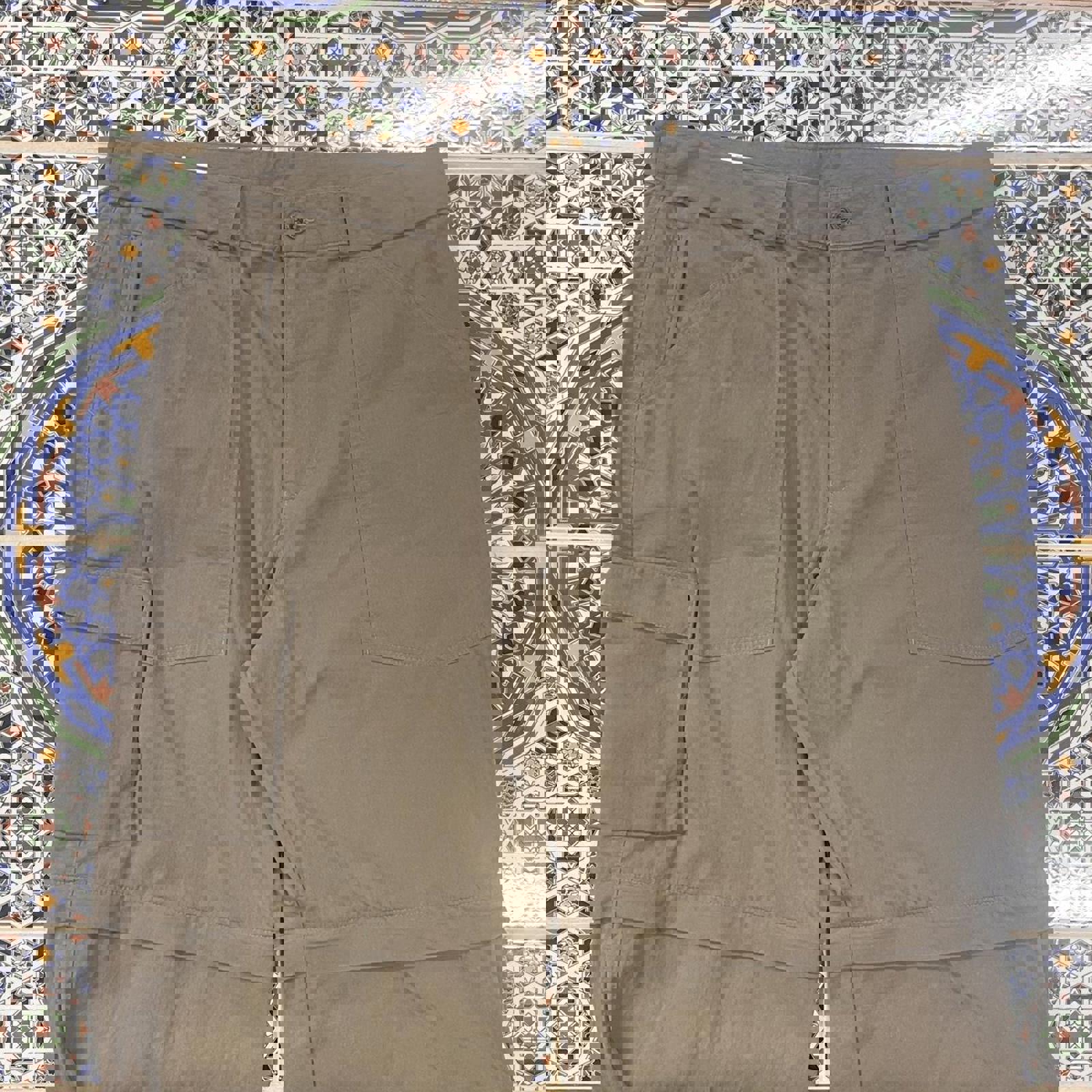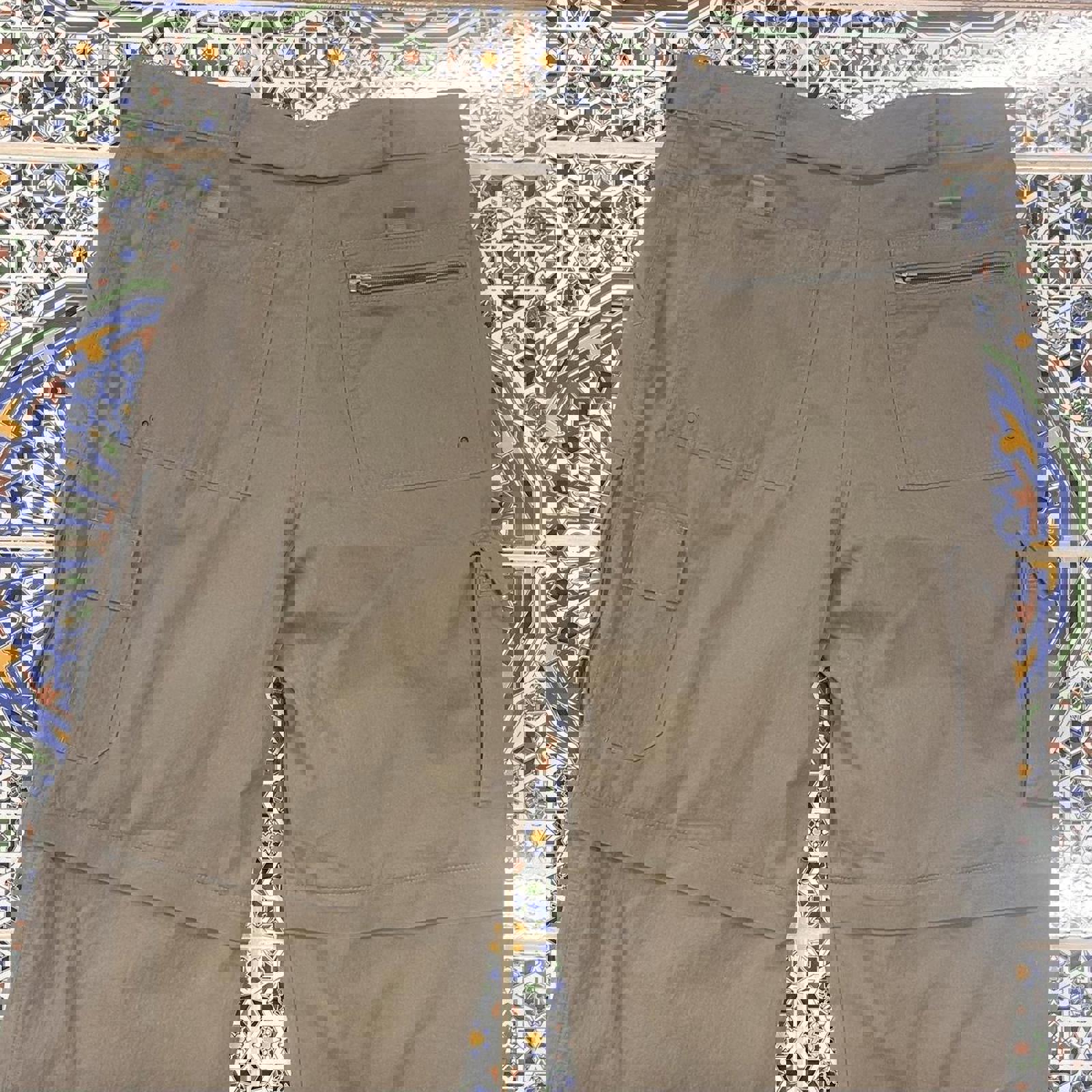 Brown marks and Spencer’s zip off adventure wear hiking pants with a detailed blue harbour button and cargo pockets
