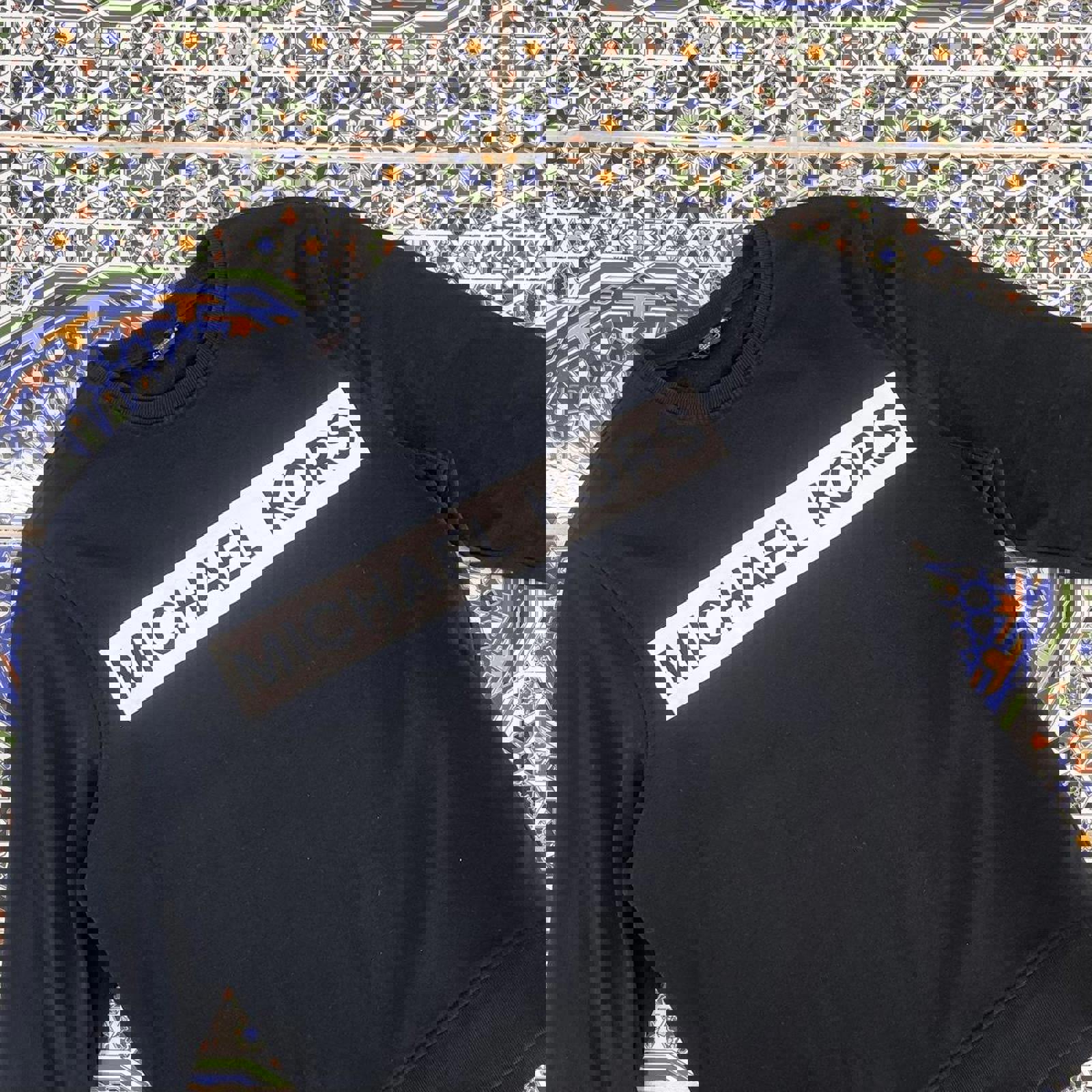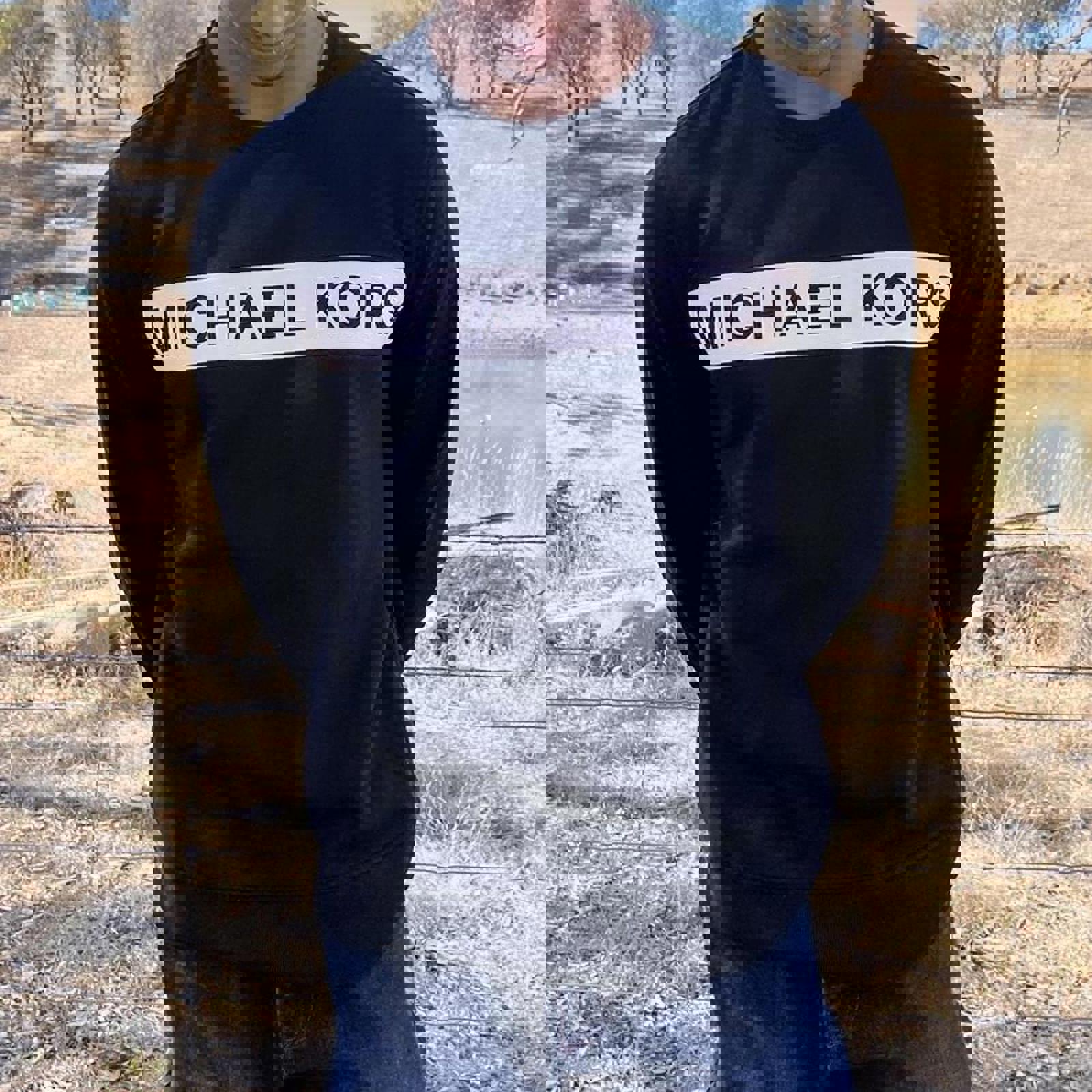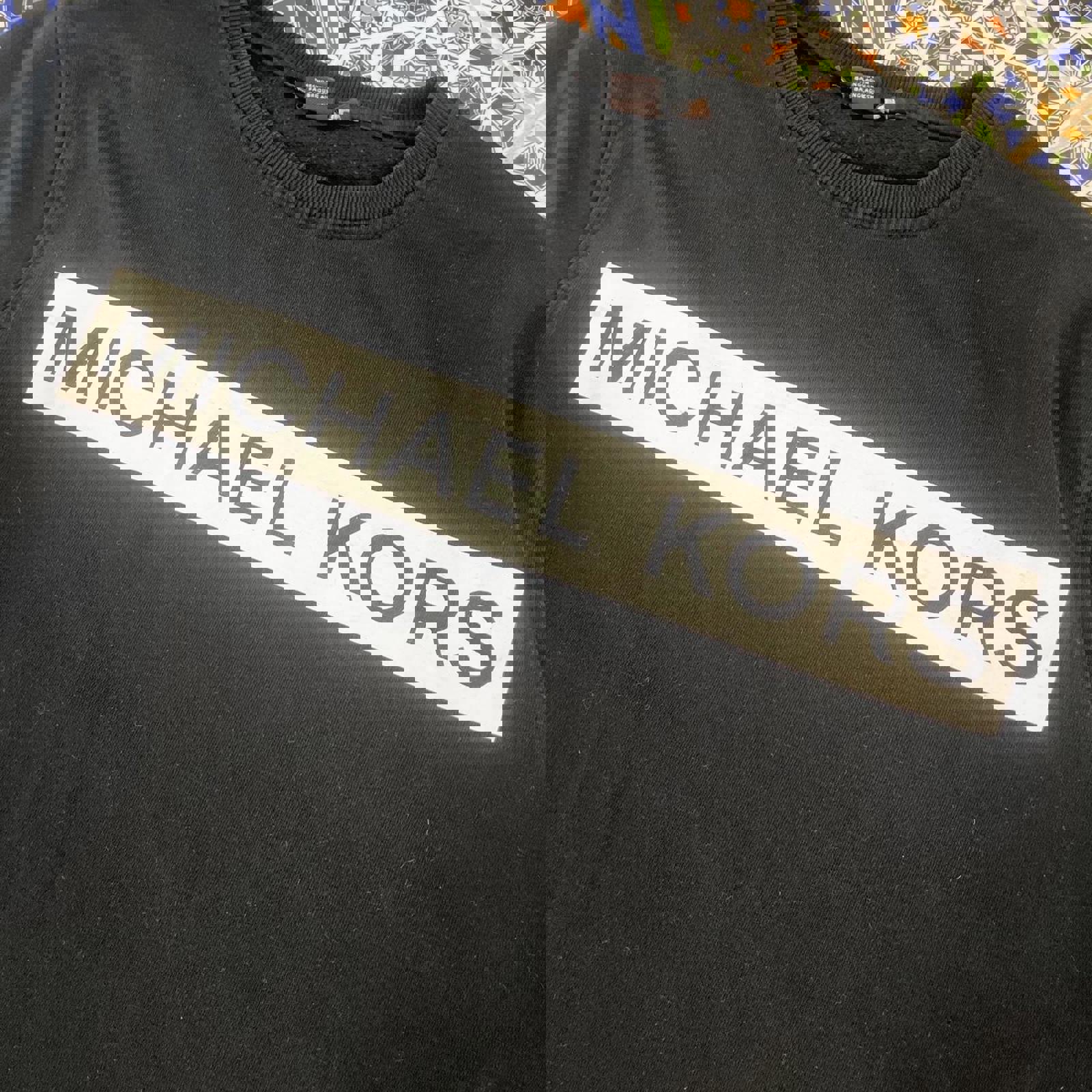 black and white Micheal kors jumper with a screen printed spell out across the chest