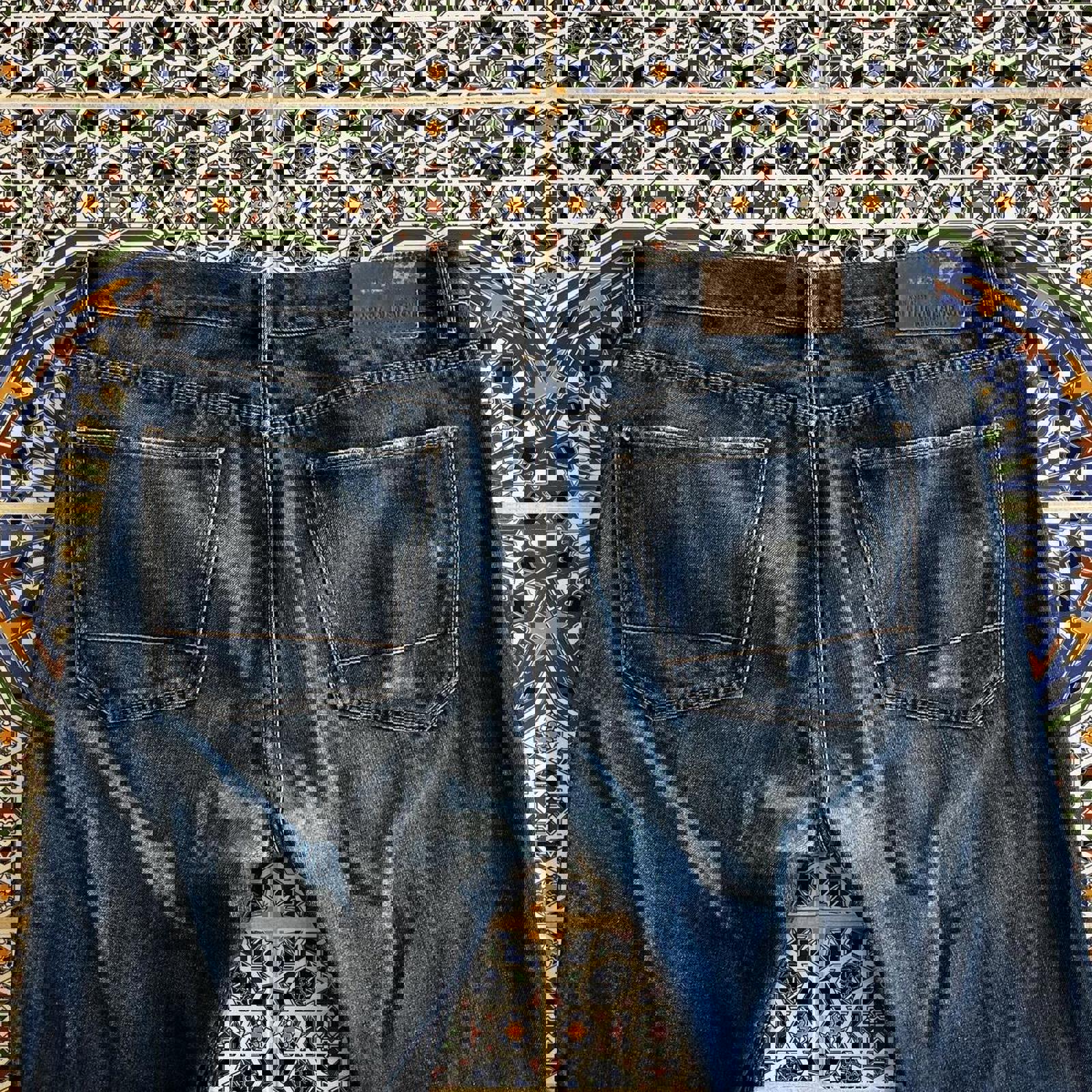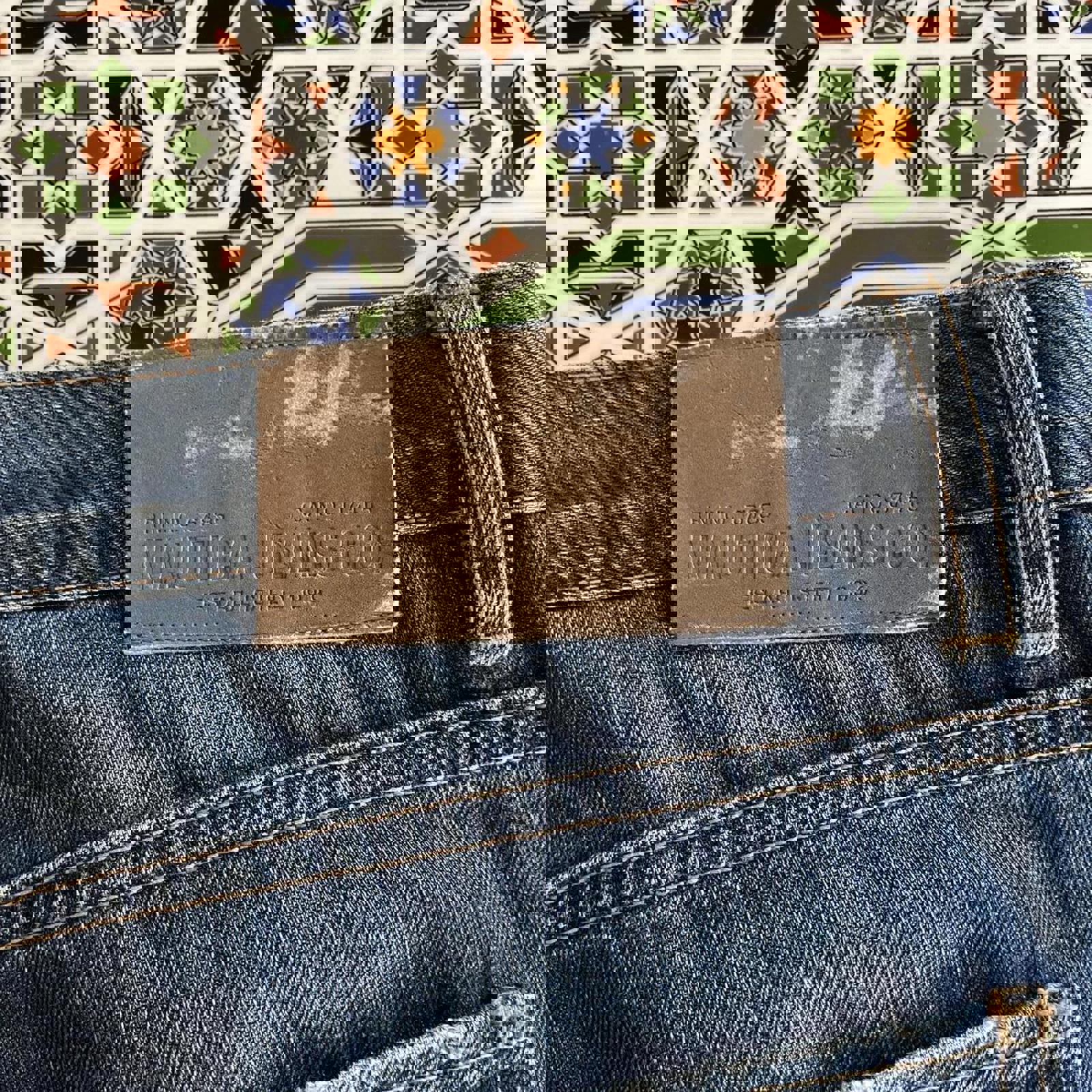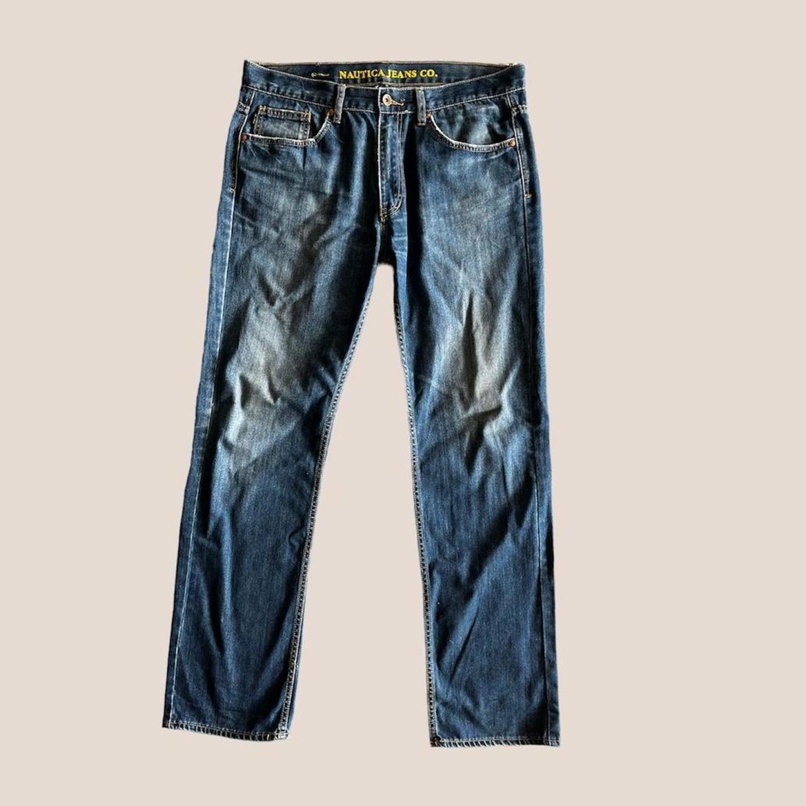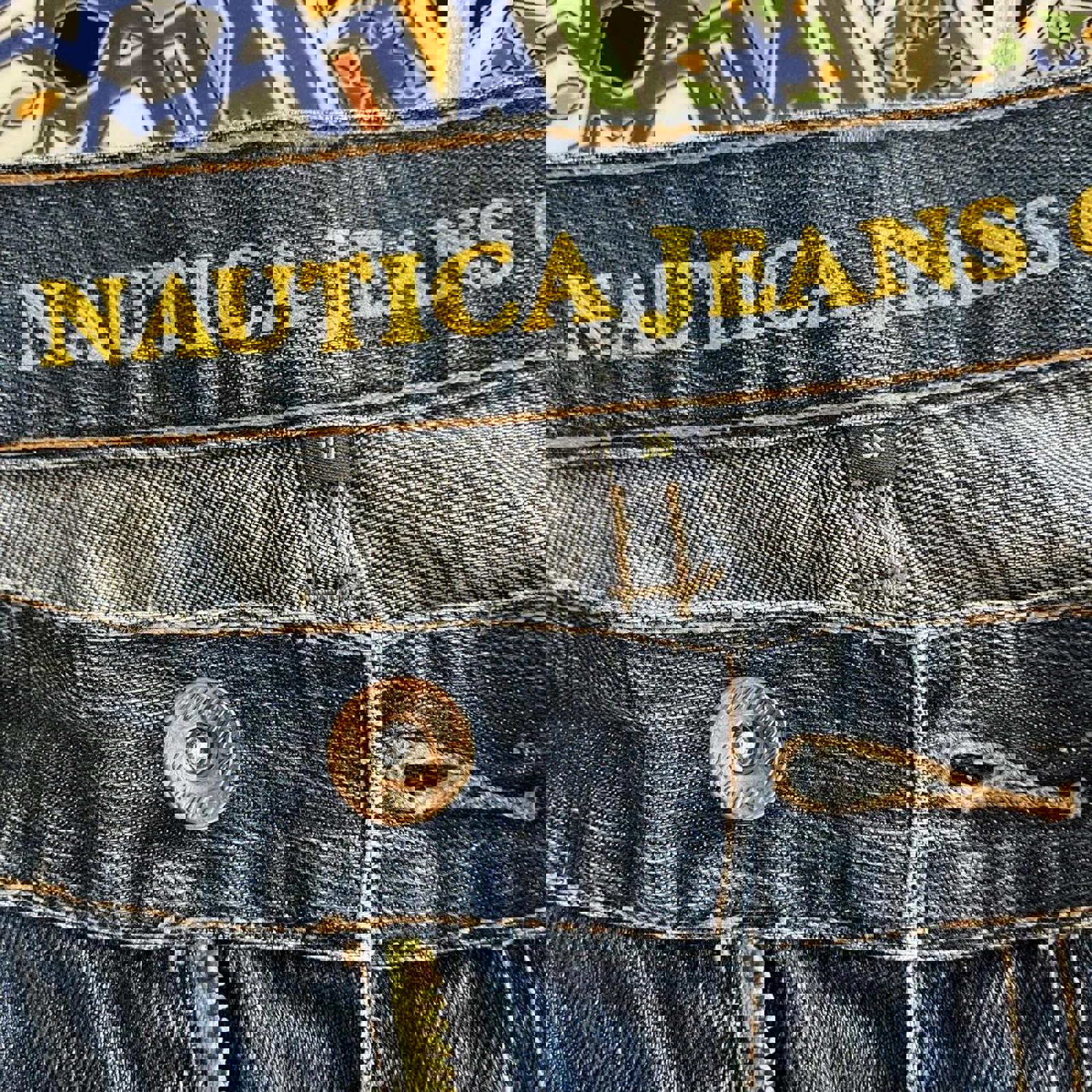 Dark denim nautica jeans with nice fade over the knees, faded patch on the back, detailed button and small NJC tab on coin pocket
