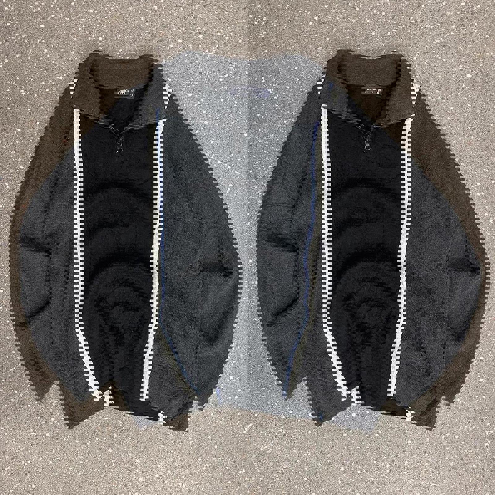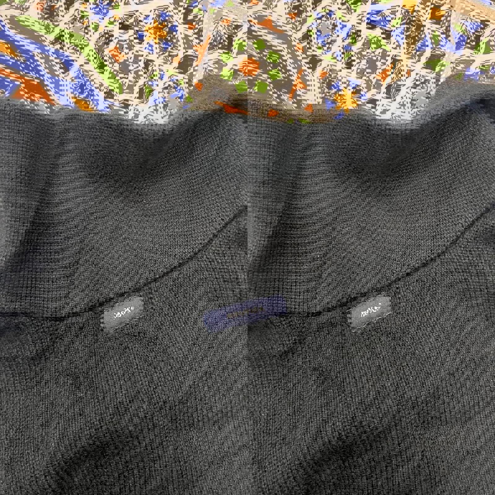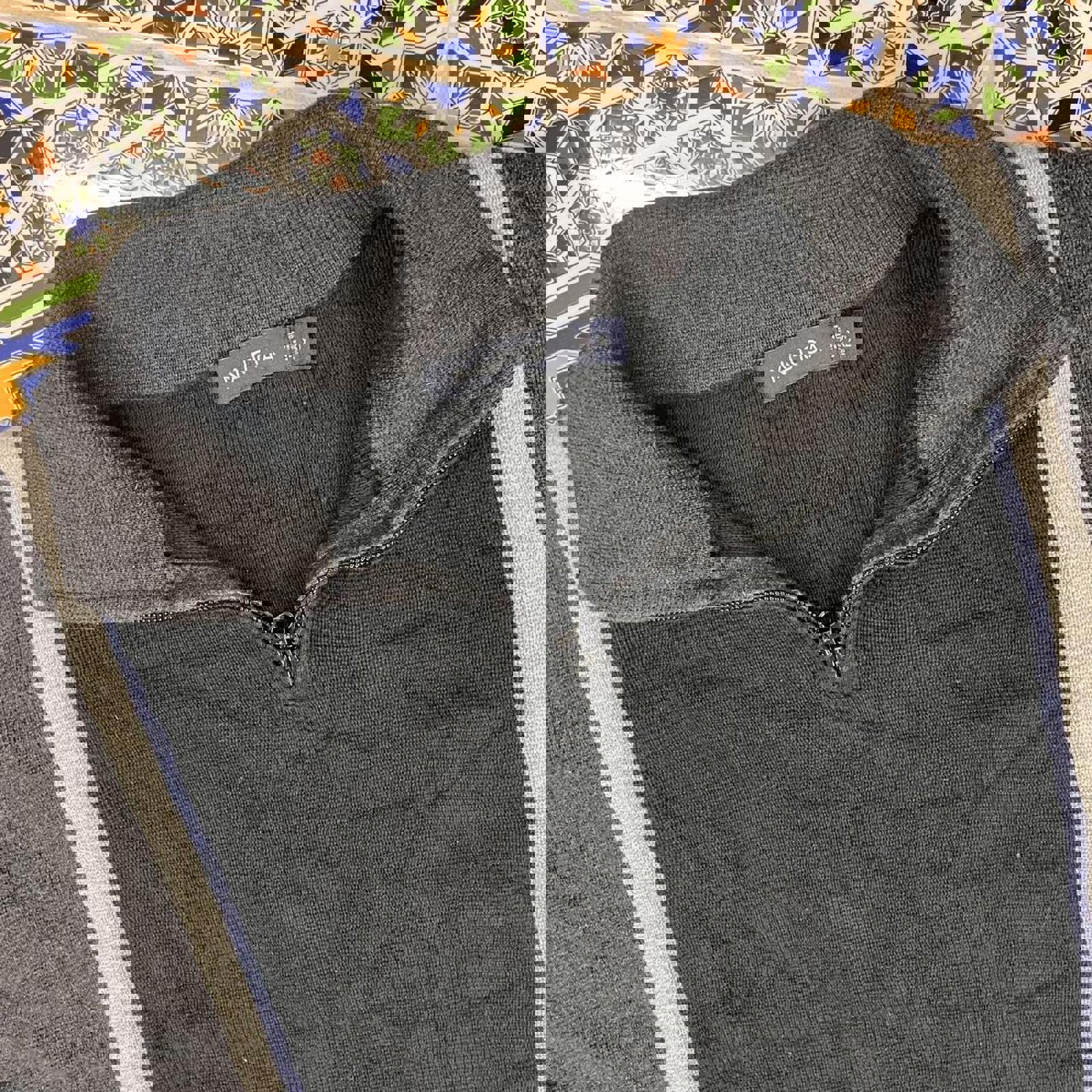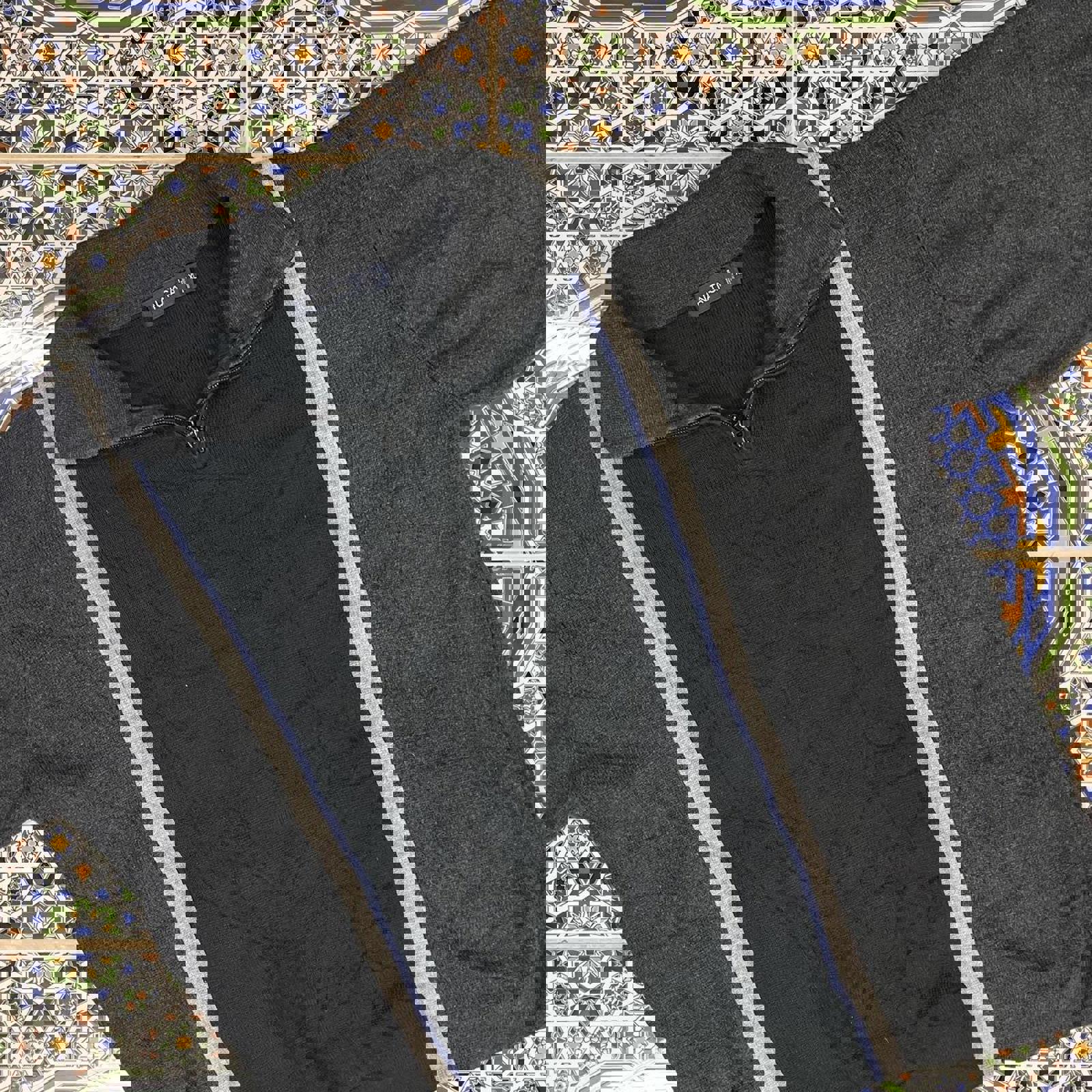 black, grey and light blue stripped nautica 1/4 zip jumper with a nautica navy tab stitched onto the back of the neck