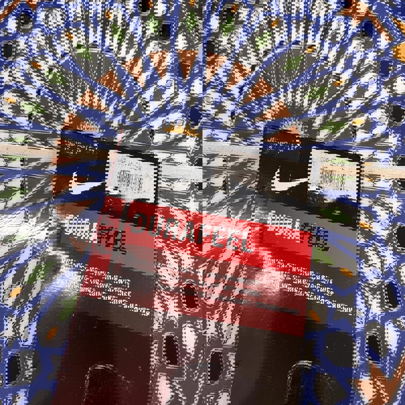 Black Nike dura-feel left handed golf glove with a white embroidered swoosh