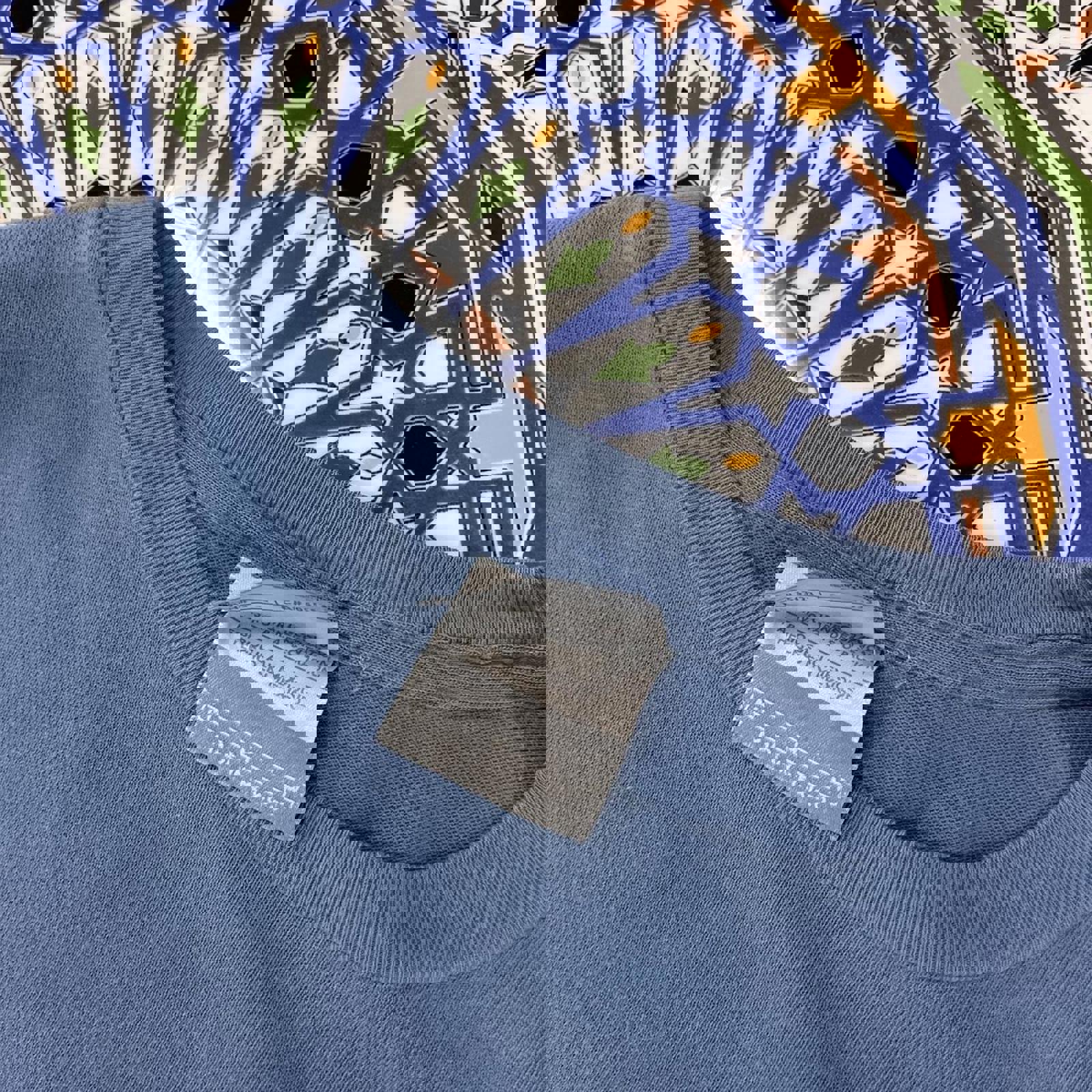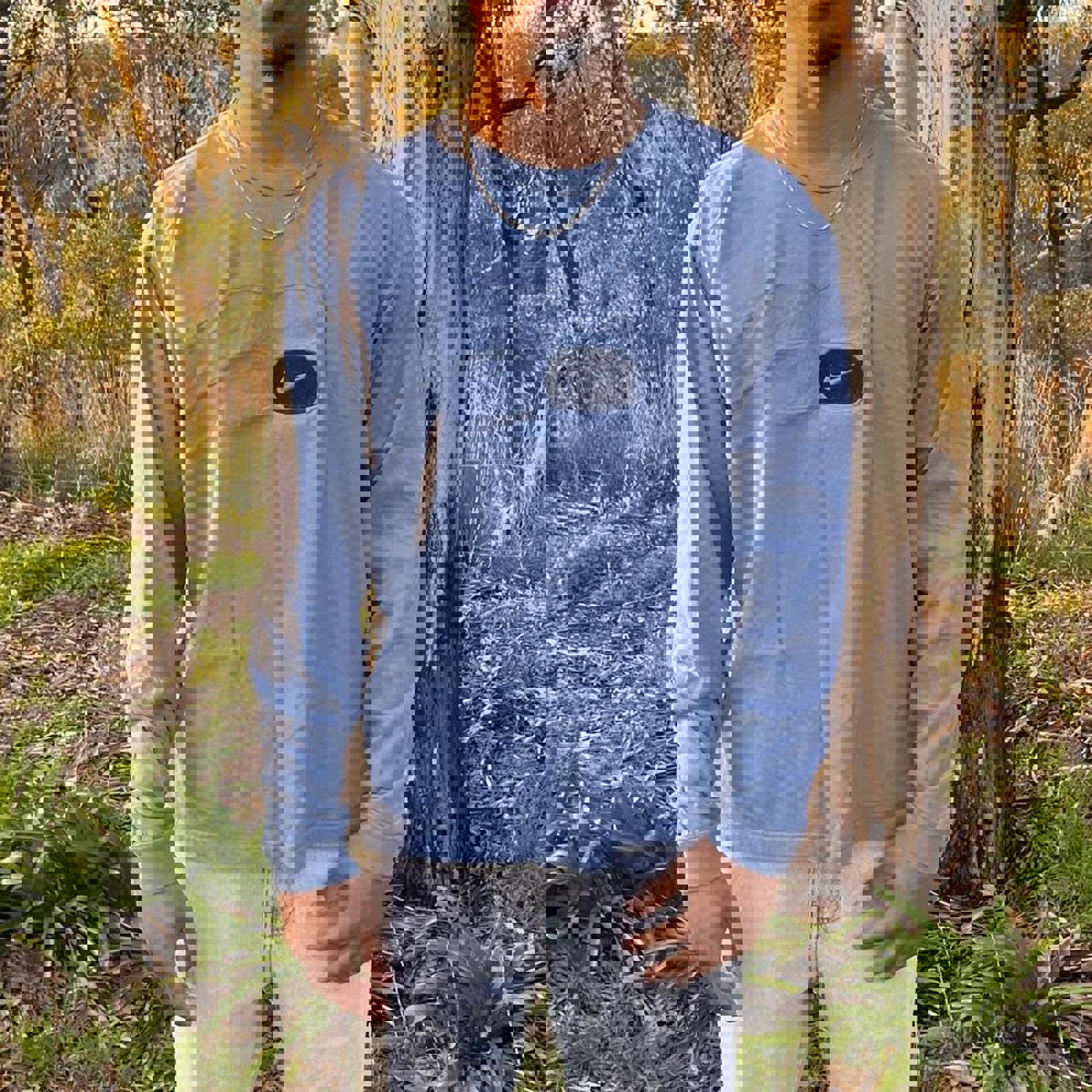 Vintage blue Nike long sleeve tshirt with a navy embroidered Nike graphic on the chest