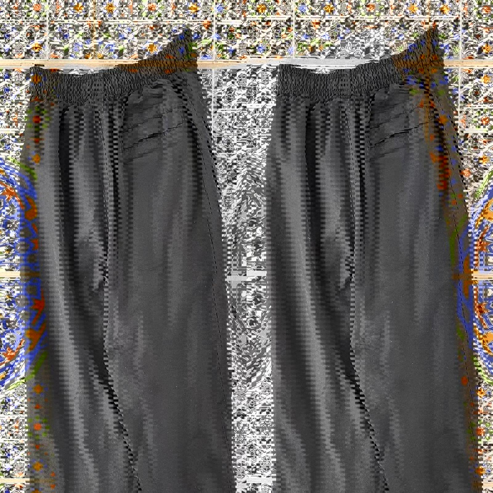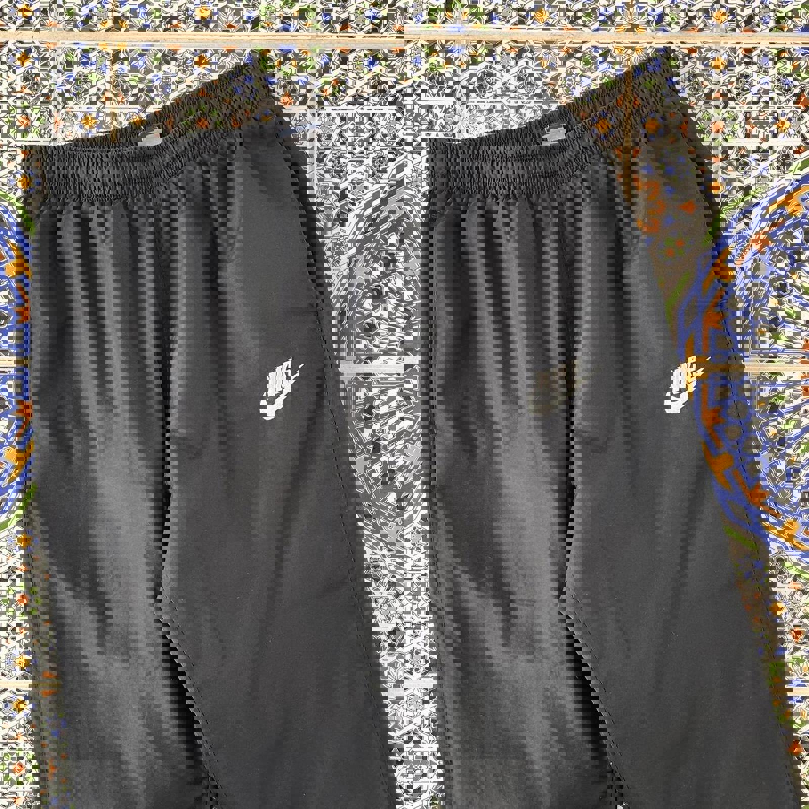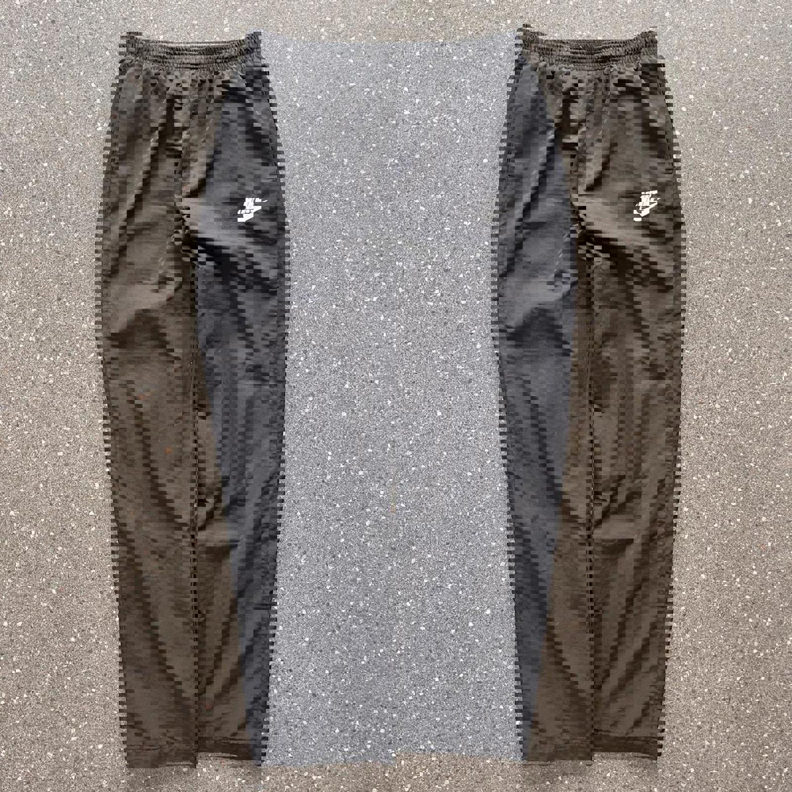 black nike trackies with a white embroidered nike swoosh and spell out on the leg tagged
