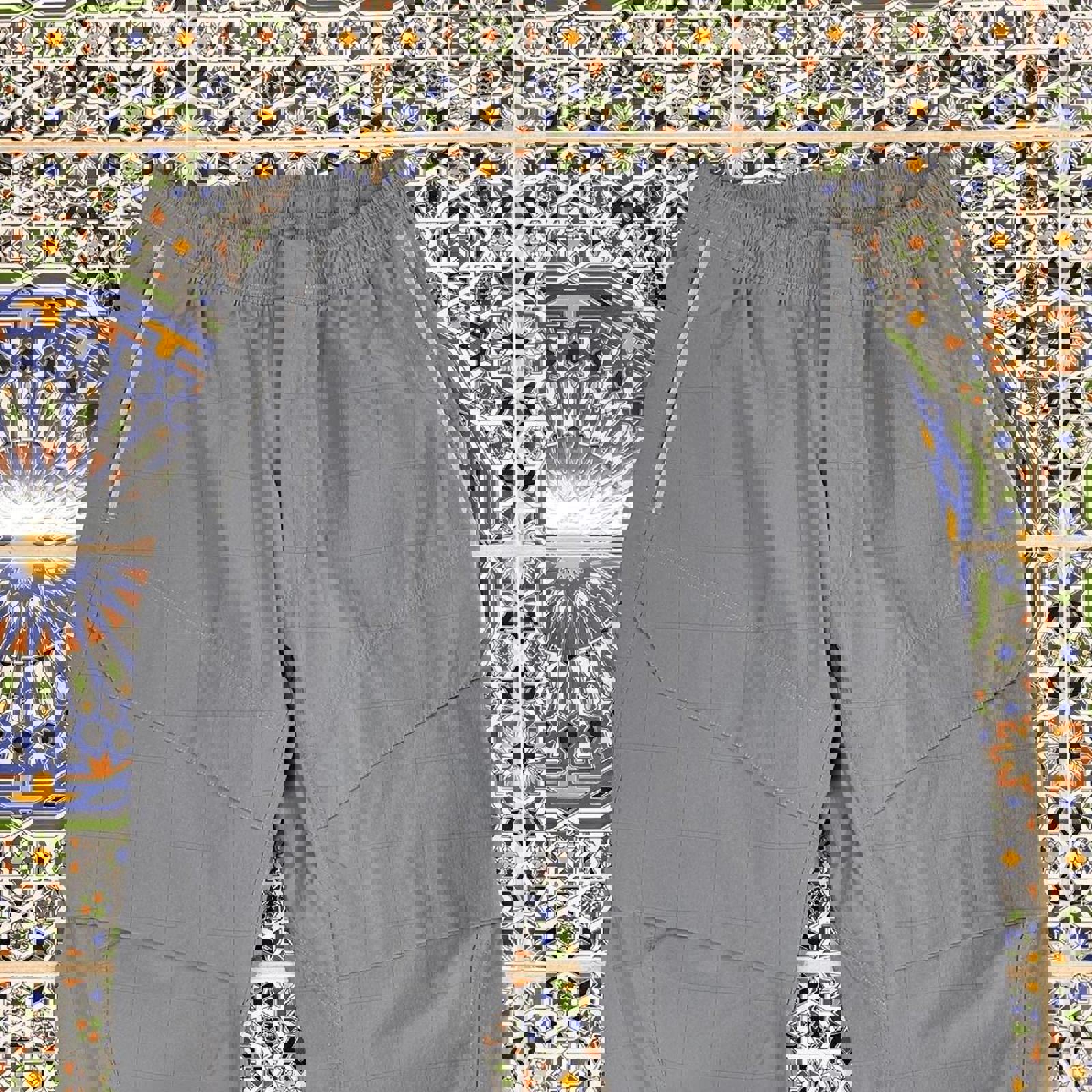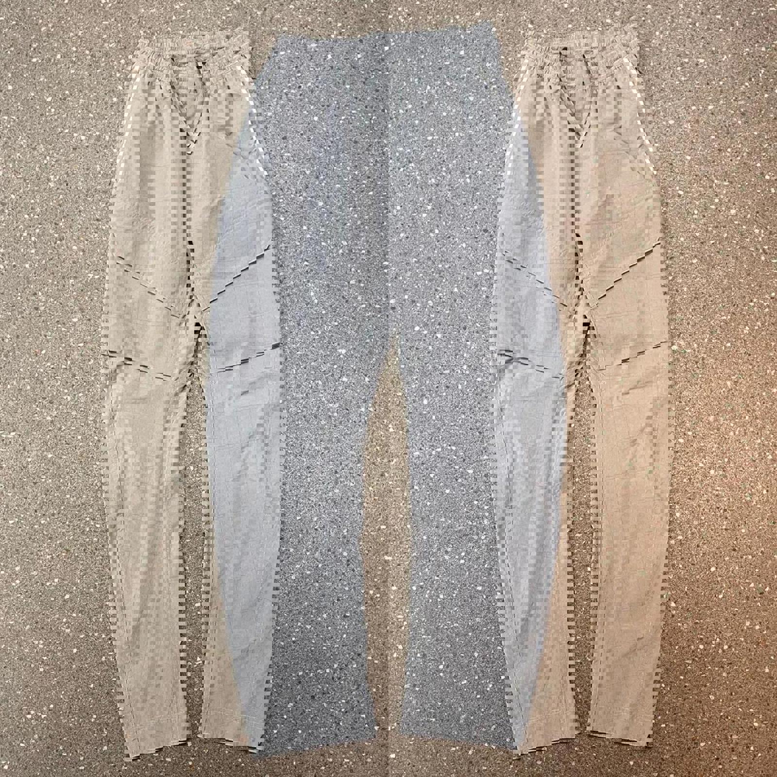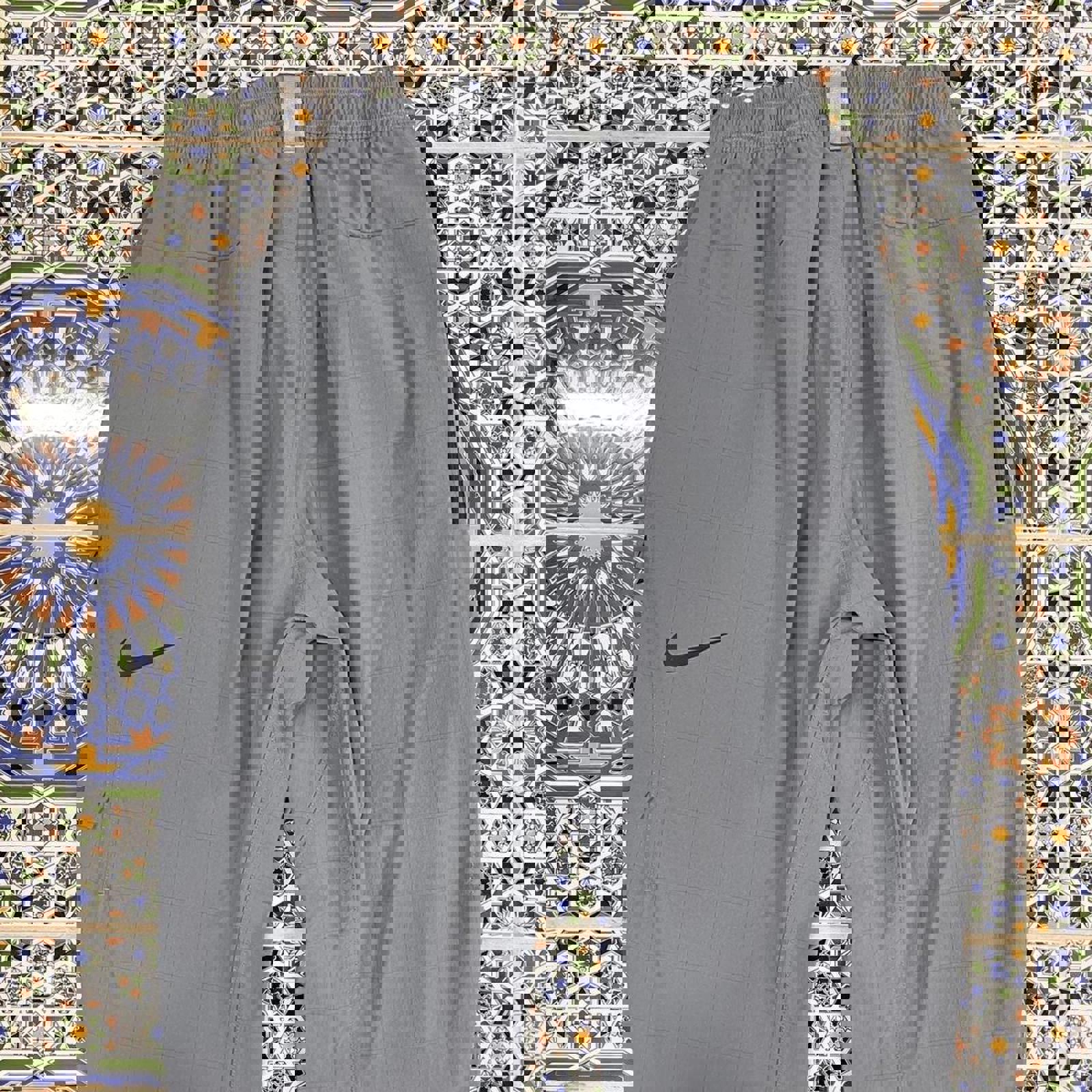 Grey checkered Nike track pants with front thigh pockets, zip able side pockets and a black printed check on the back of the leg