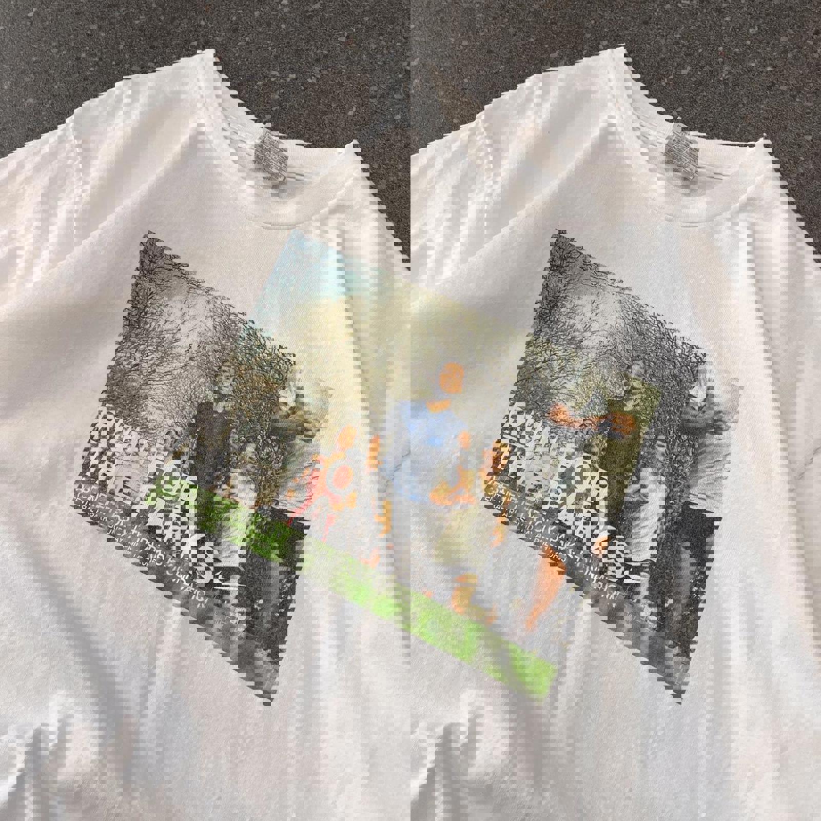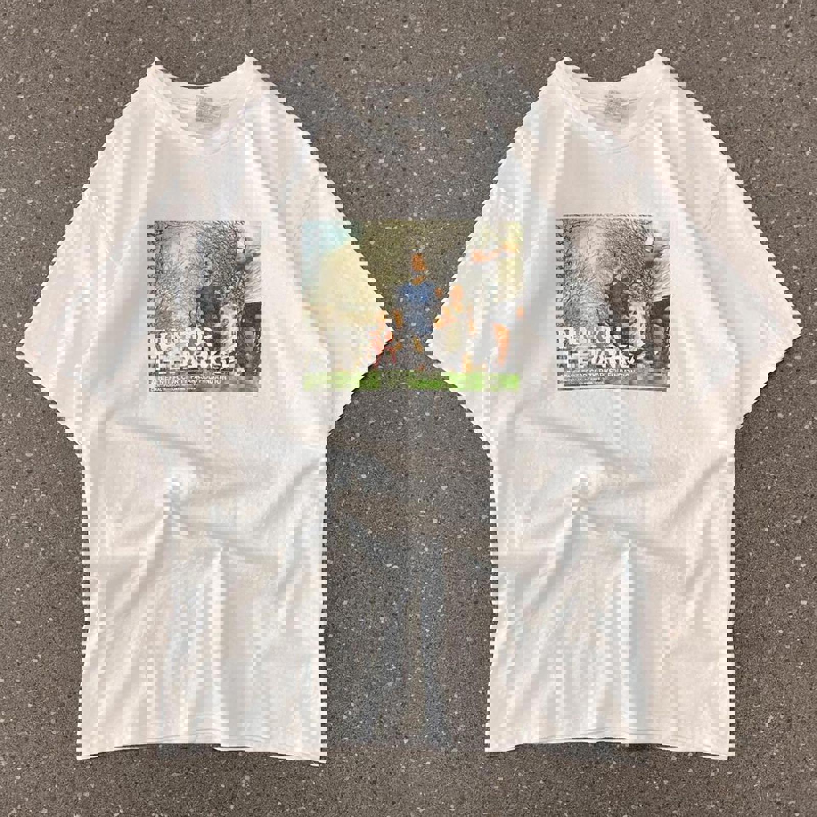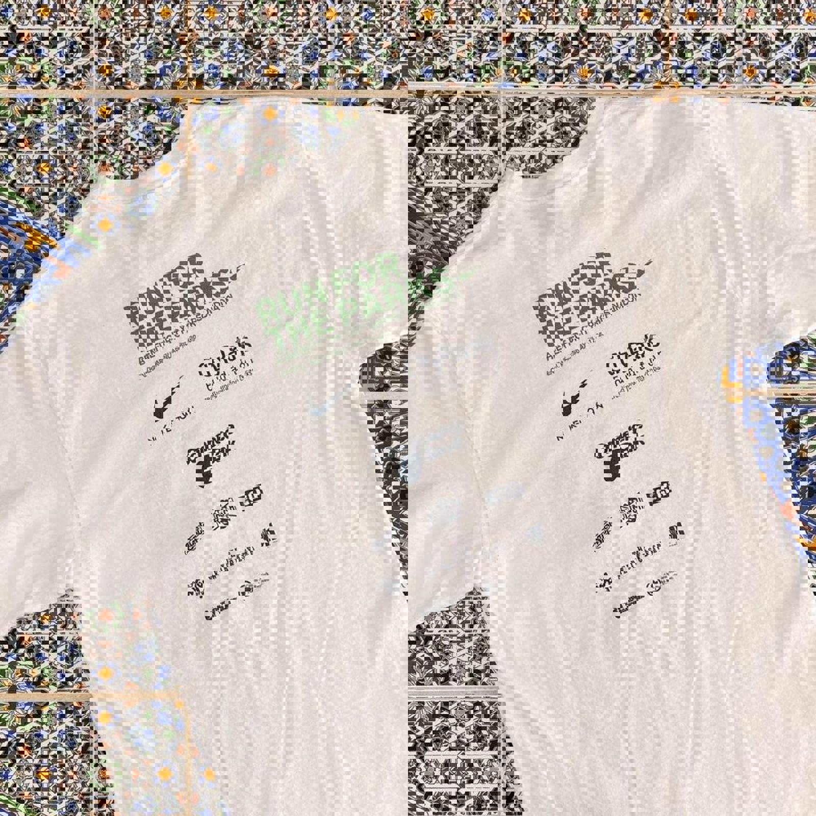 White 2000s nike tshirt with a 2005 run for the parks New York graphic on the front and a list of sponsors on the back